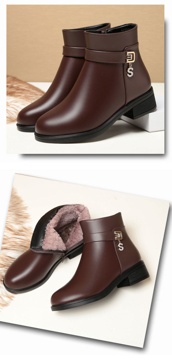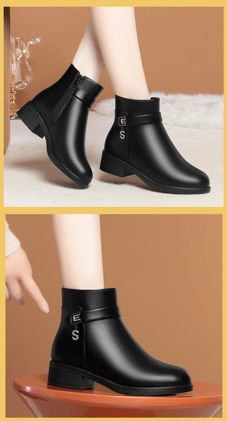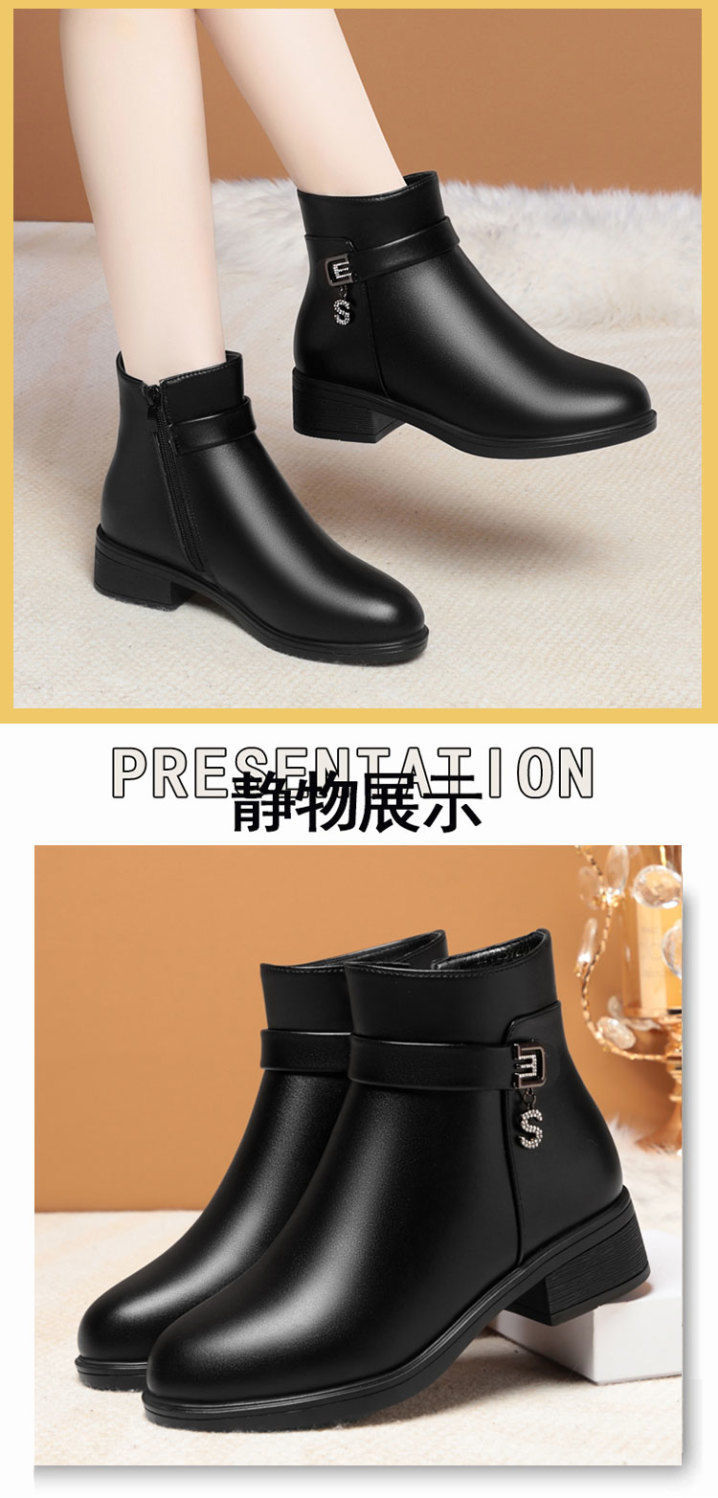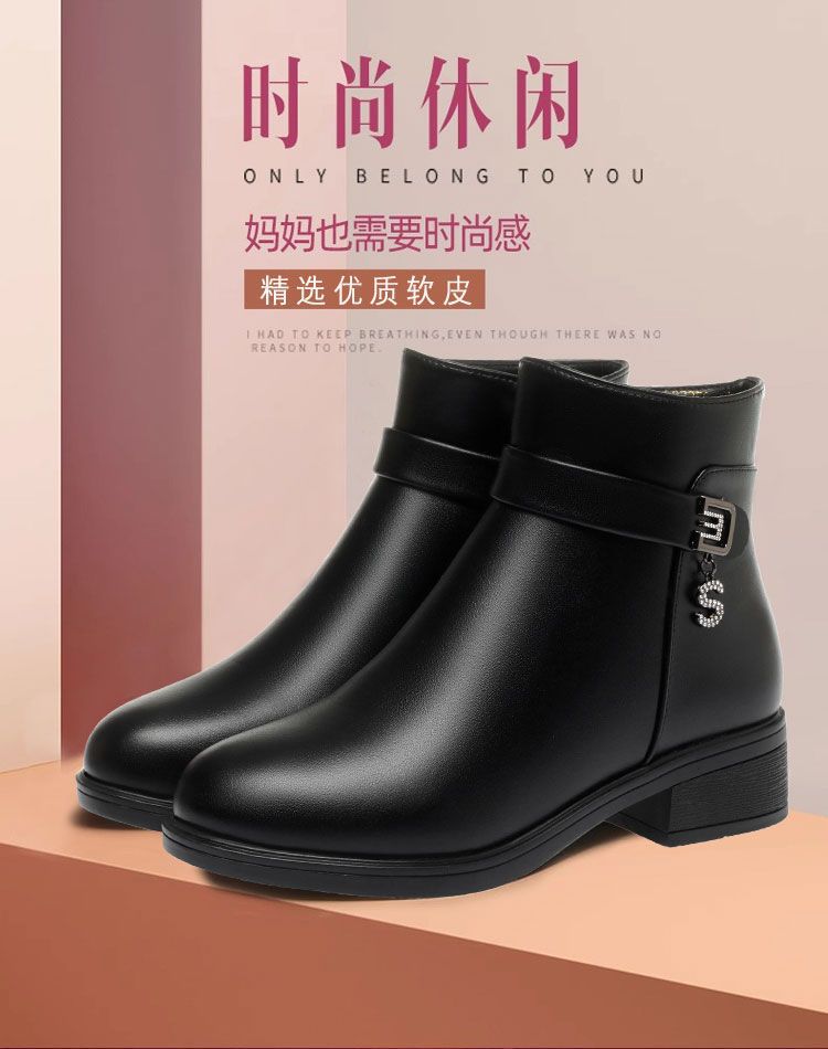 Толстые каблуки с мягким дном плюс бархатные хлопчатобумажные туфли для мамы 2024 зимой теплые и нескользкие сапоги для женщин среднего и пожилого возраста, дикие модные сапоги