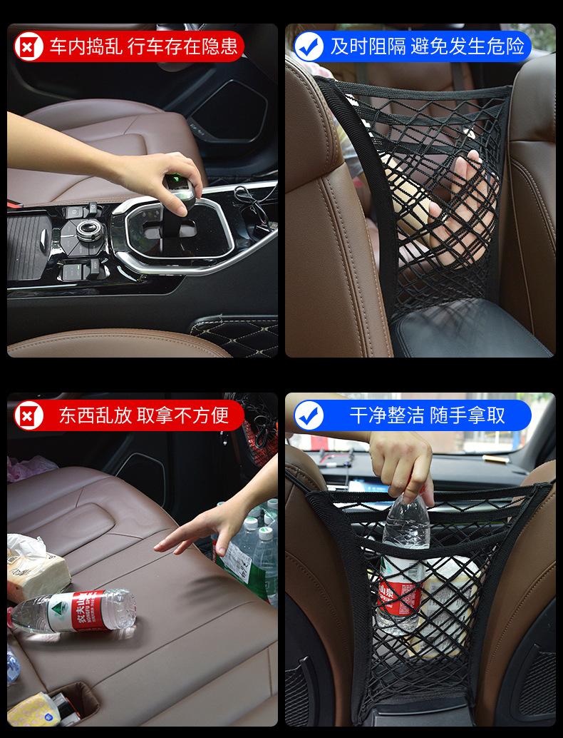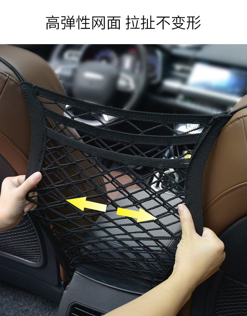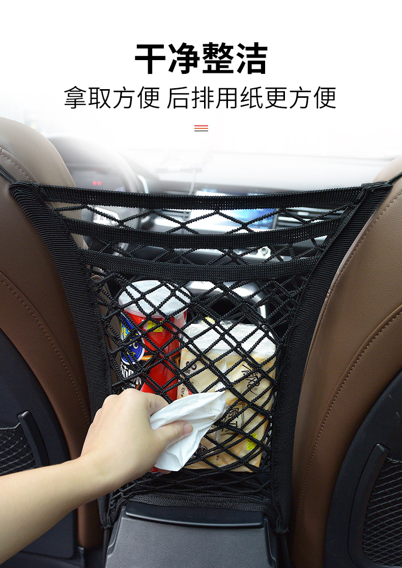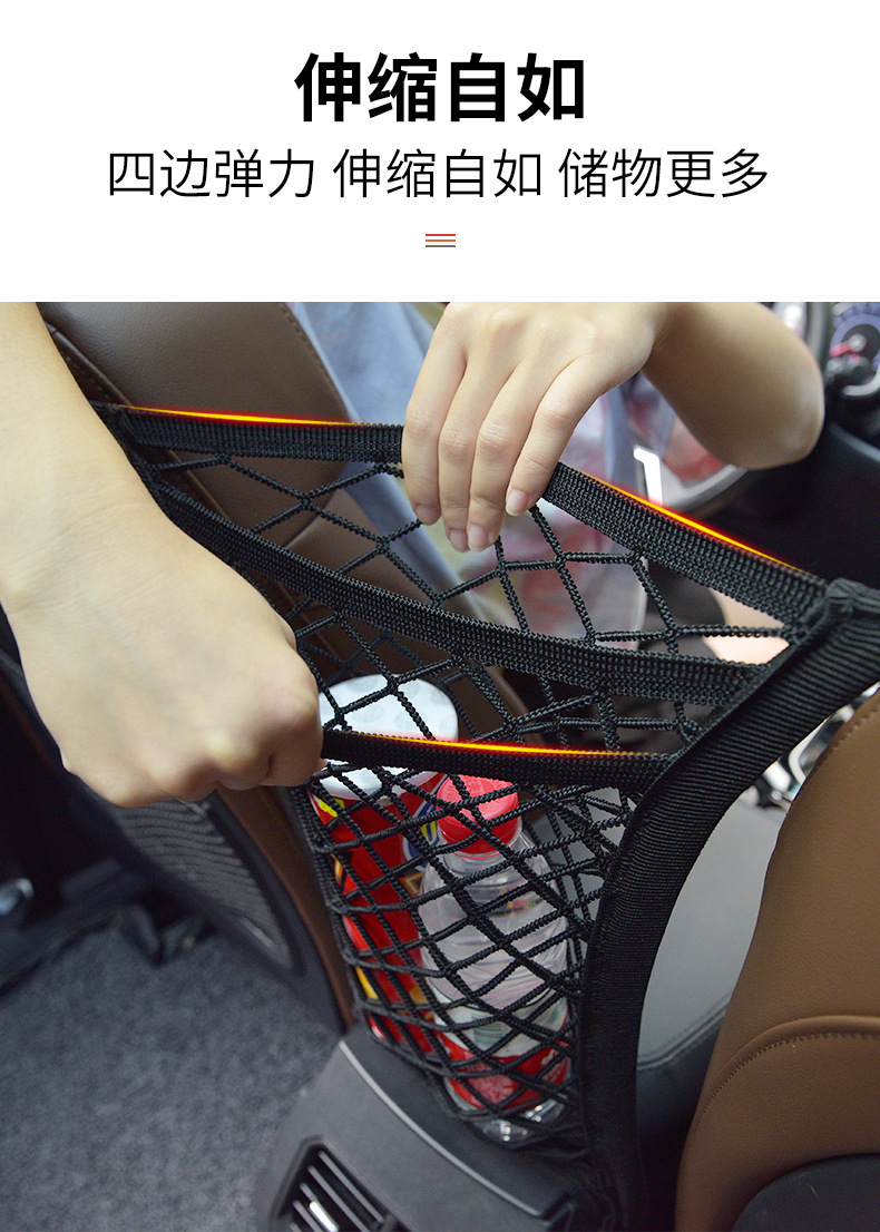 5.座椅间专用储物网兜,双层设计,扩展车内空间超强拉力