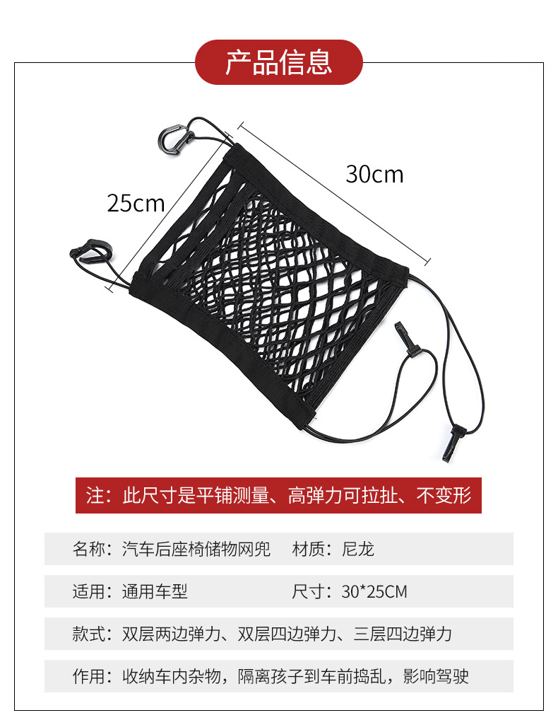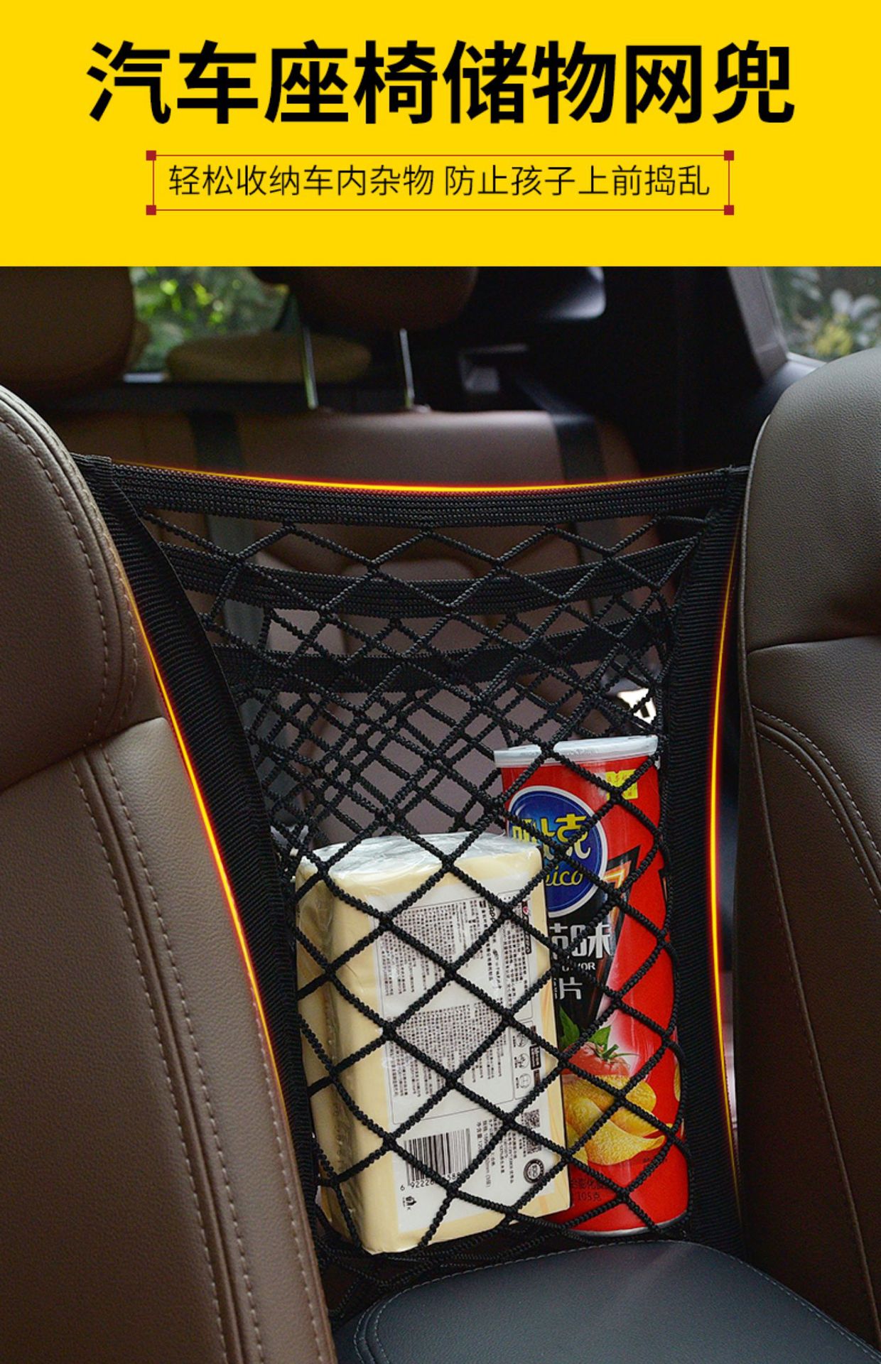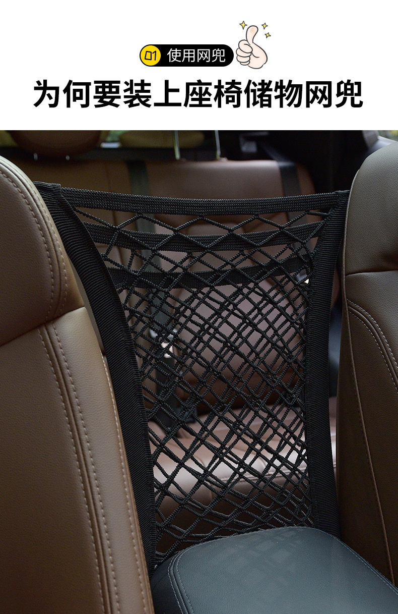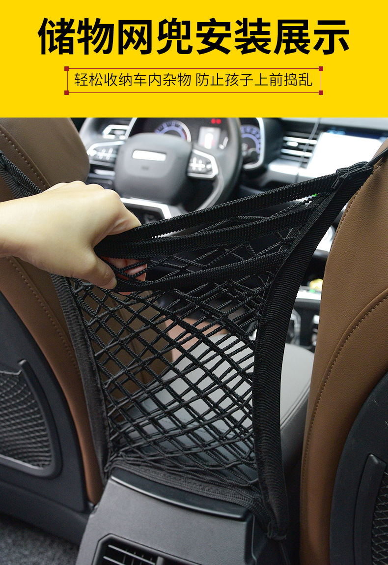 5.座椅间专用储物网兜,双层设计,扩展车内空间超强拉力