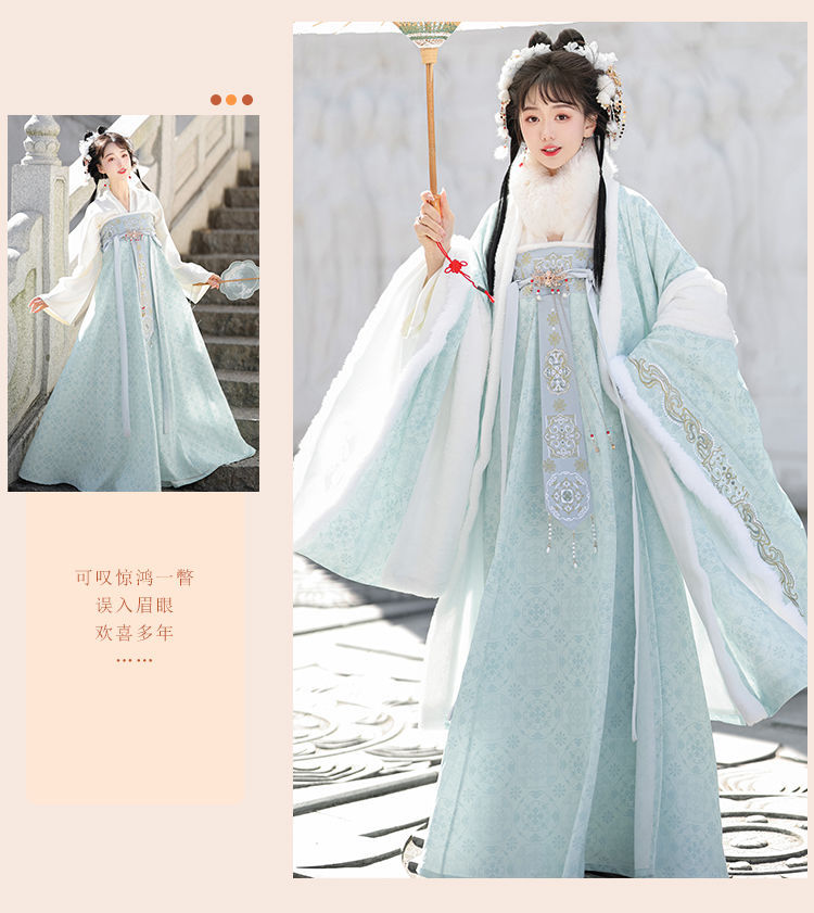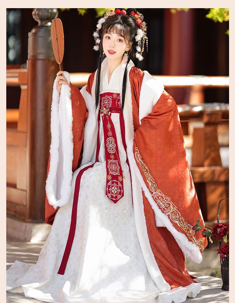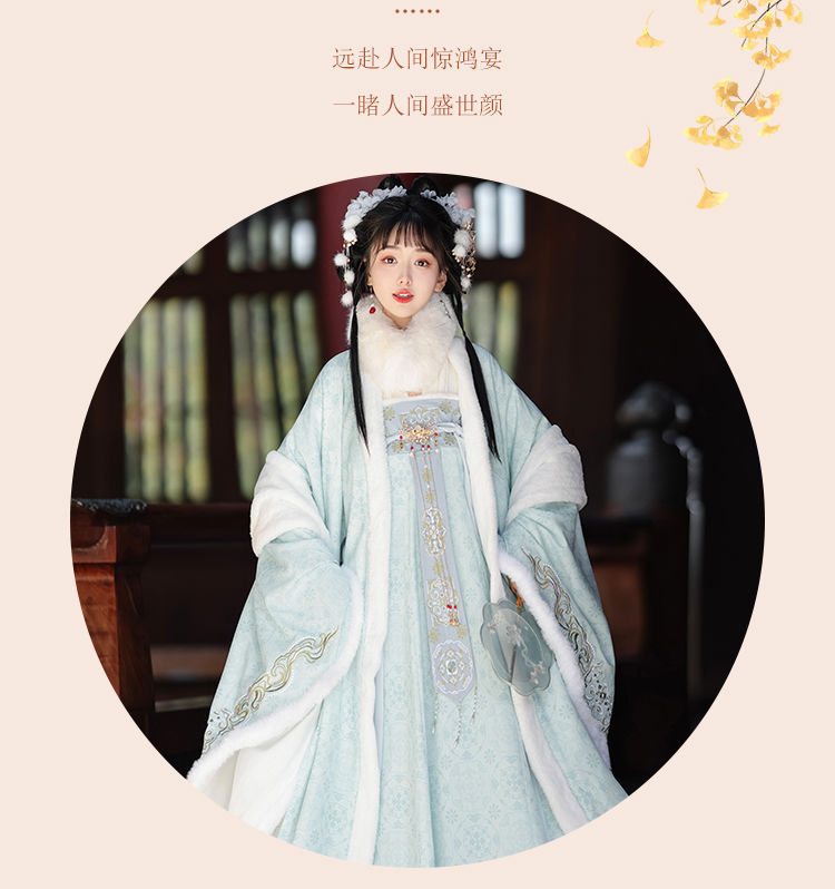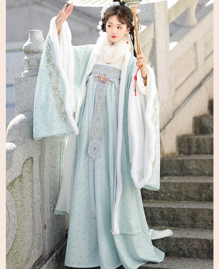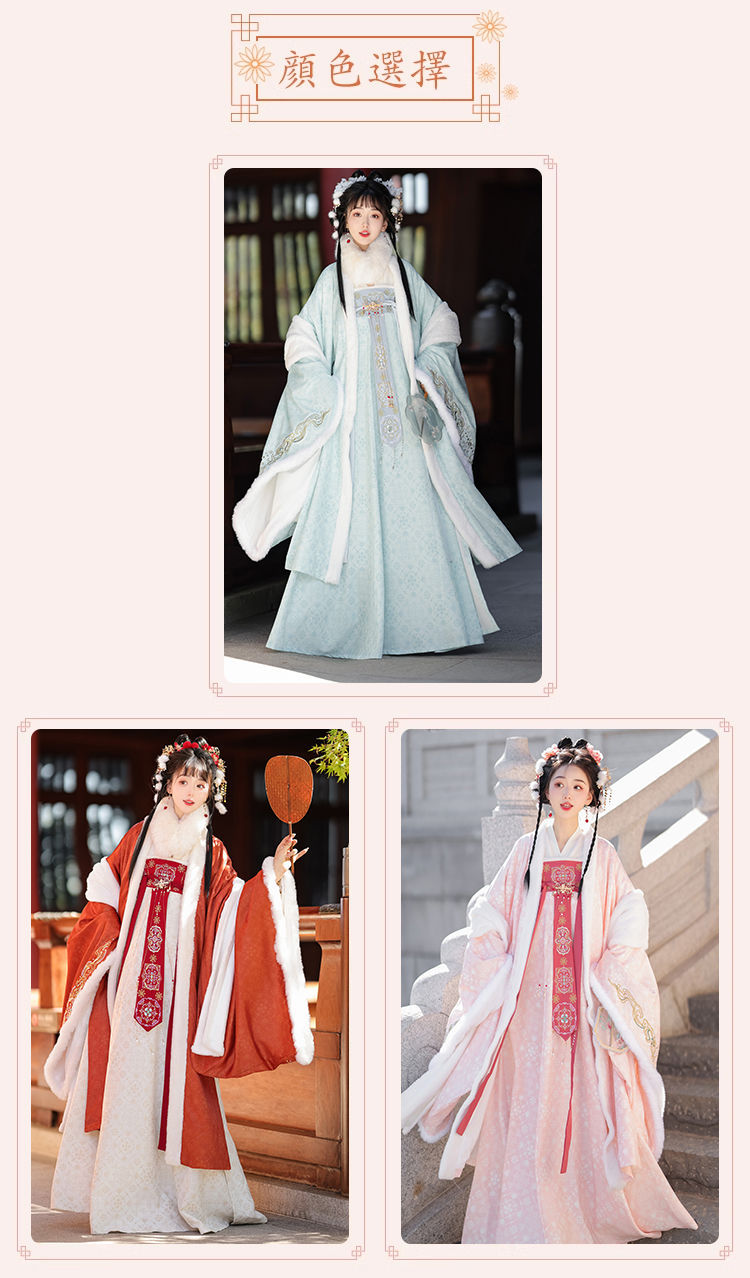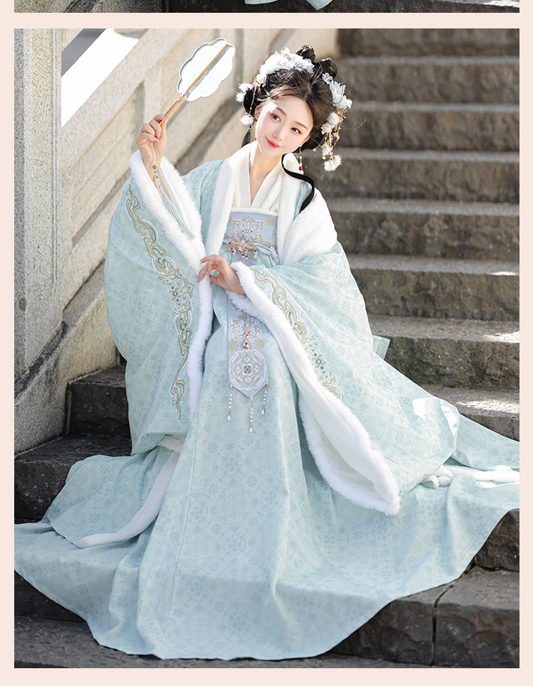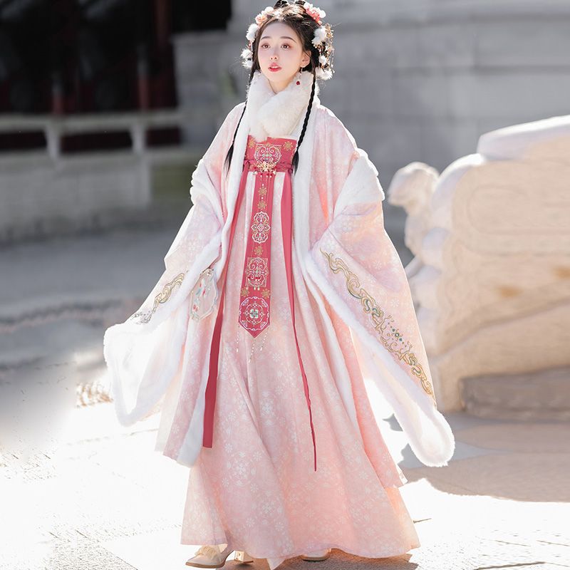 Зимний бархатный костюм ханьского костюма женской тяжелой промышленности с вышивкой теплый толстый рукав с большими рукавами