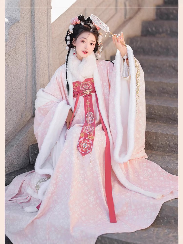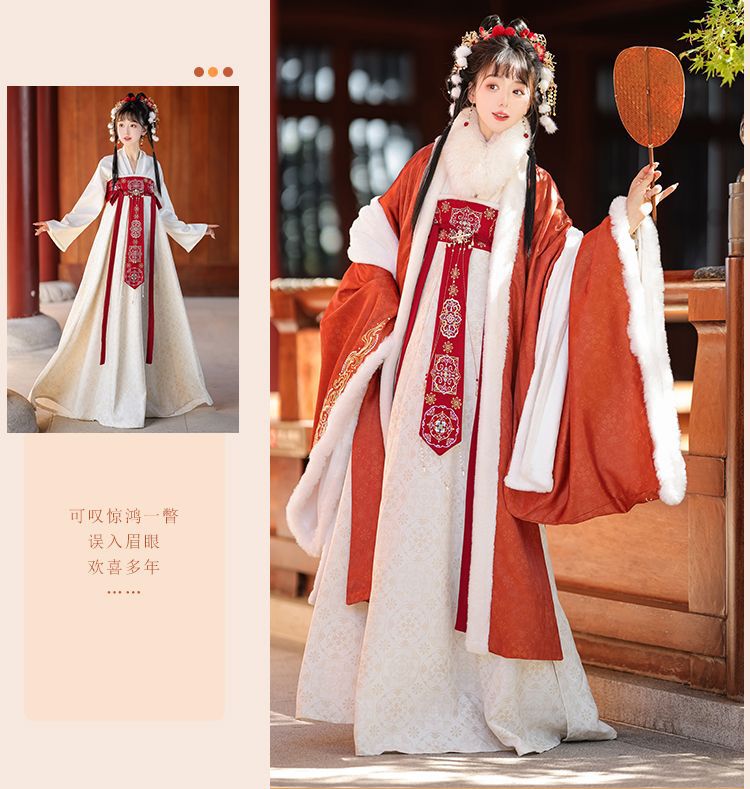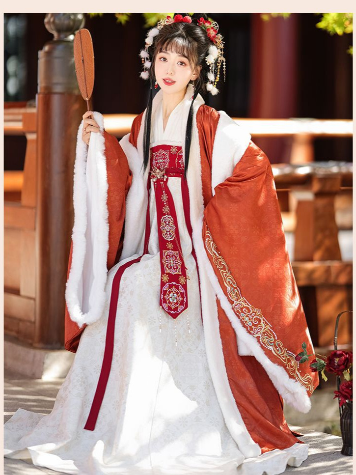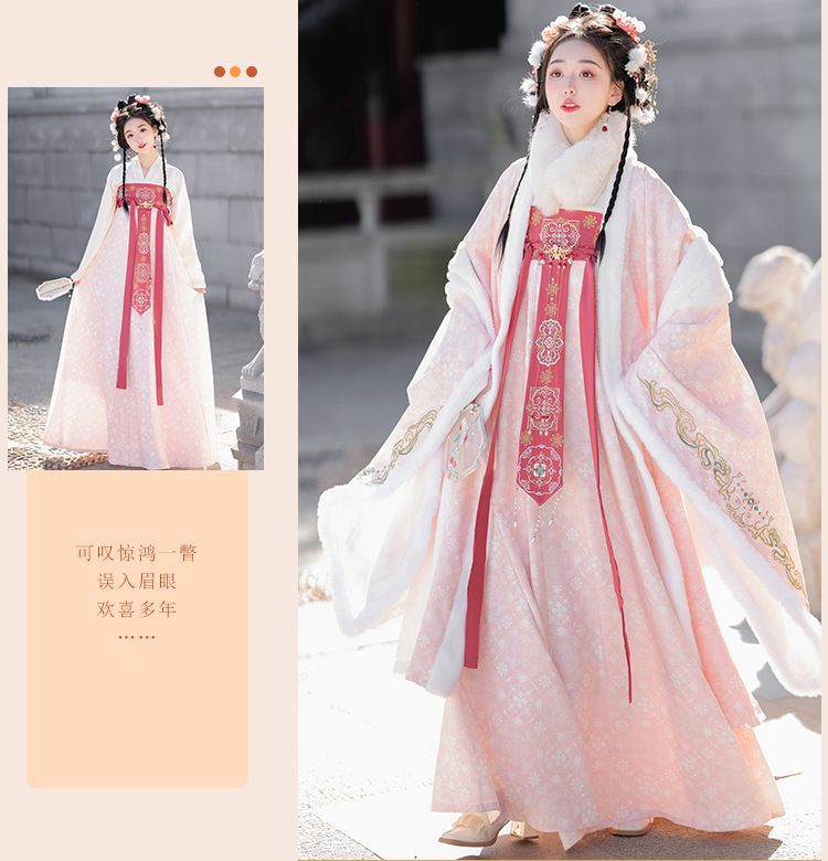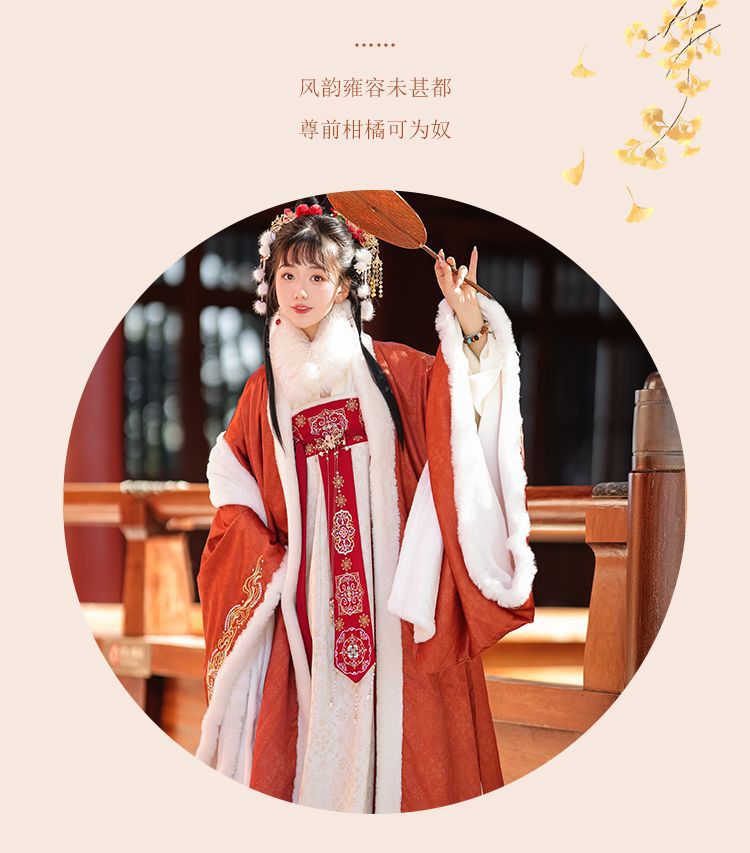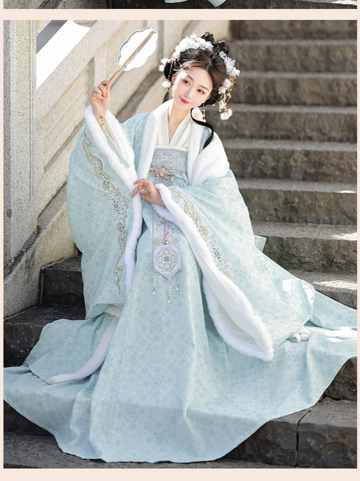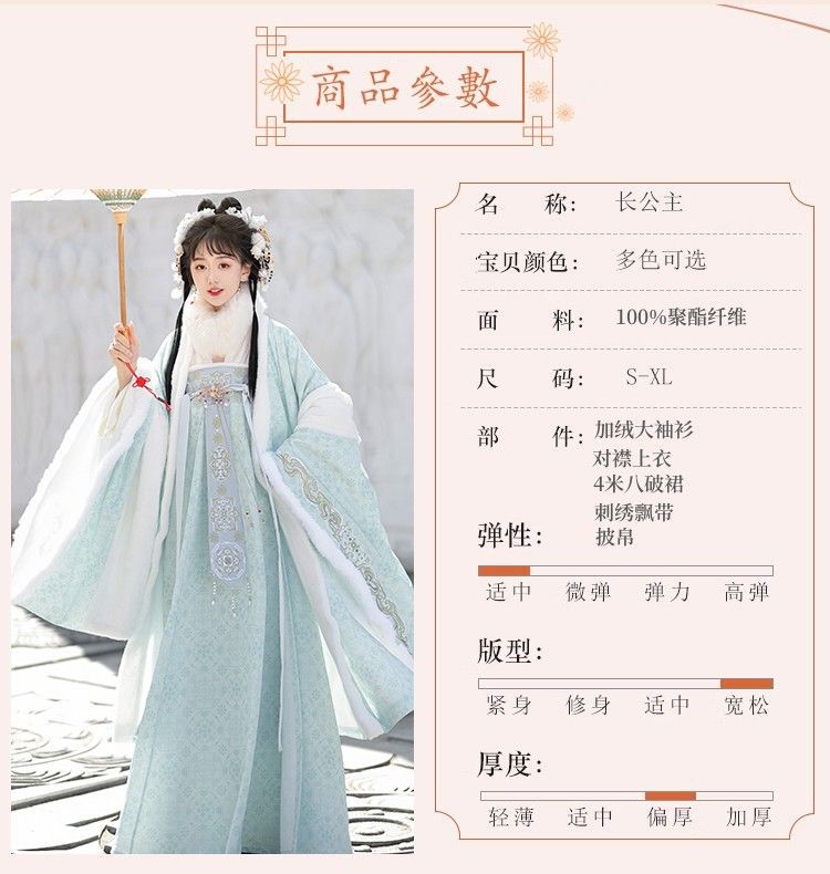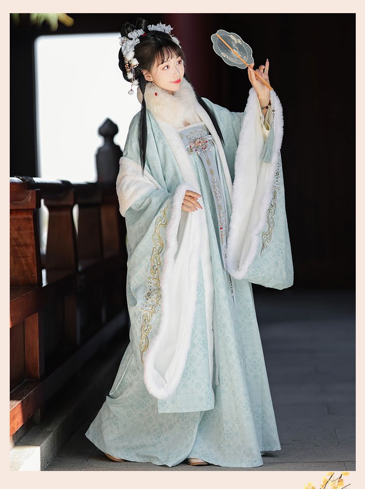Зимний бархатный костюм ханьского костюма женской тяжелой промышленности с вышивкой теплый толстый рукав с большими рукавами