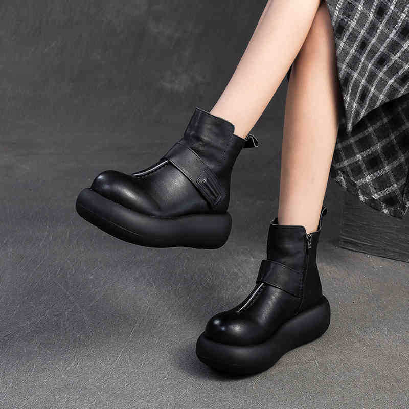 В наличии: Новые осенне-зимние короткие ботинки в корейском стиле с круглым носком и толстой подошвой, ретро-кэжуал, универсальные женские туфли.