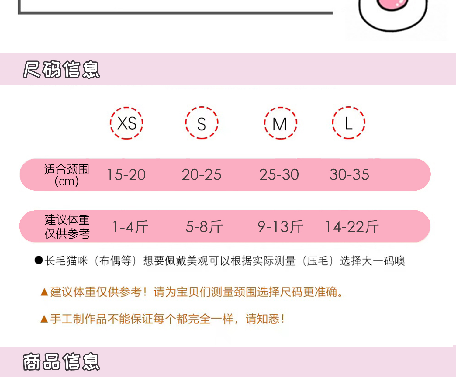 XS【 0.5-2kg 】; S【 2.5-4kg 】; М【 4.5-6.5kg 】; L【 7-11kg 】