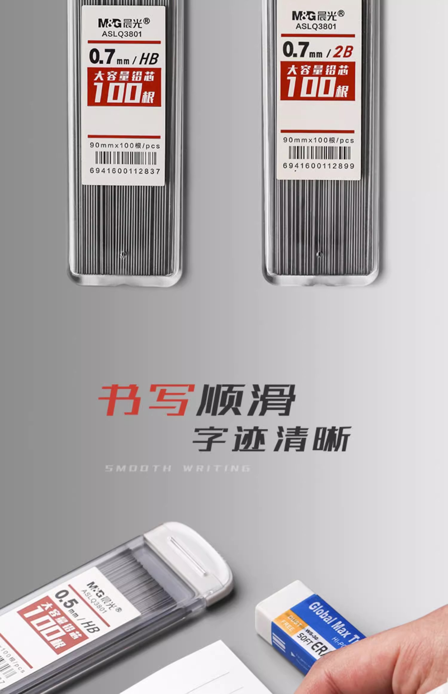 Утренний свет автоматический карандаш-карандаш 0,5 мм большой емкости непрерывный свинцовая смола свинцовый сердечник для учащихся начальной школы 2b автоматический карандаш