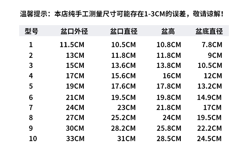Красный 11,5*11 см (5 шт.); Красный 13*12см (5 шт.); Красный 15*14см (5 шт.); Красный 17*16см (5шт); Красный 19*18см (5 шт.); Красный 21*20см (5 шт.); Красный 24*22см (5 шт.); Красный 27*24см (5шт); Красный 30*26см (5 шт.); Красный 33*26см (5 шт.)