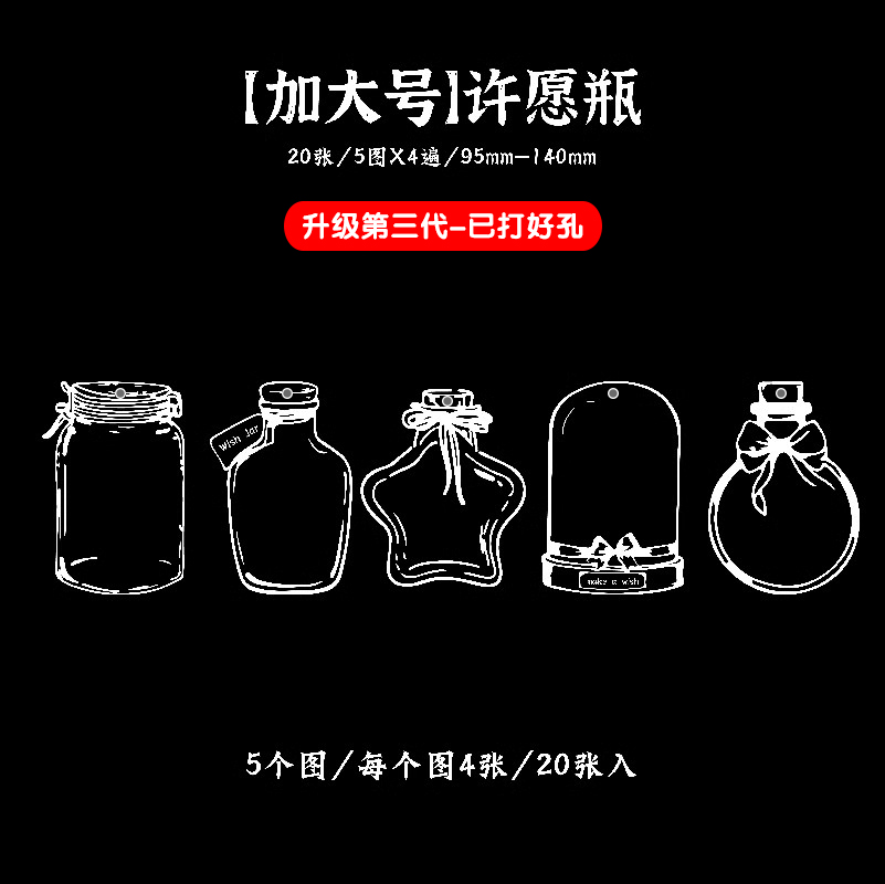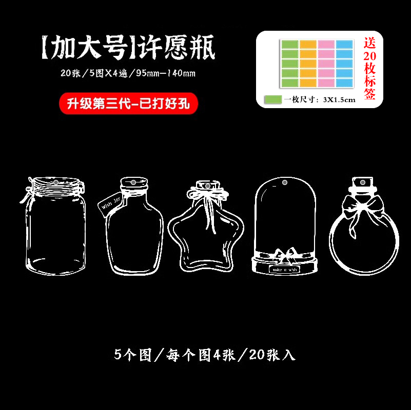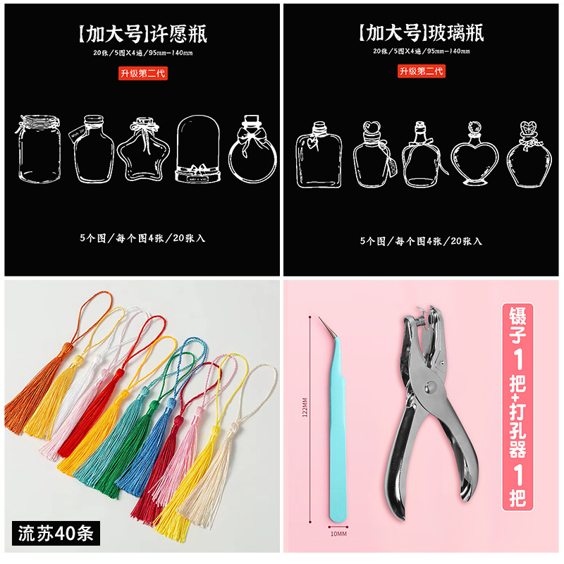 ⭐⭐[Обмеженное время, обновление специального предложения до третьего поколения] [Очень большой размер] Бутылка с пожеланиями - 20 листов (с липкостью/без перфорации); ⭐⭐Третье поколение [очень большой размер был просверлен] бутылка желаний — будет предоставлено 20 штук и 20 этикеток.; ⭐⭐Третье поколение [очень большой размер имеет перфорированные отверстия] бутылка желаний — 20 листов, 20 бесплатных закладок + 20 кисточек.; ⭐[Специальное предложение ограничено по времени] [Очень большой] Бутылка с пожеланиями - 20 листов (клей); ⭐[Очень большой] Стеклянная бутылка - 20 листов (клей); ⭐[Очень большой размер] 20 бутылок желаний_20 стеклянных бутылок, всего 40 штук, липкие; ⭐⭐⭐[Новое обновление второго поколения] 20 разноцветных бутылок с пожеланиями_20 красочных стеклянных бутылок (клей); ⭐Недавно модернизированные бутылки второго поколения — 20 разноцветных бутылок с пожеланиями (клей).; ⭐Недавно модернизированное второе поколение — 20 разноцветных стеклянных бутылок (клей).; ⭐60 очень больших бутылочек с пожеланиями + каменные бутылки + стеклянные бутылки (в комплекте дырокол + пинцет + этикетка * 60 + кисточка * 60); ⭐40 очень больших бутылочек с пожеланиями + бутылочек с каменями (в комплекте дырокол + пинцет + этикетка * 40 + кисточка * 40); 60 очень больших бутылок с пожеланиями + каменные бутылки + стеклянные бутылки (60 этикеток для закладок в комплекте); 40 очень больших бутылочек с пожеланиями + каменные бутылки (40 этикеток для закладок в комплекте); 20 очень больших бутылочек с пожеланиями (20 этикеток для закладок в комплекте); 20 очень больших каменных бутылок (в комплект входят 20 ярлыков для закладок); ⭐⭐[Новое обновление до второго поколения] Цветы цветет в любое время года + Зеленый Инь Румшень [40 неповторяющихся изображений] Очень большой размер (с липкостью); ⭐[Новое обновление до второго поколения] Пакет Green Yin Rumeng [20 неповторяющихся изображений] Очень большой размер (клей); ⭐[Новое обновление до второго поколения] Цветы цветет в упаковке всех сезонов [20 недублированных листов] Очень большой размер (клей); ⭐⭐20 кисточек_1 перфоратор_1 пинцет; ⭐Цвет кисточки случайный - 20 шт.; ⭐⭐[Комбинированный набор сухоцветов] 20 бутылочек желаний бесплатно 16 весенних цветов в саду_1 перфоратор_1 пинцет_20 кисточек; ⭐⭐[Комбинированный набор сухоцветов] 20 бутылочек желаний бесплатно 35 весенних цветов_1 перфоратор_1 пинцет_20 кисточек; ⭐⭐[Комбинированный набор сухоцветов] 20 бутылочек желаний, 50 цветов бесплатно_1 перфоратор_1 пинцет_20 кисточек; ⭐⭐[Комбинированный набор сухоцветов] 20 бутылочек желаний с 12 стилями желтого кружева_1 перфоратор_1 пинцет_20 кисточек; ⭐⭐[Комбинированный набор сухоцветов] 20 бутылочек желаний, 25 бесплатных синих фантазийных цветов_1 перфоратор_1 пинцет_20 кисточек; ⭐⭐[Комбинированный набор сухоцветов] 20 бутылочек желаний с 18 розовыми ежедневными цветами_1 перфоратор_1 пинцет_20 кисточками; ⭐⭐[Комбинированный набор сухоцветов] 20 бутылочек желаний бесплатно 40 осенних садов_1 перфоратор_1 пинцет_20 кисточек; ⭐ ⭐ [Комбинированный набор сухоцветов] 20 бутылочек желаний, бесплатно 25 листьев штамповочной машины Zhiqiu_1 пинцета_20 кисточек; ⭐⭐[Комбинированный набор образцов] 20 бутылочек желаний + 1 перфоратор + 1 пинцет + 20 кисточек; ⭐⭐[Комбинированный набор образцов] 20 стеклянных бутылок + 1 перфоратор + 1 пинцет + 20 кисточек; ⭐⭐[Комбинированный набор обра