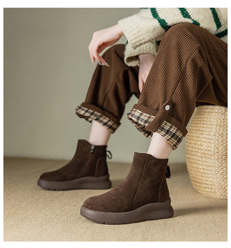 Обувь женская 2024 новая взрывная осень-зима плюс бархатная женская обувь большого размера от 41 до 43 кожаная мягкая подошва Мартин короткие сапоги