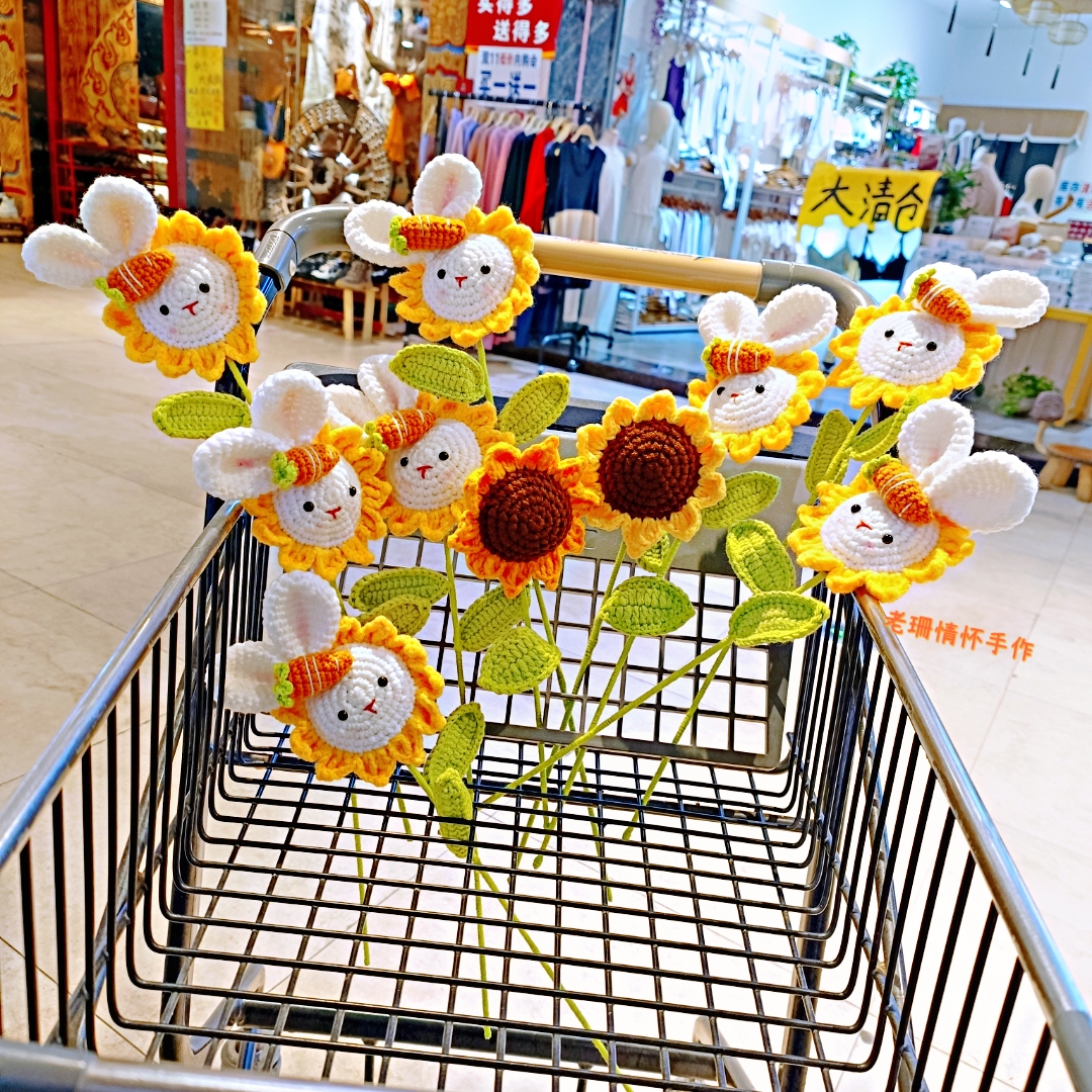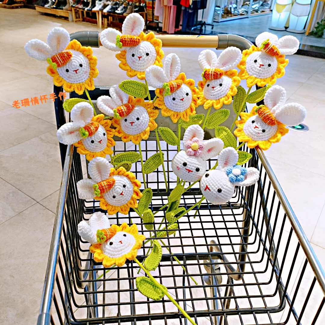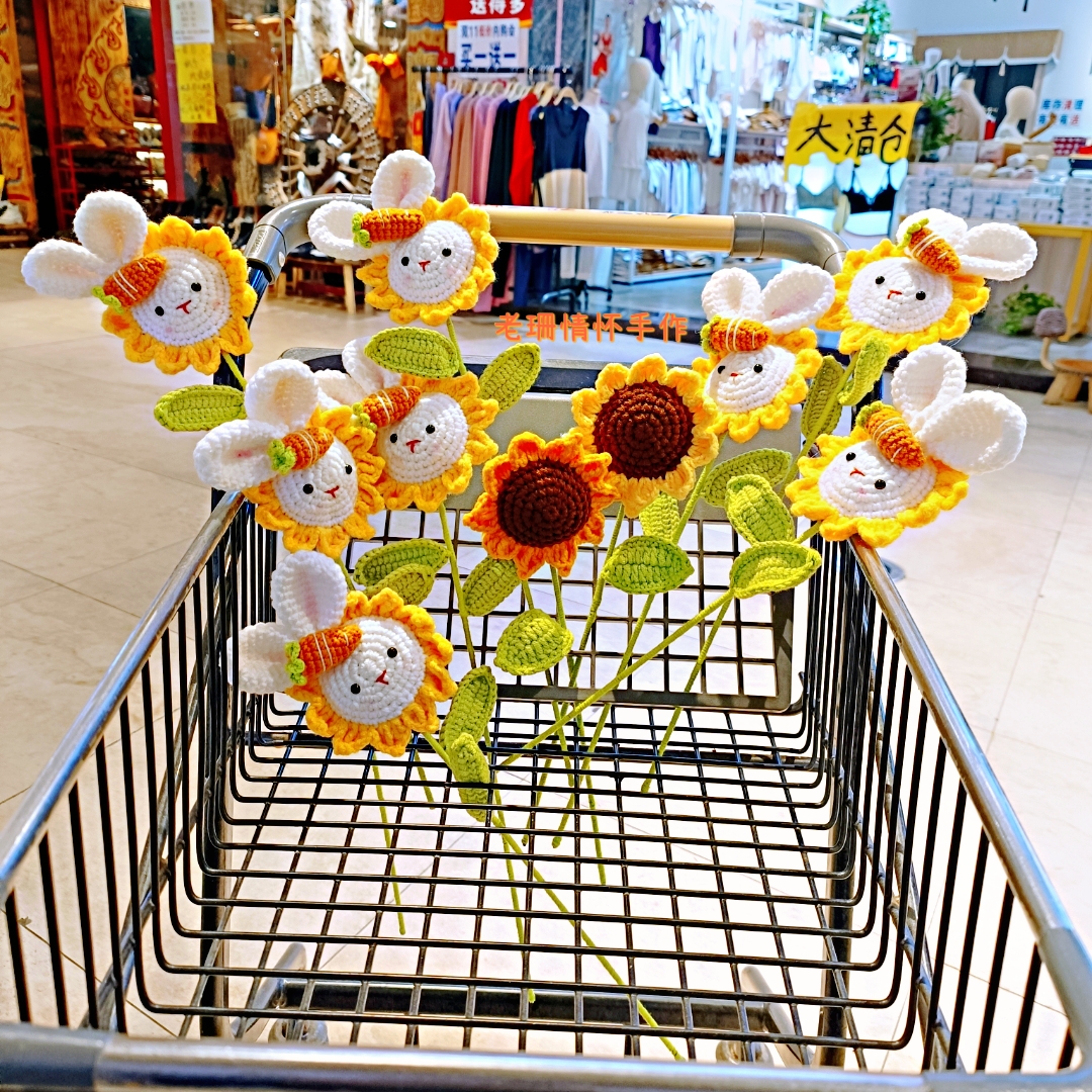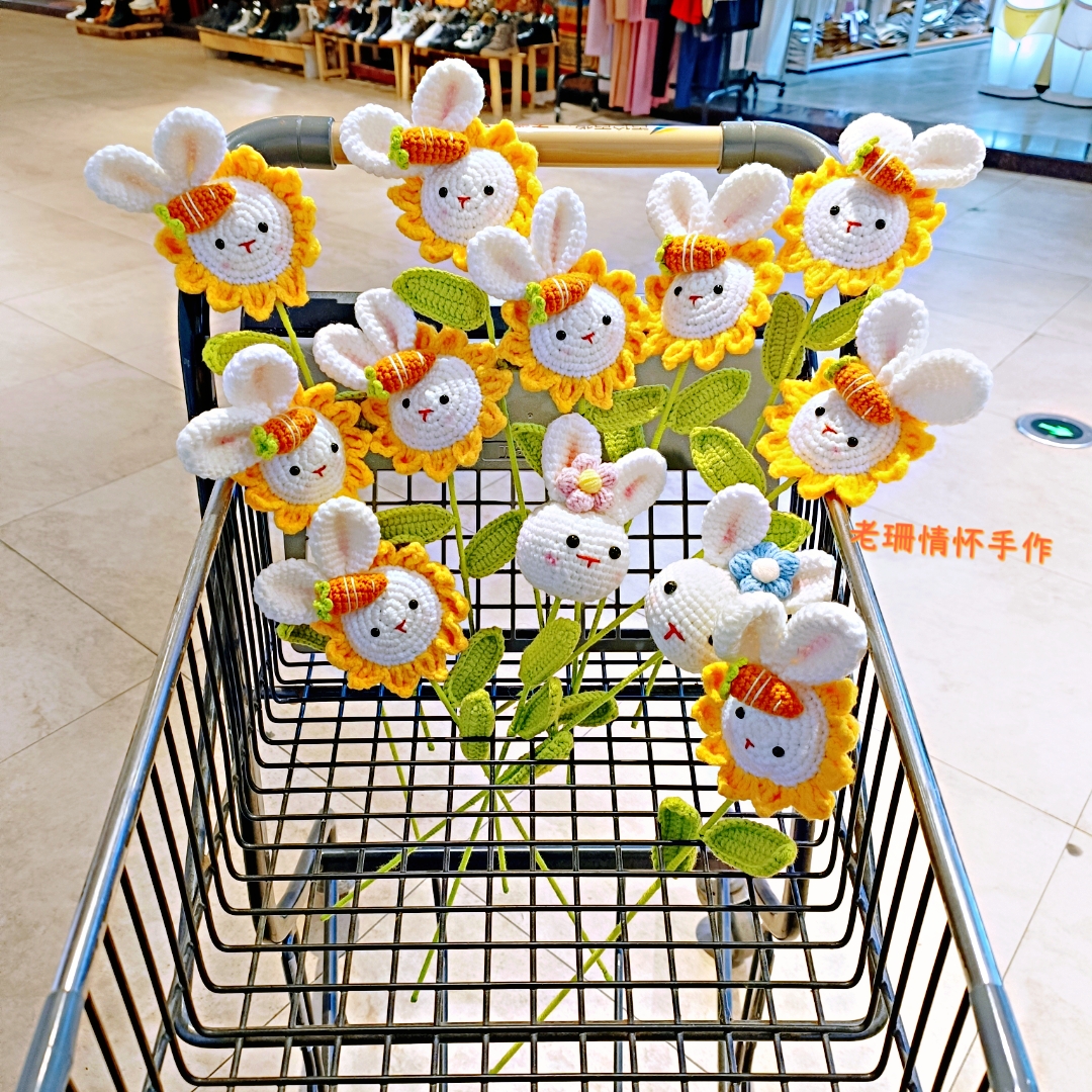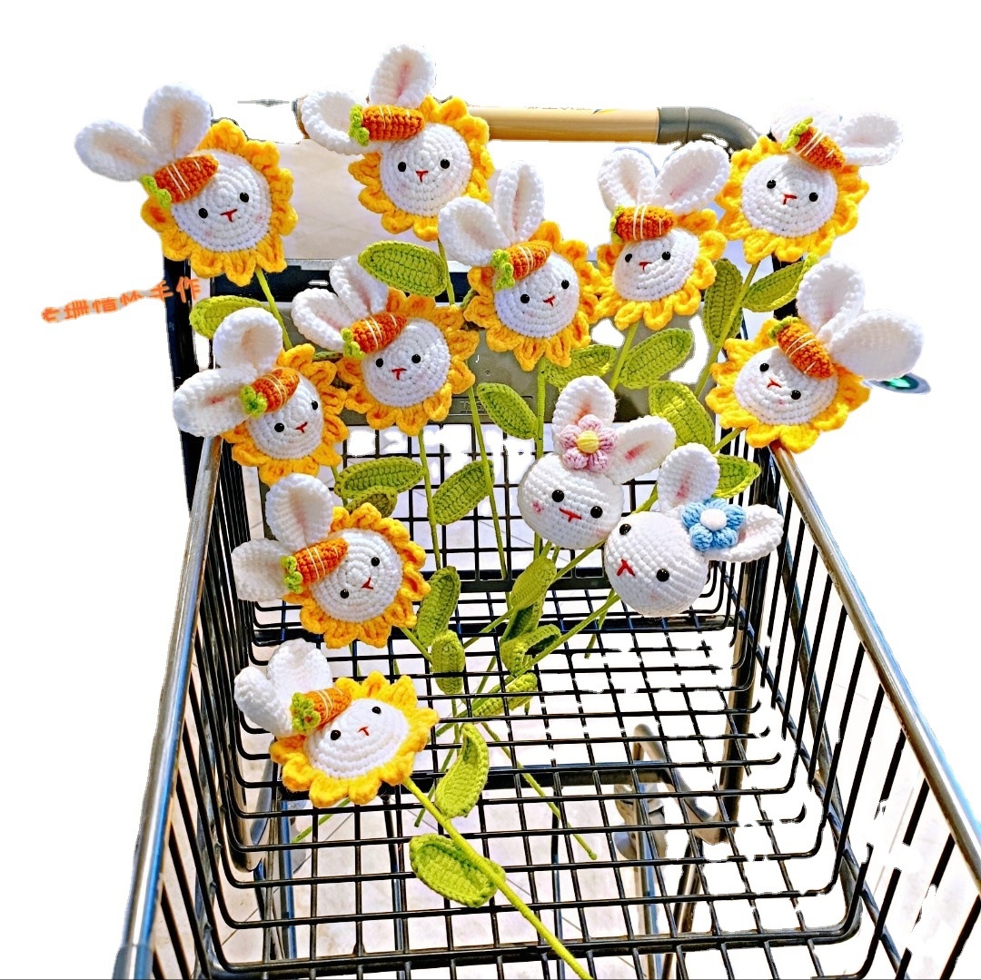 Захватите готовую бесплатную доставку подсолнух кролик ручной работы букет шерстяной вязаный крючком креативный рождественский подарок