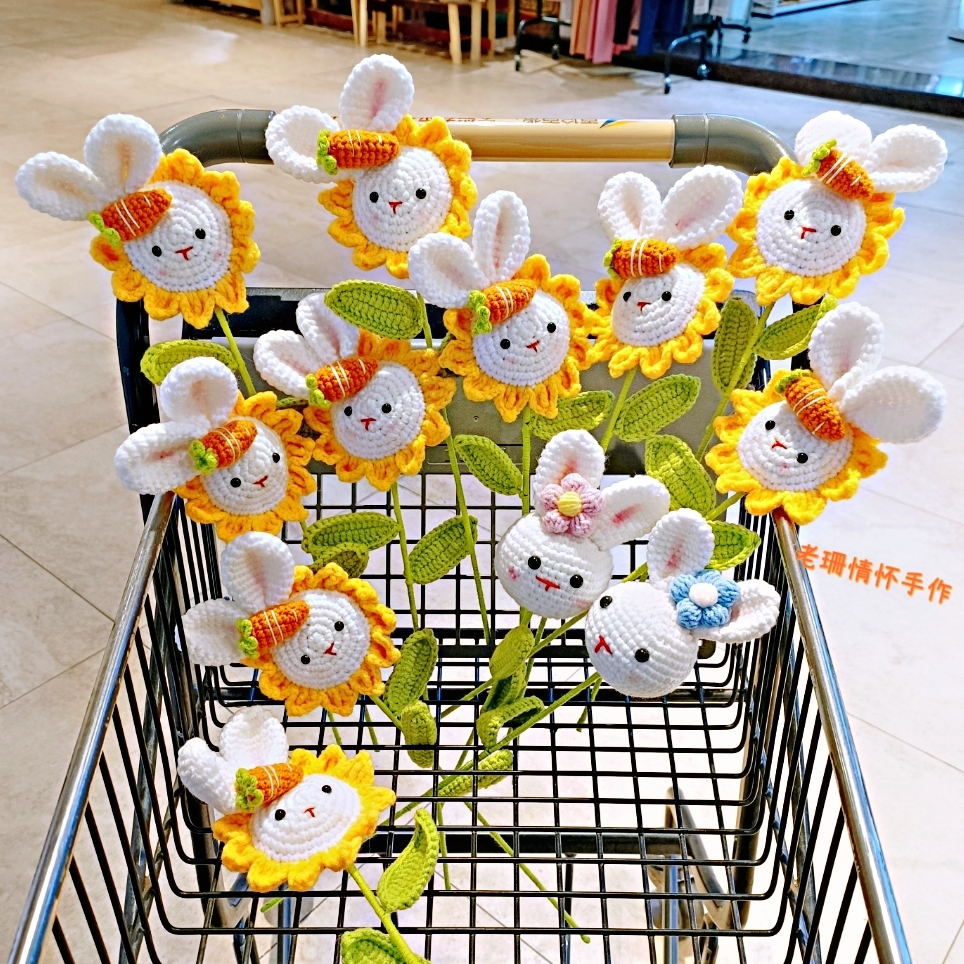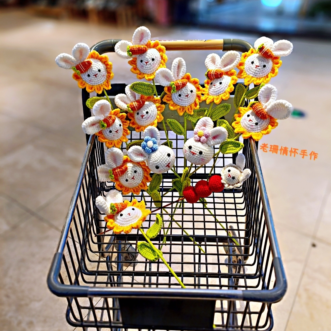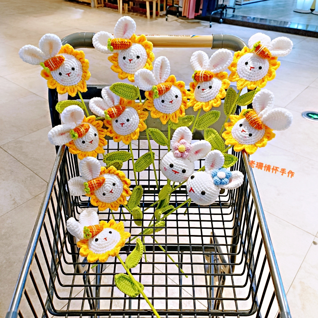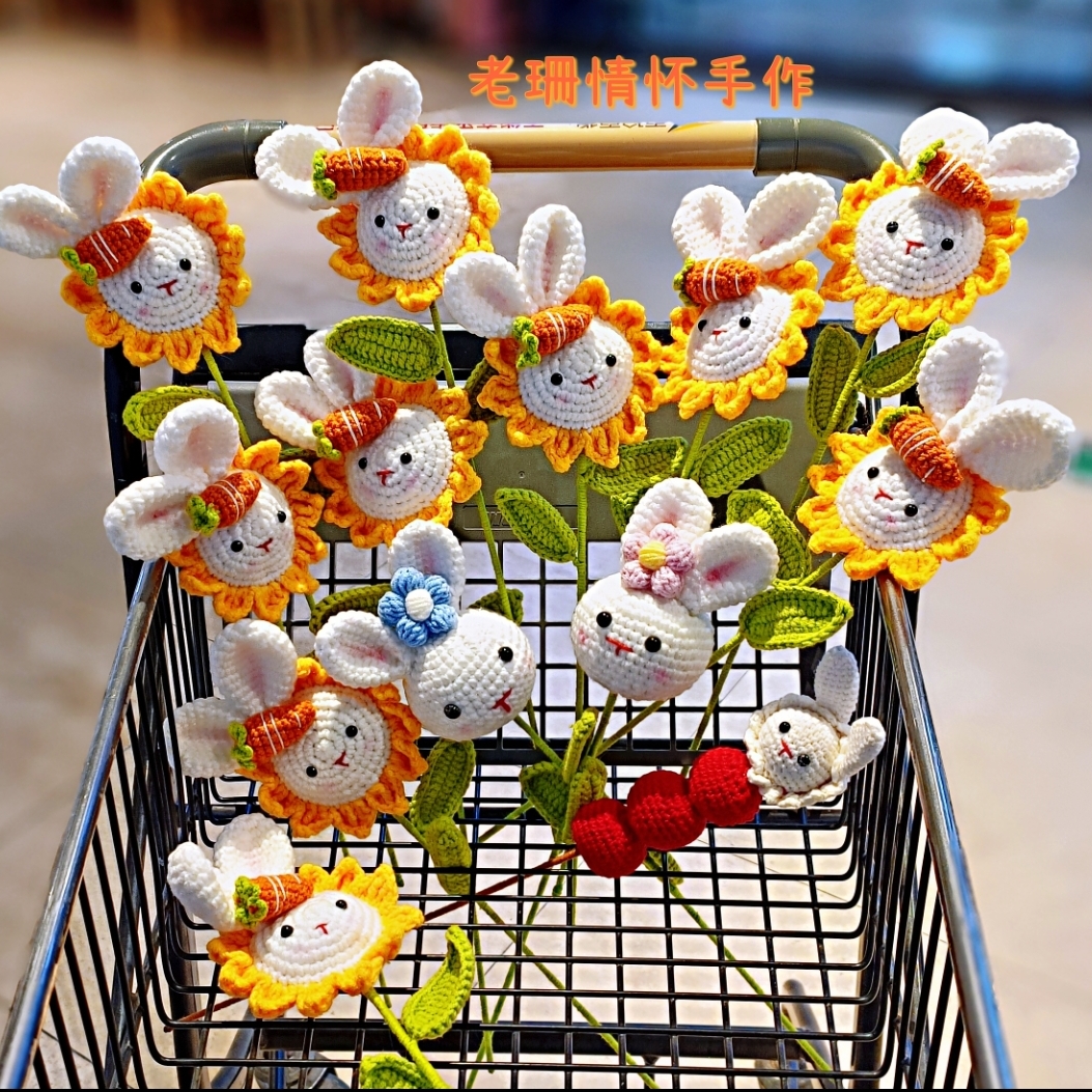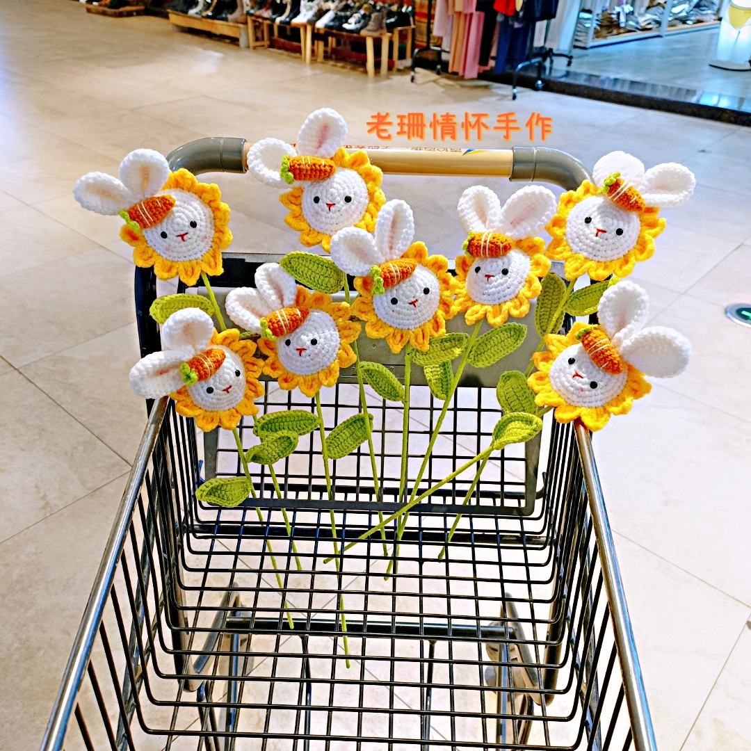 Захватите готовую бесплатную доставку подсолнух кролик ручной работы букет шерстяной вязаный крючком креативный рождественский подарок