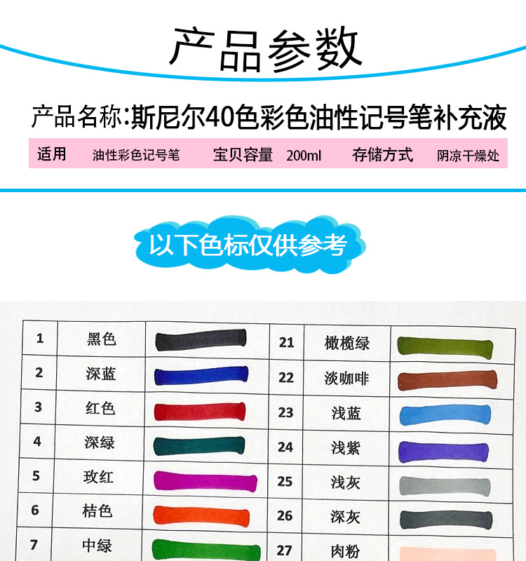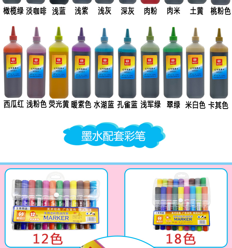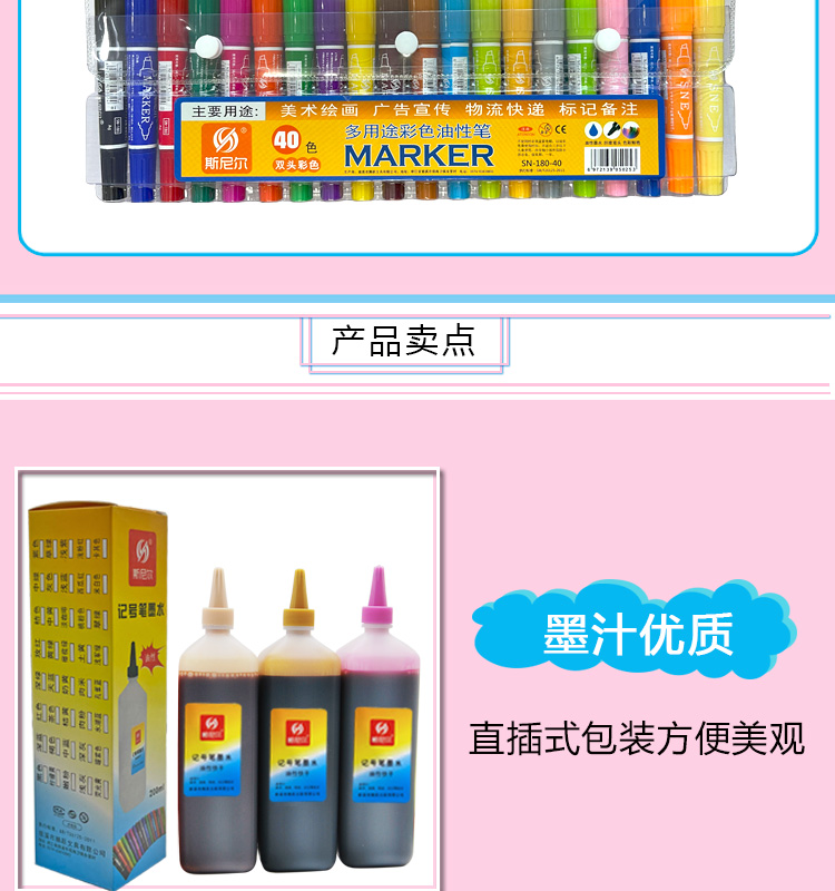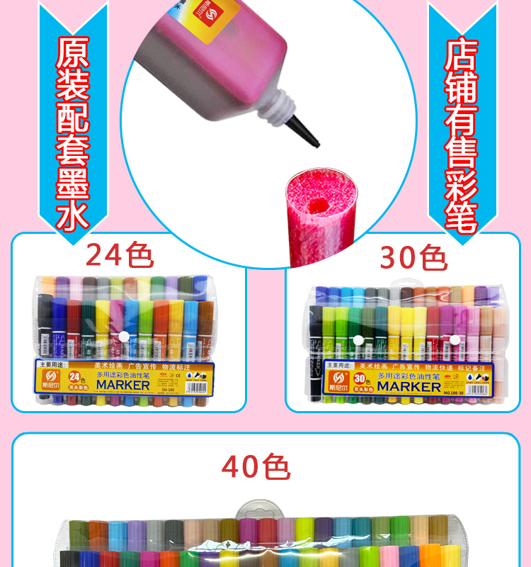 Снейл 24 цвета 30 цветов 40 цветов цветные масляные маркерные чернила 200ml маркер-перо POP-ручка для детей