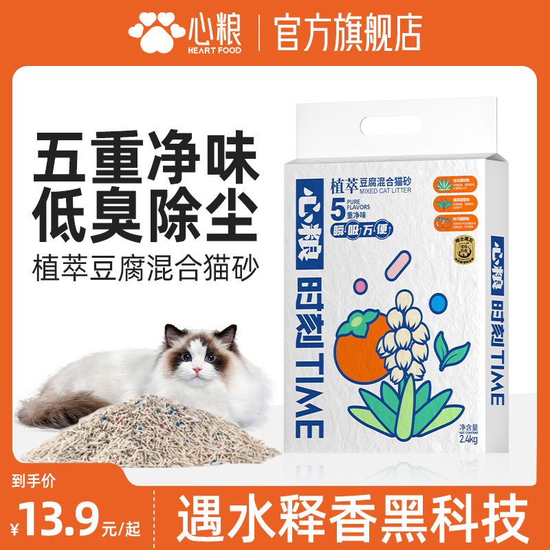 Сердечное зерно Смешанный кошачий песок тофу бентонит дезодорант низкая пыль можно смыть в туалете