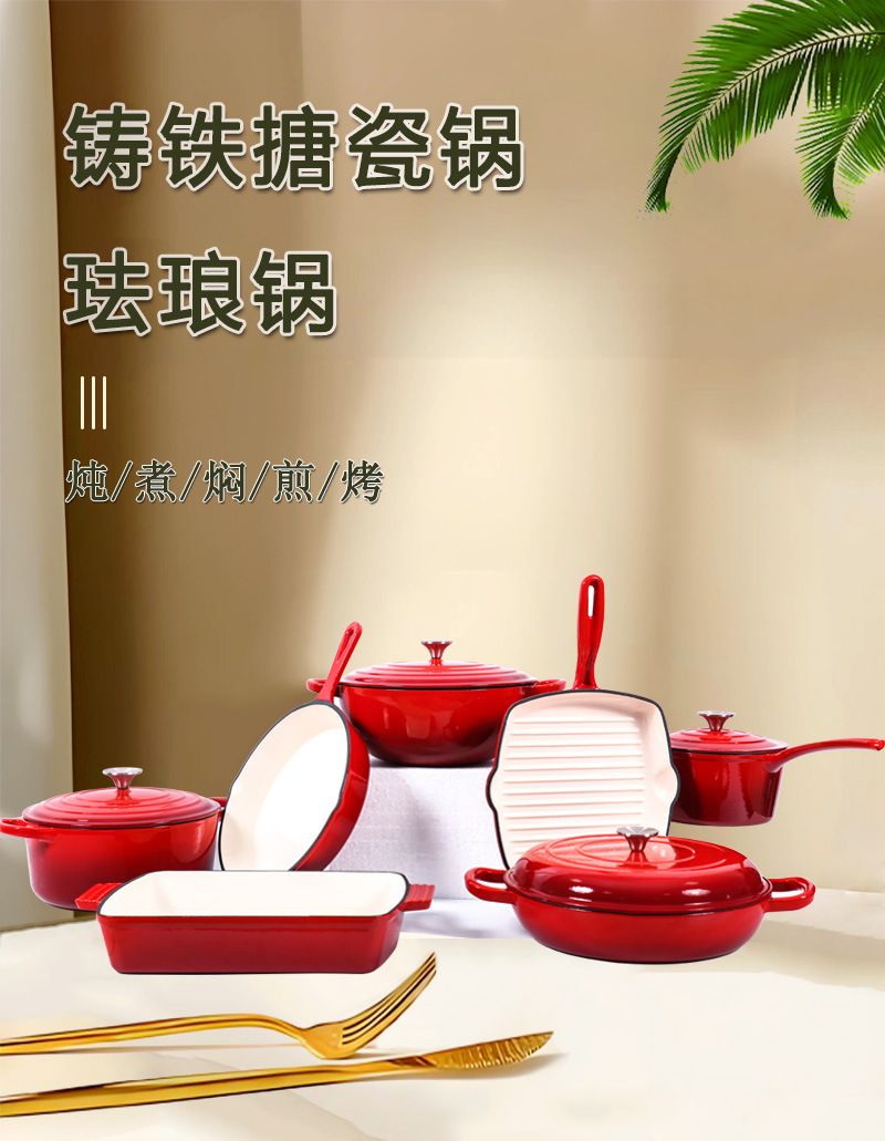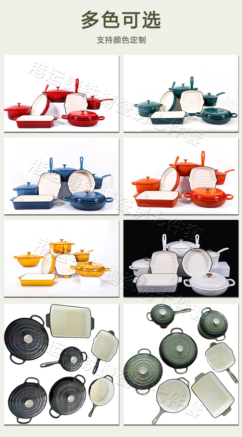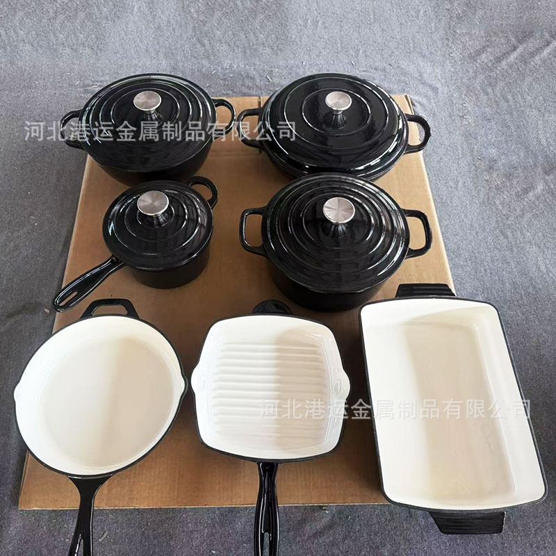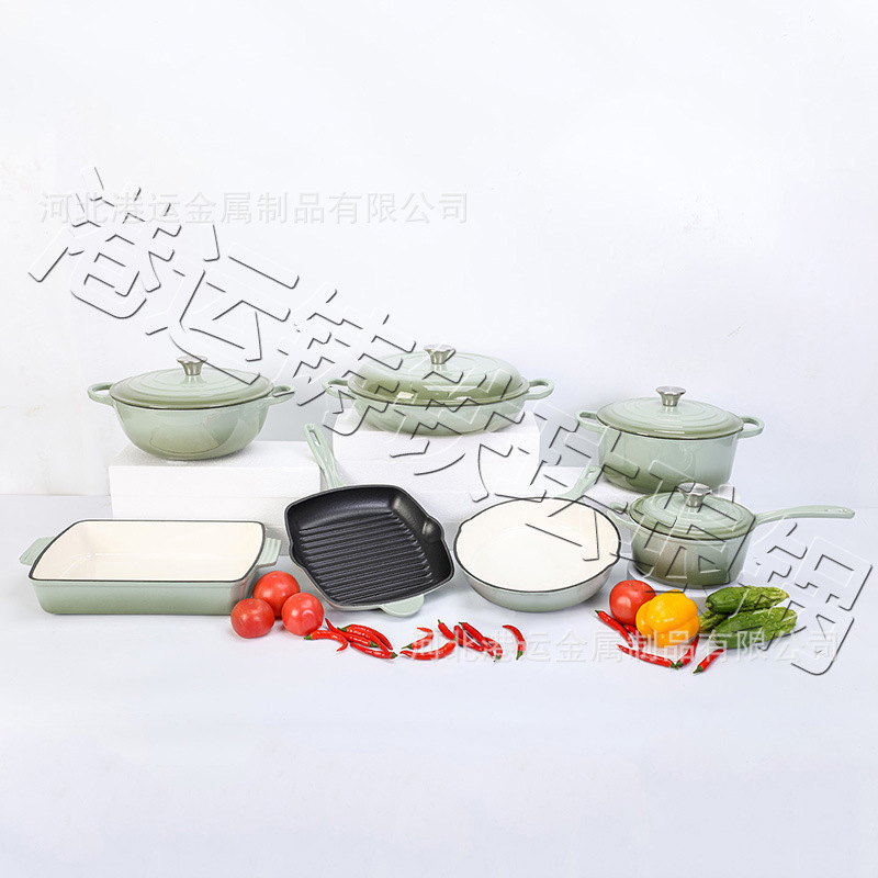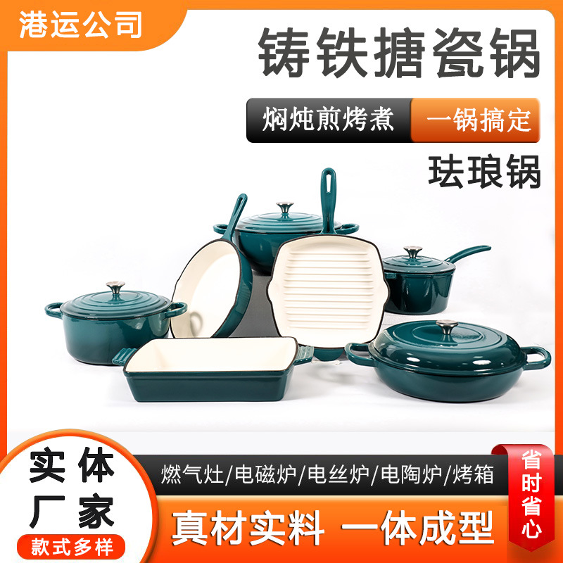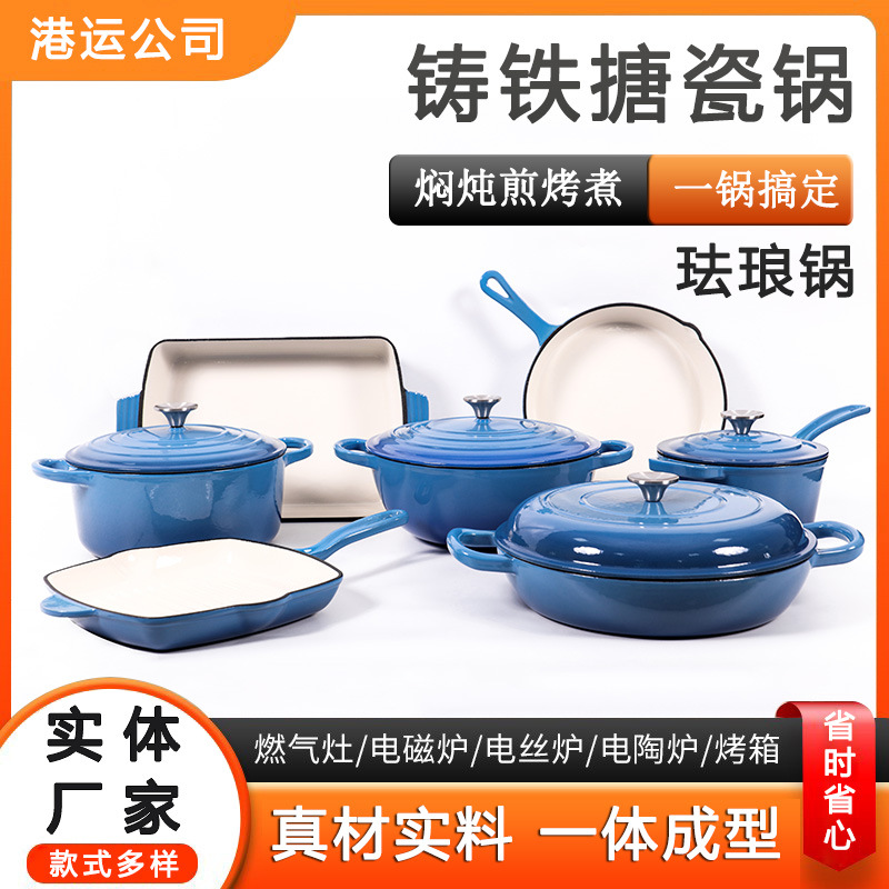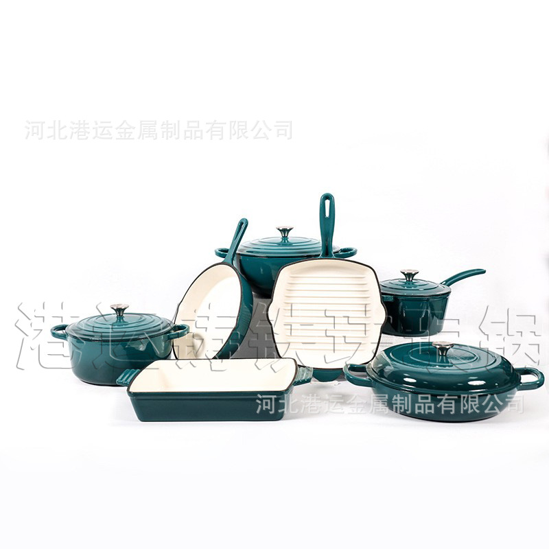 Домашний чугунный эмалевый эмалевый набор из семи частей кастрюли с морепродуктами