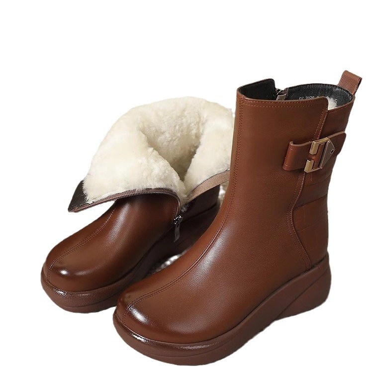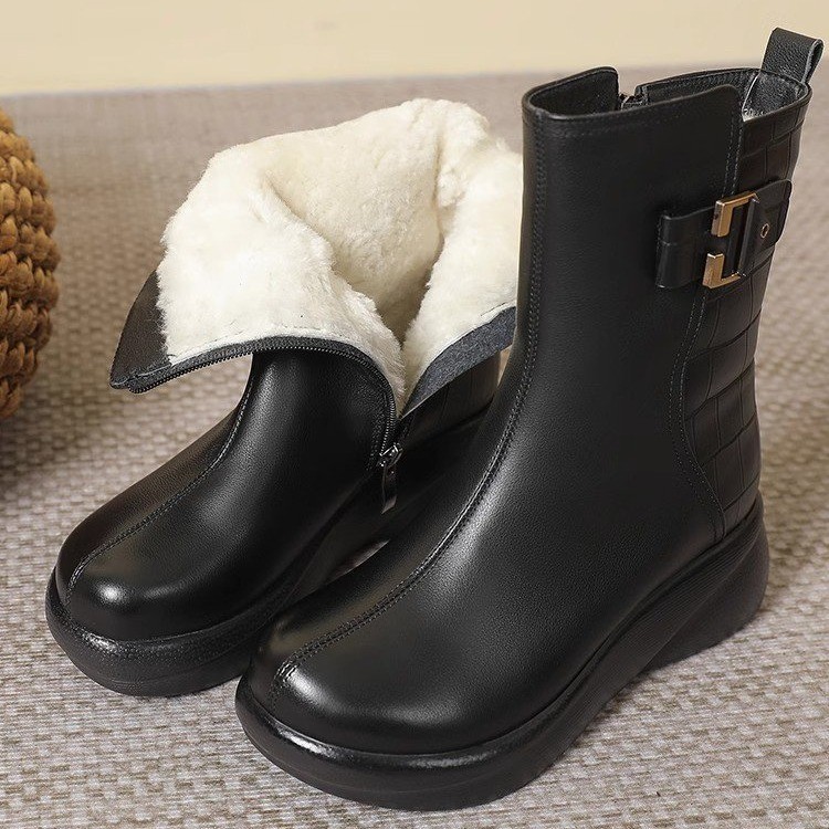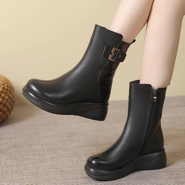 Толстая подошва плюс бархат теплые средние сапоги мягкие подошвы удобные модные сапоги Martin 2024 осень-зима новая дикая мама хлопковая обувь