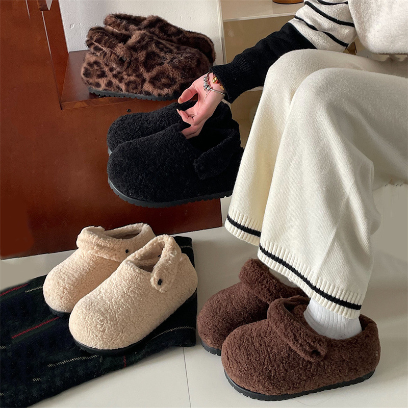 Белые булочки с толстым дном шерстяные тапочки женские наружные 2024 новые осенние и зимние бархатные теплые топы