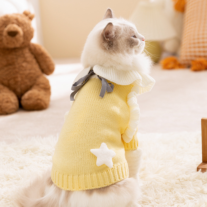 Осенняя и зимняя кошка одежда милая Принцесса ветер бант платье свитер утолщение теплая щенки одежда для домашних животных