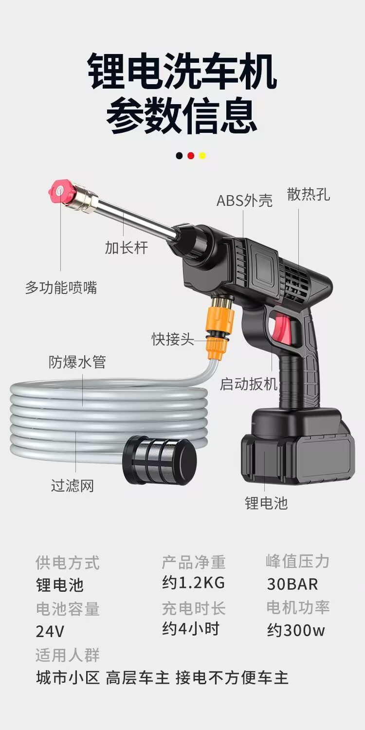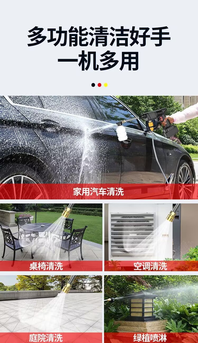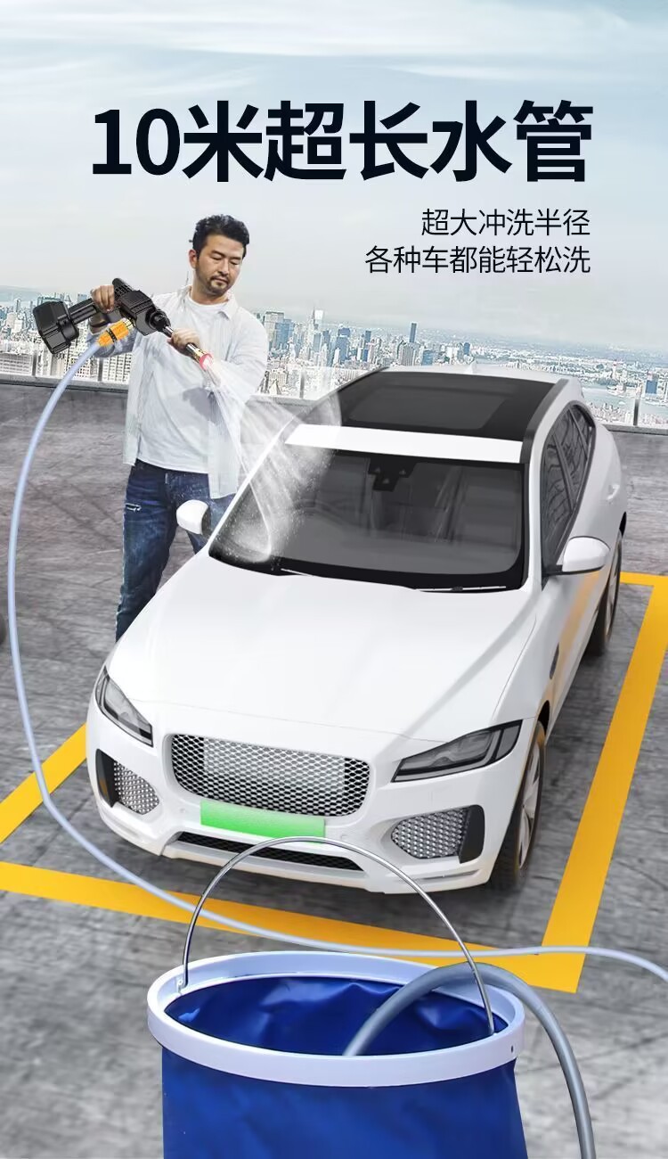 Беспроводная автомойка высокого давления Автомойка Автомойка Домашняя водяная пушка Портативная зарядка Сильная литиевая батарея Очистка наддува артефакт