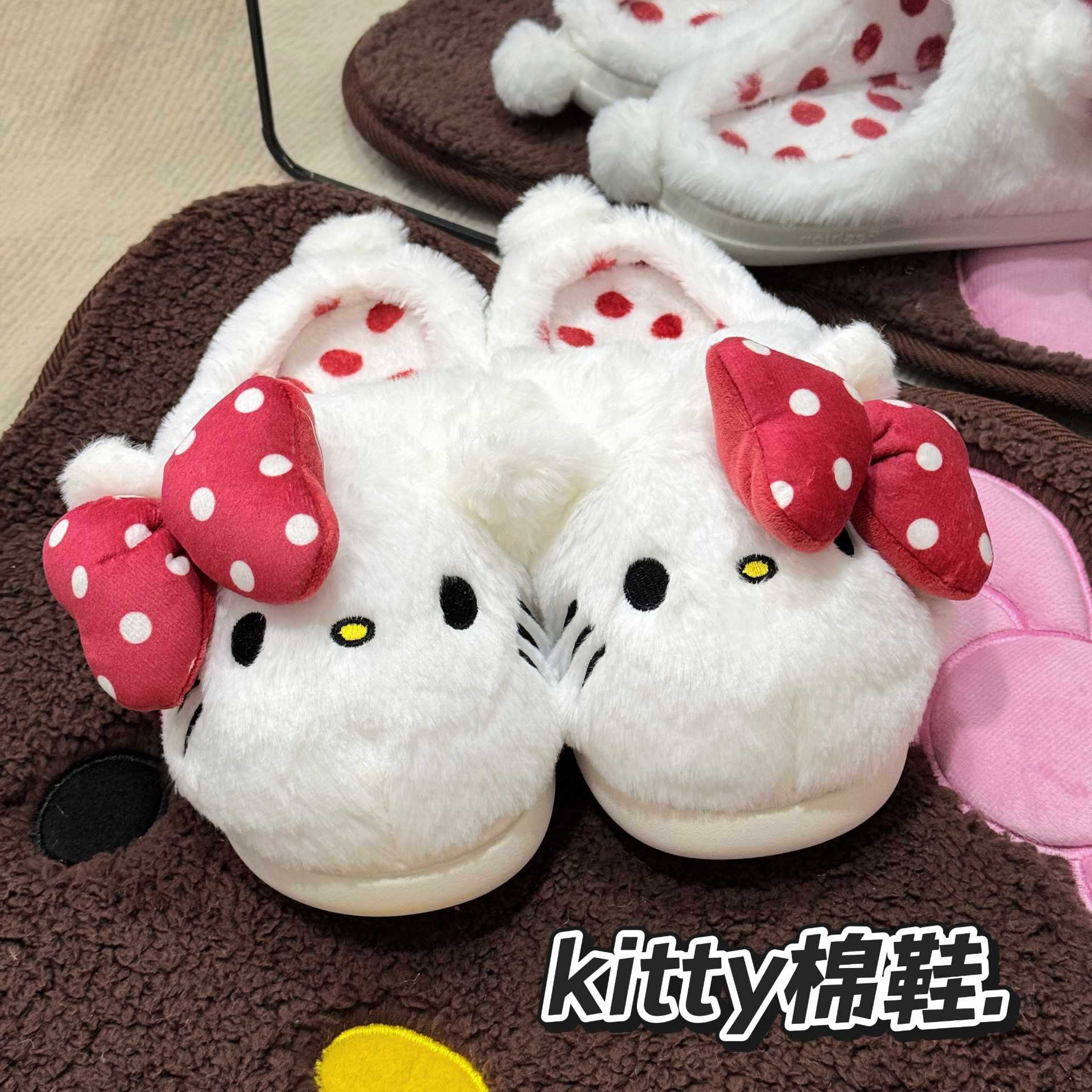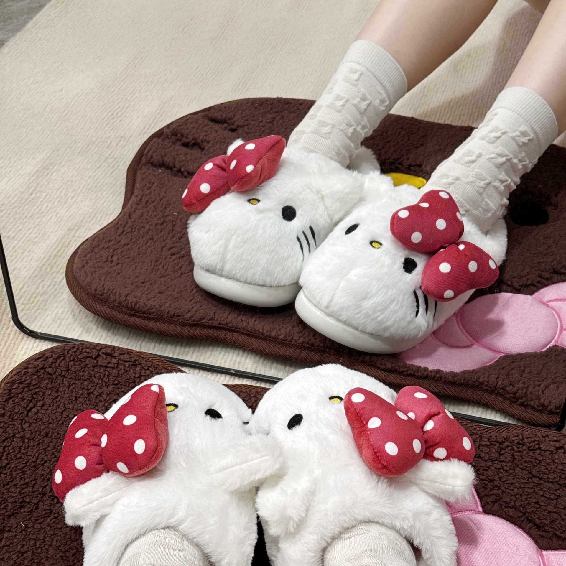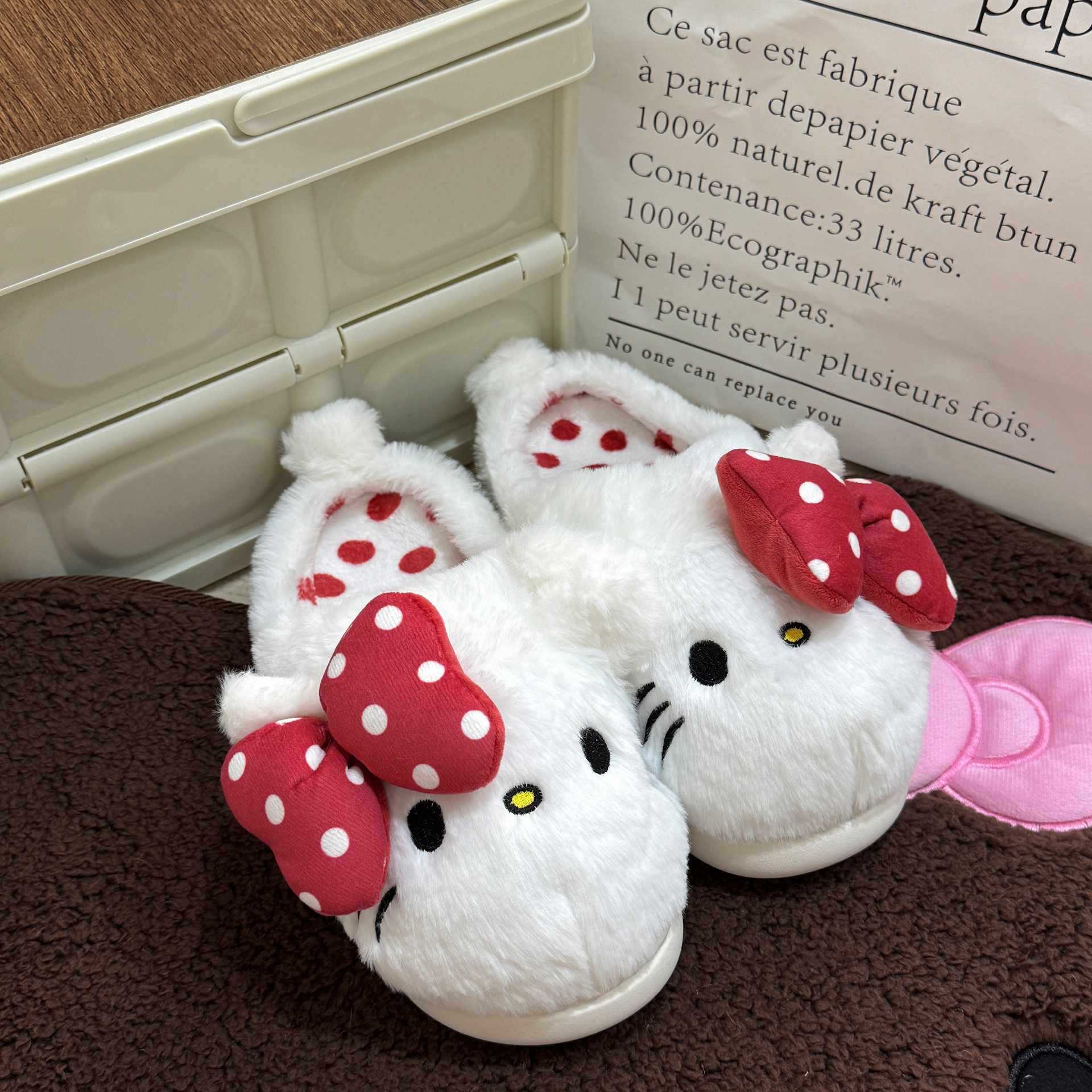 Волновой точки KT кот ~ Старинные милые ins мультяшные тапочки зимний комнатная теплая шерстяная обувь