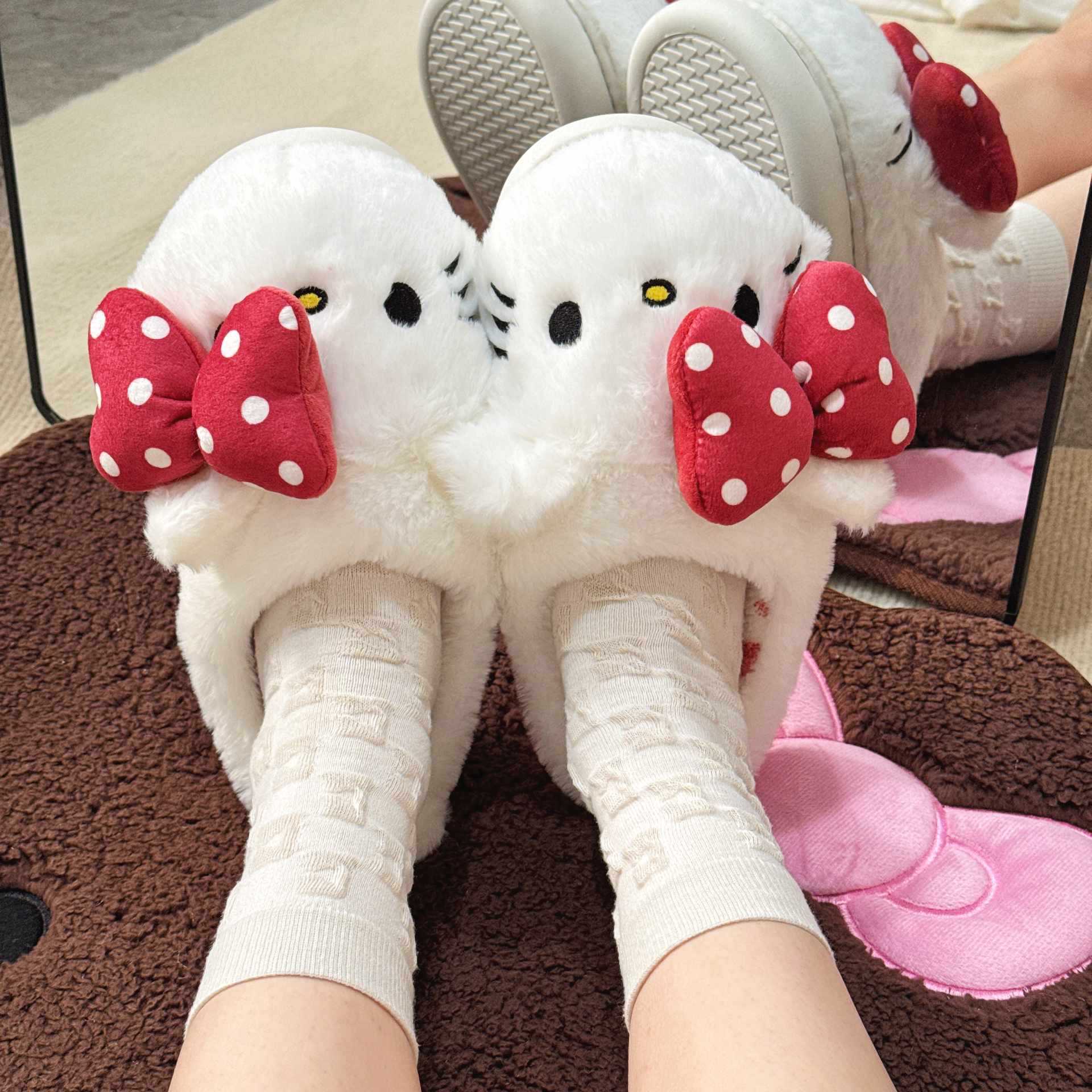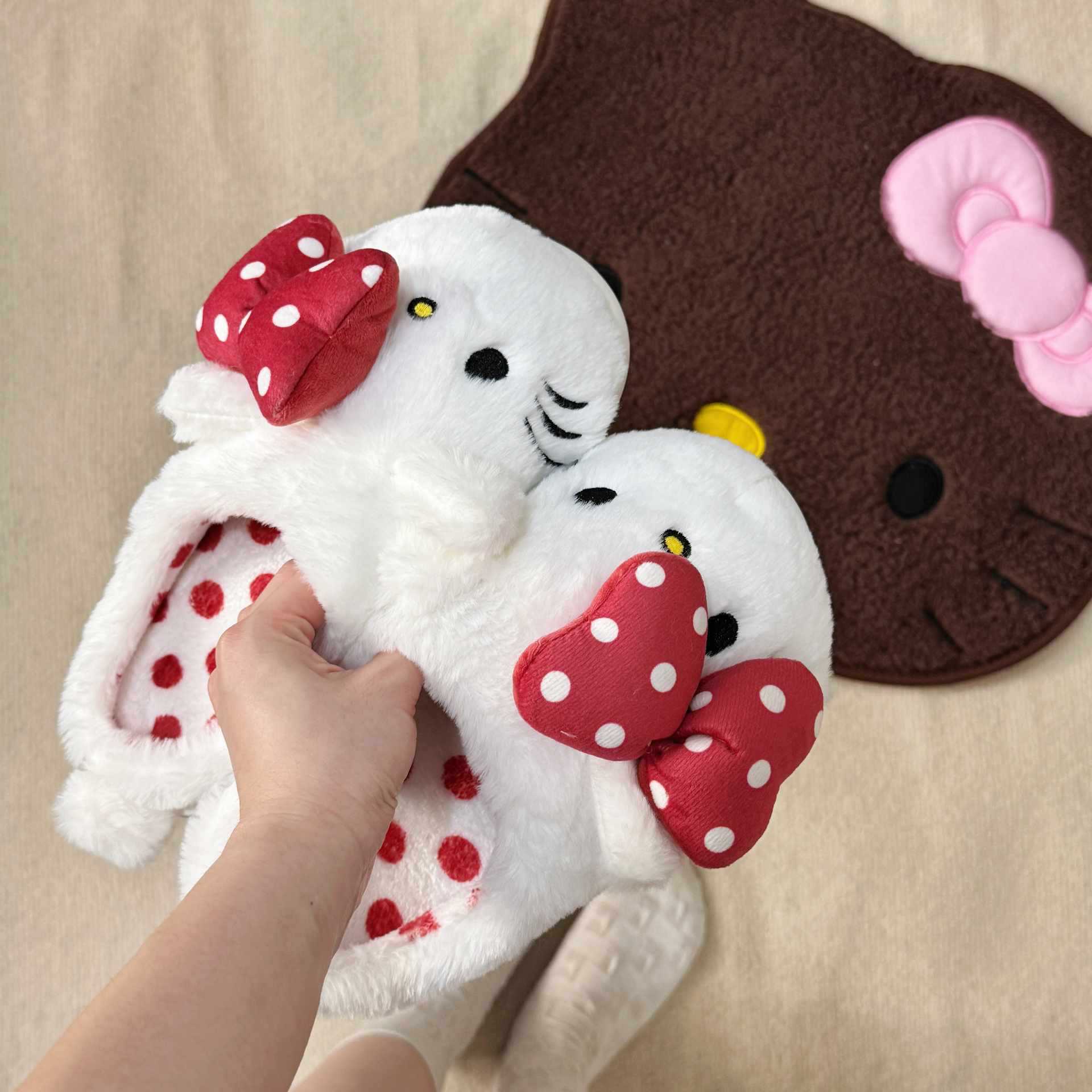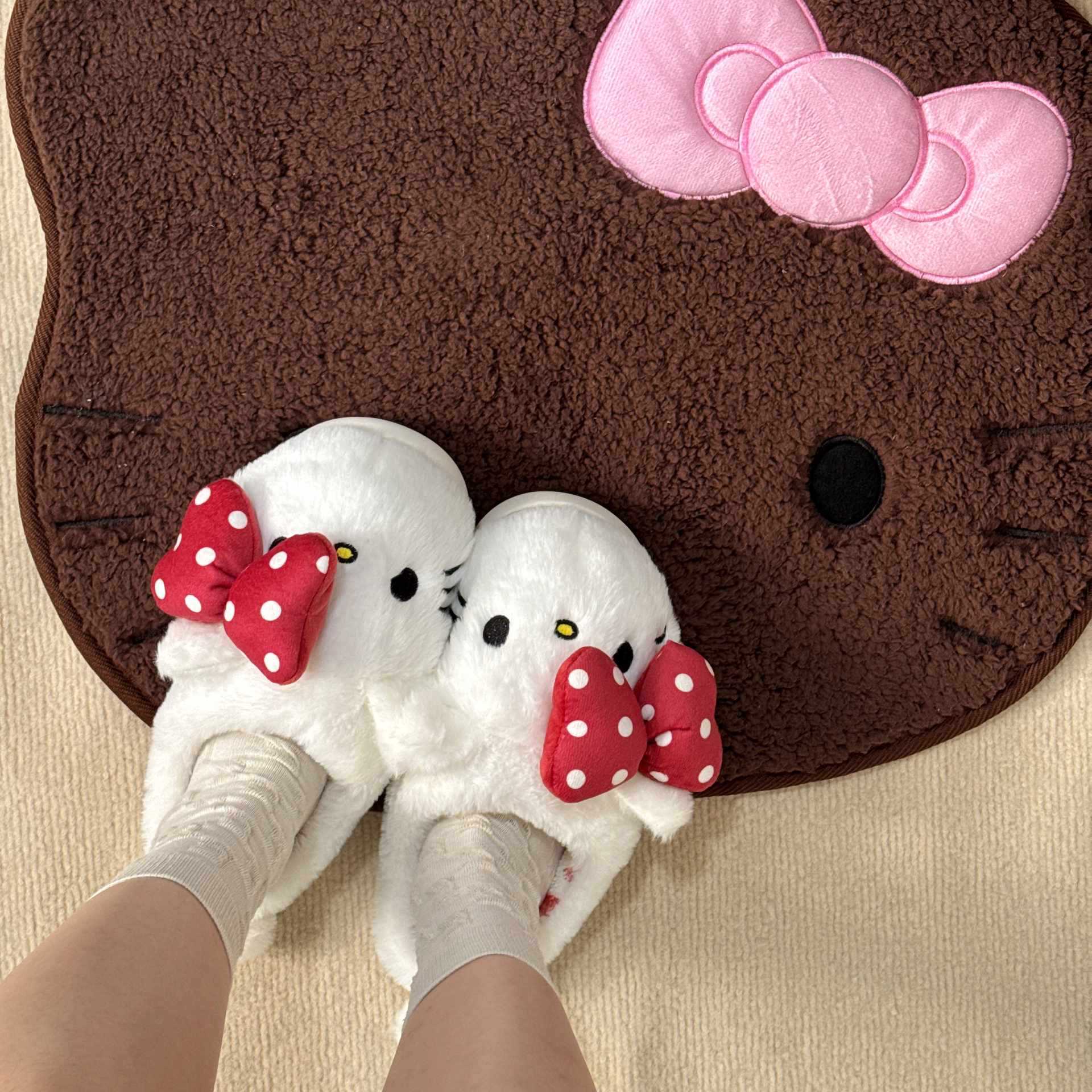 Волновой точки KT кот ~ Старинные милые ins мультяшные тапочки зимний комнатная теплая шерстяная обувь