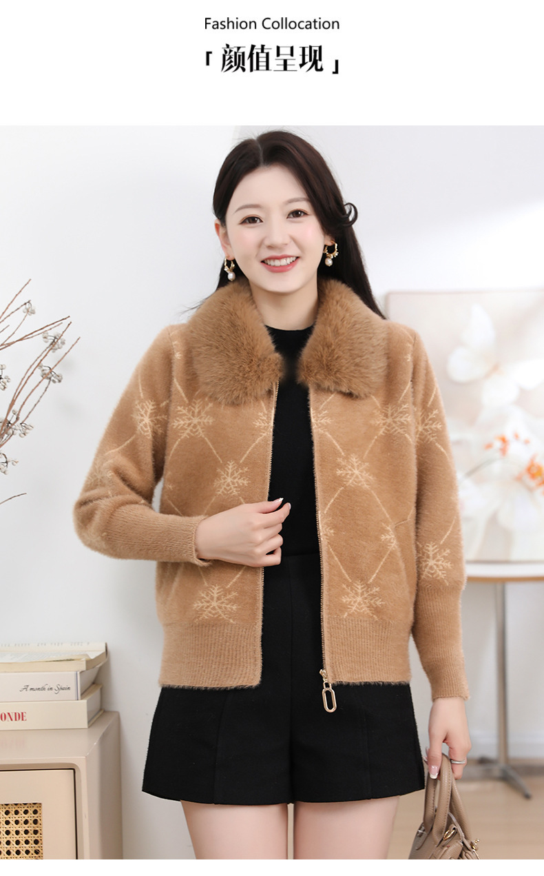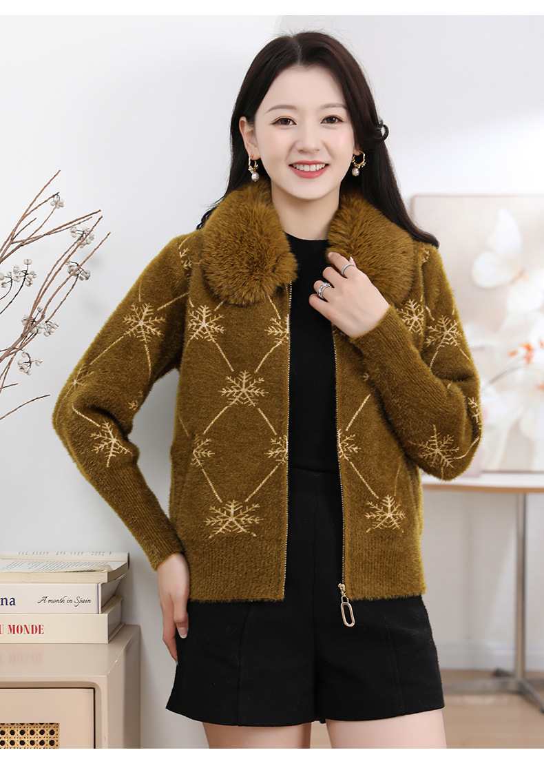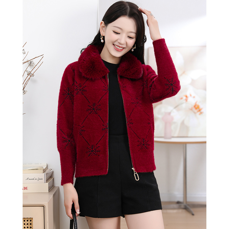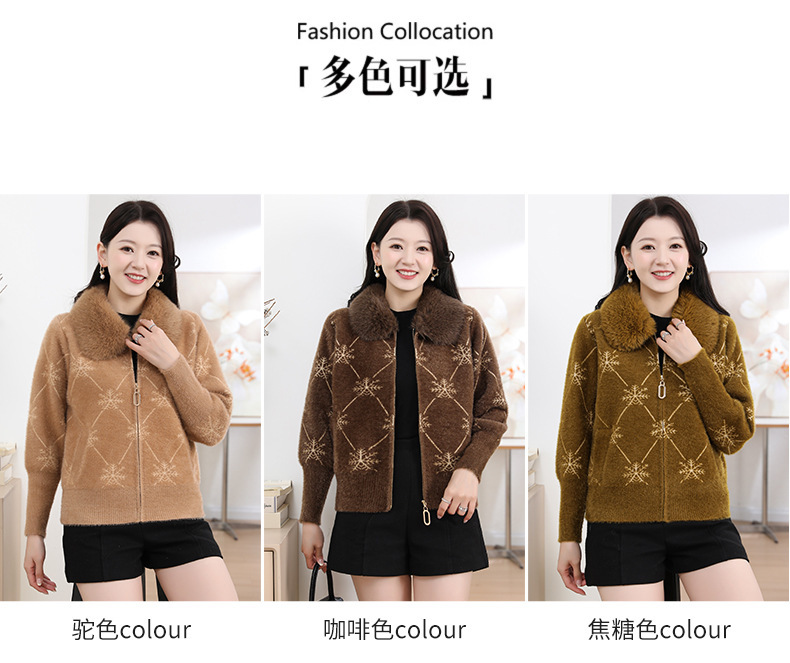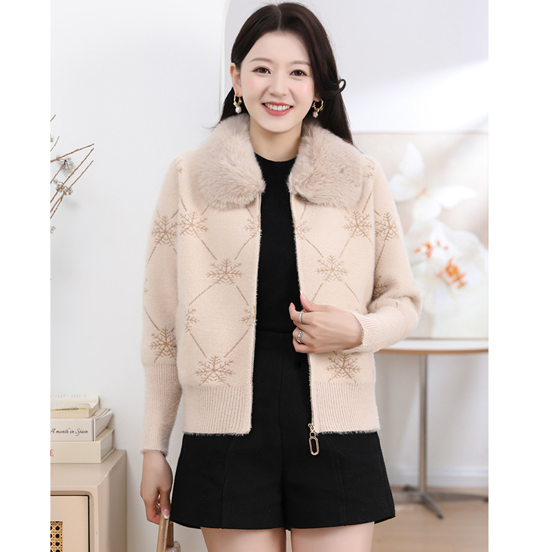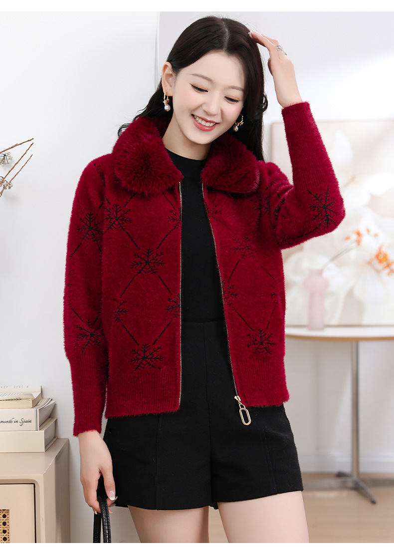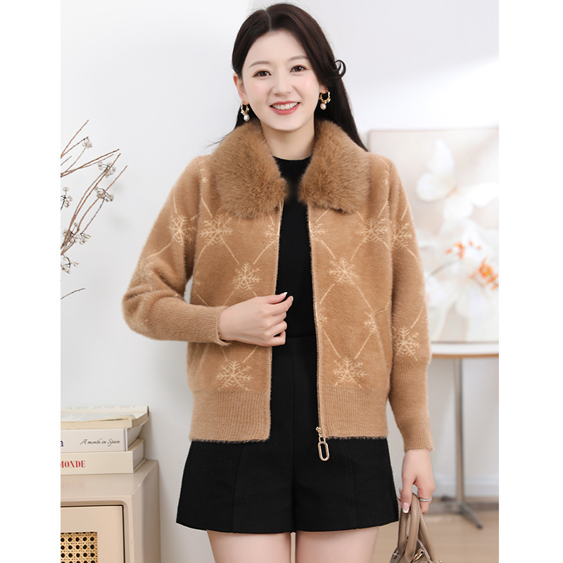 Внешняя торговля мамой в имитации норковой шерсти на молнии трикотажная куртка с большим меховым воротником