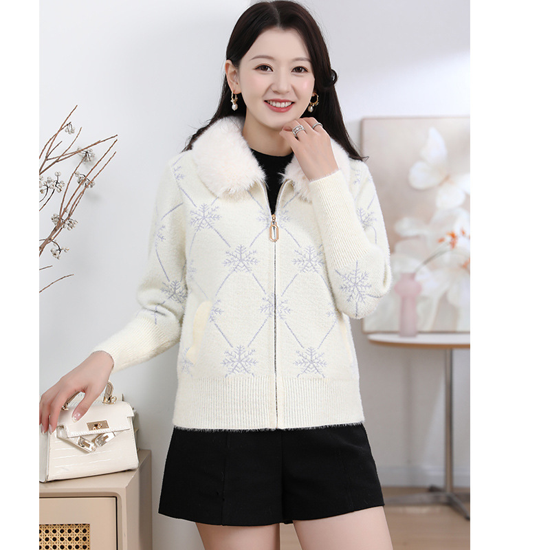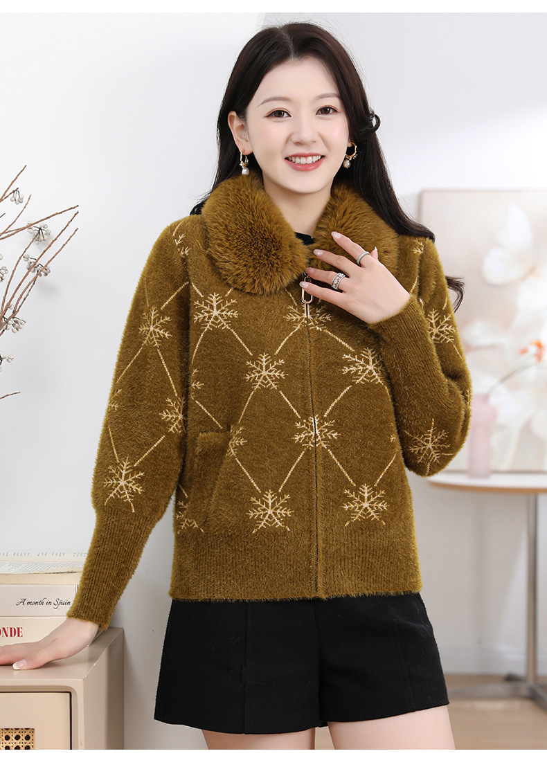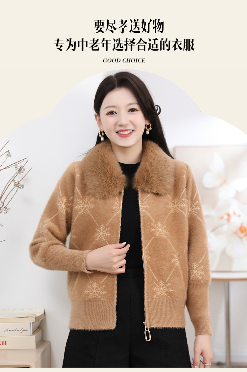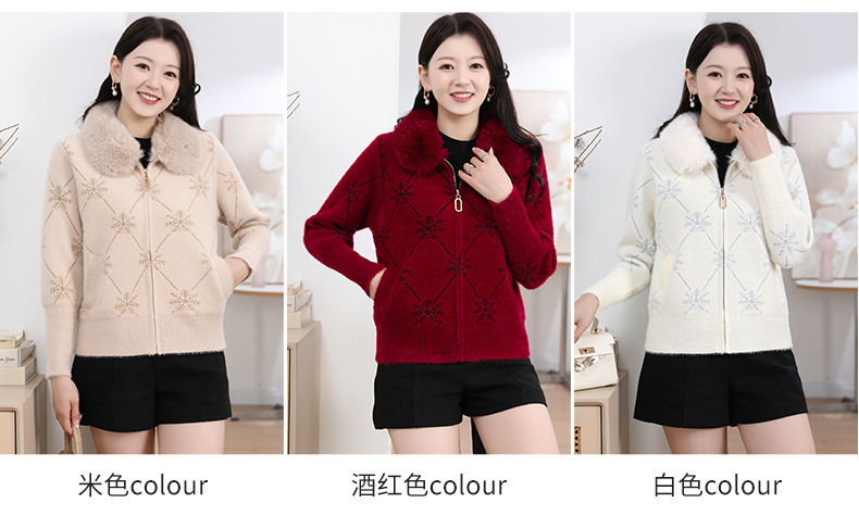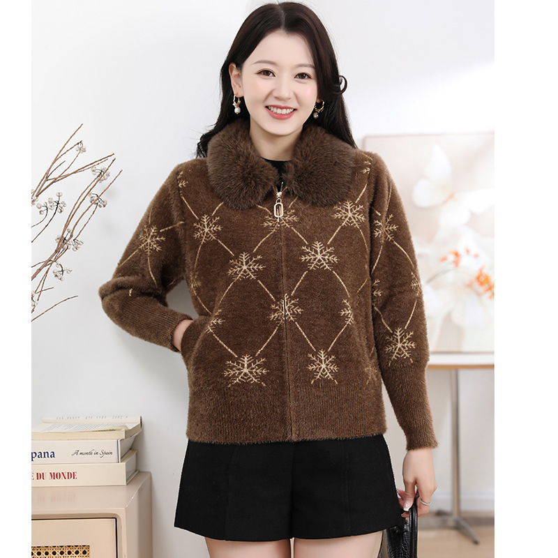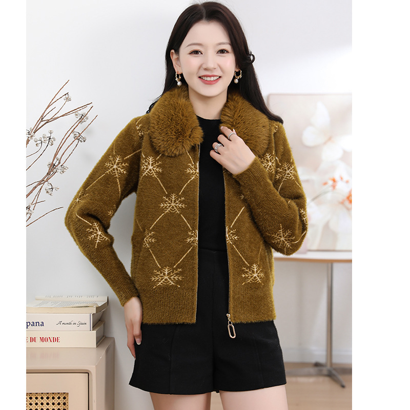 Внешняя торговля мамой в имитации норковой шерсти на молнии трикотажная куртка с большим меховым воротником
