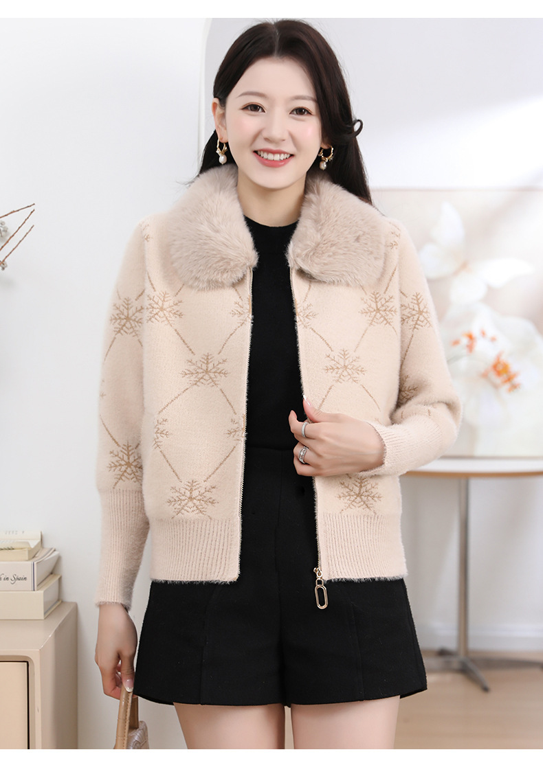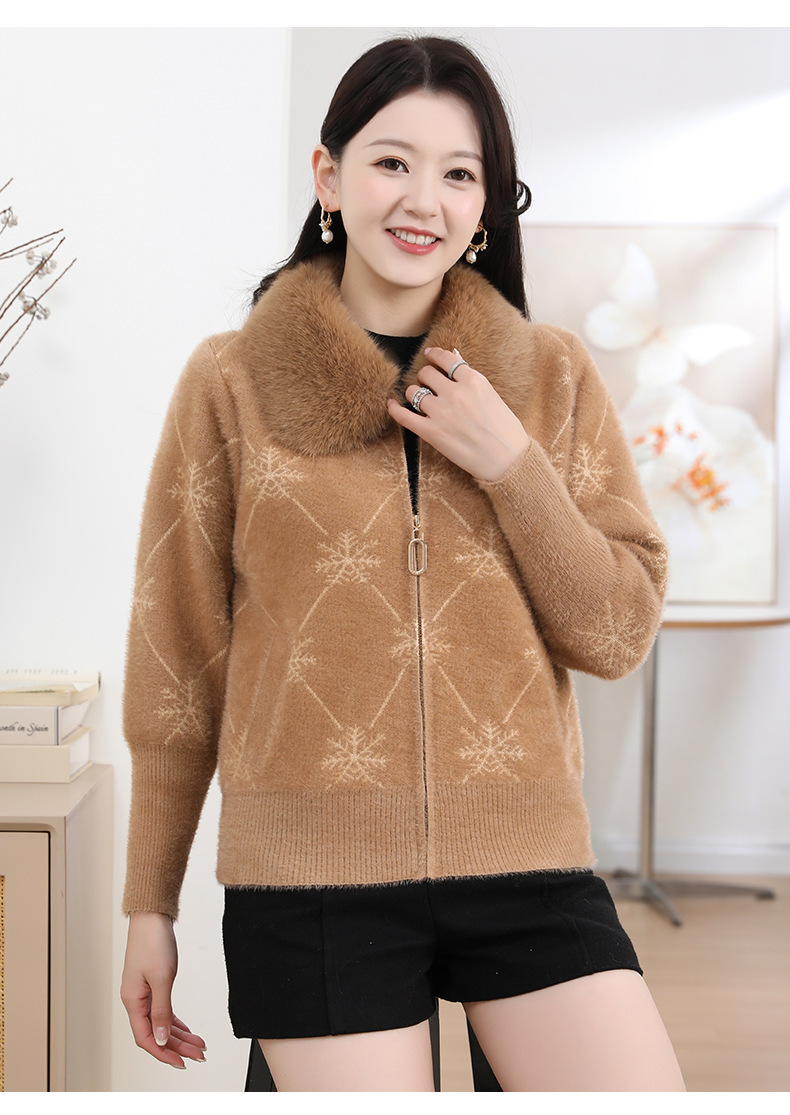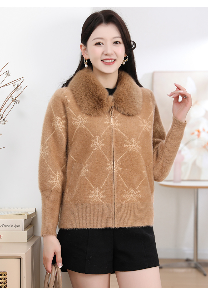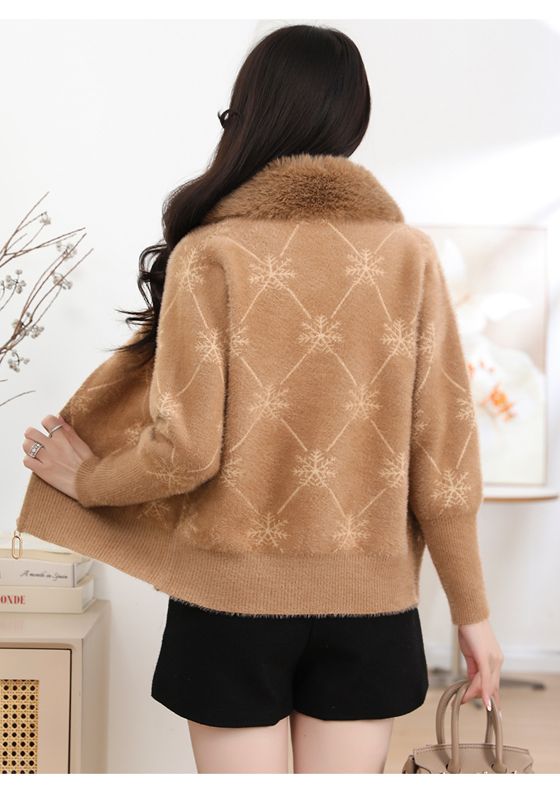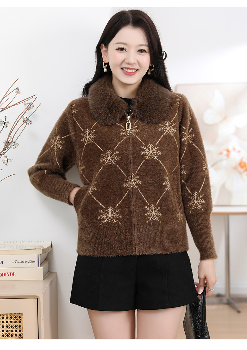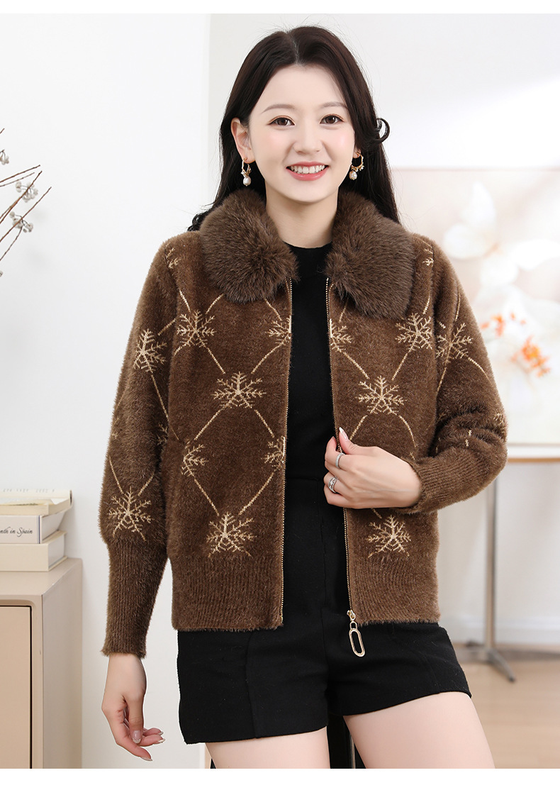 Внешняя торговля мамой в имитации норковой шерсти на молнии трикотажная куртка с большим меховым воротником