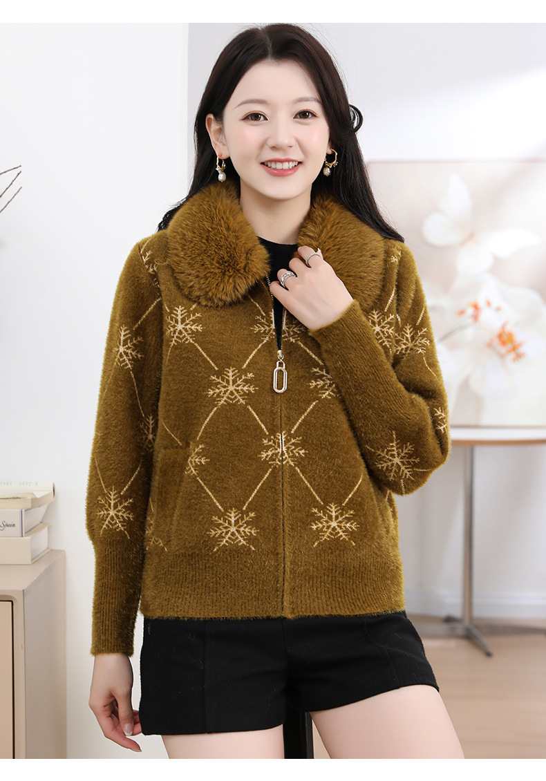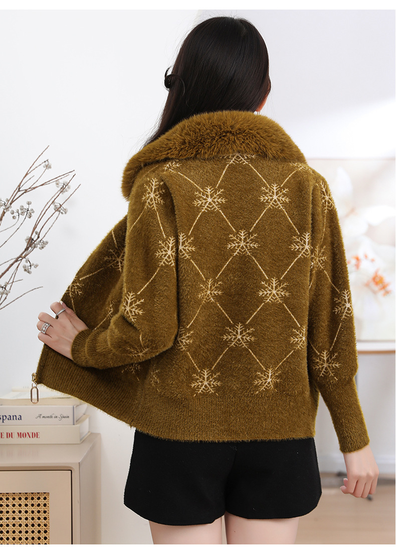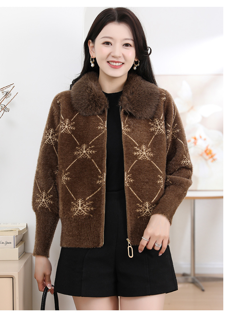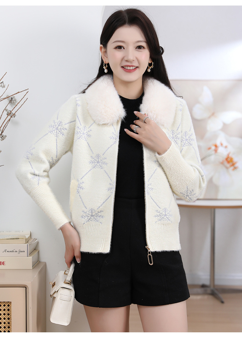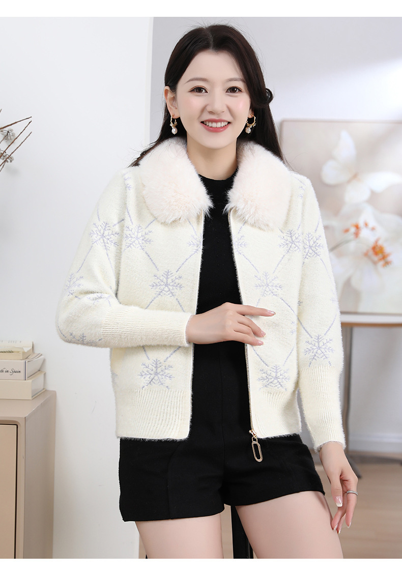 Внешняя торговля мамой в имитации норковой шерсти на молнии трикотажная куртка с большим меховым воротником