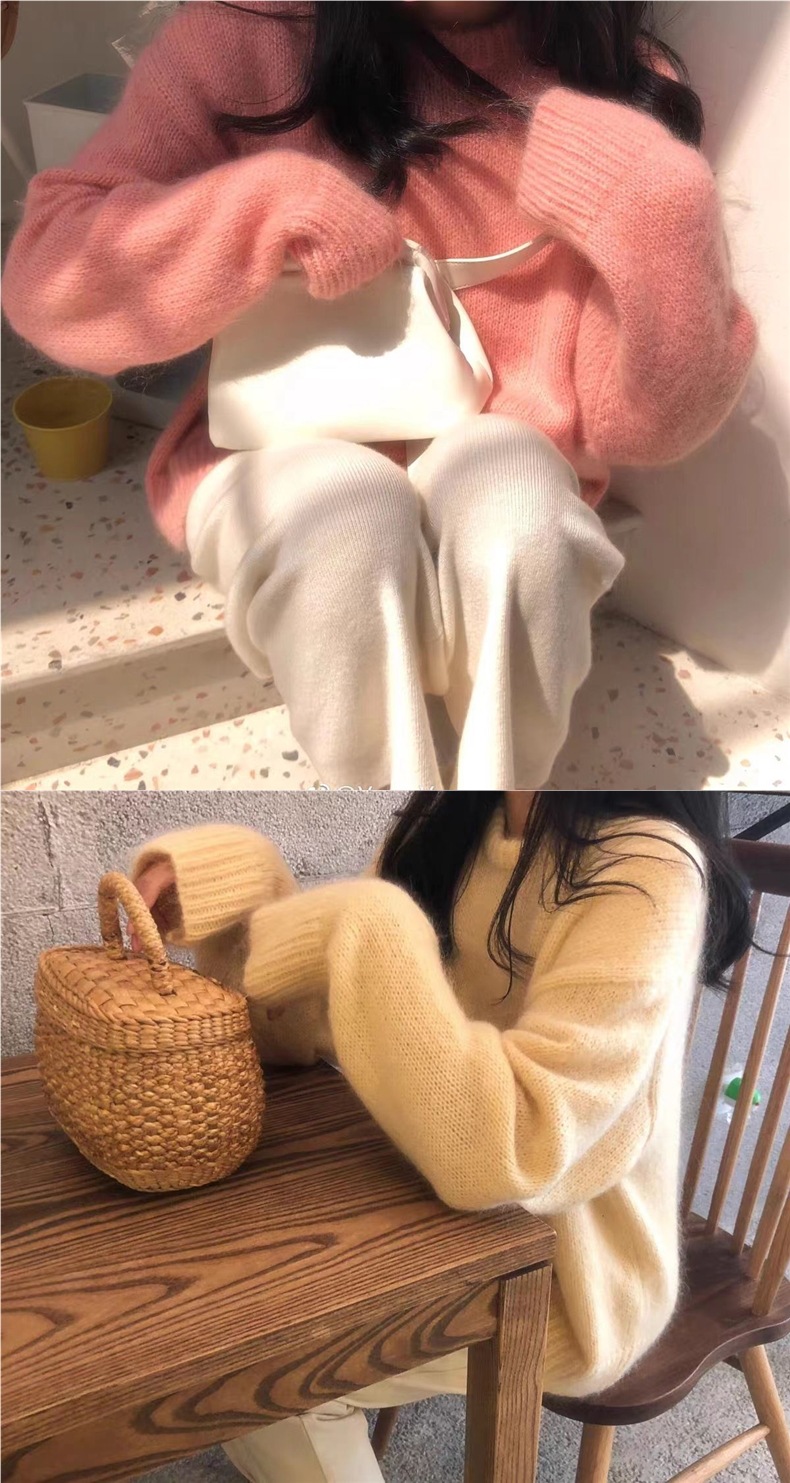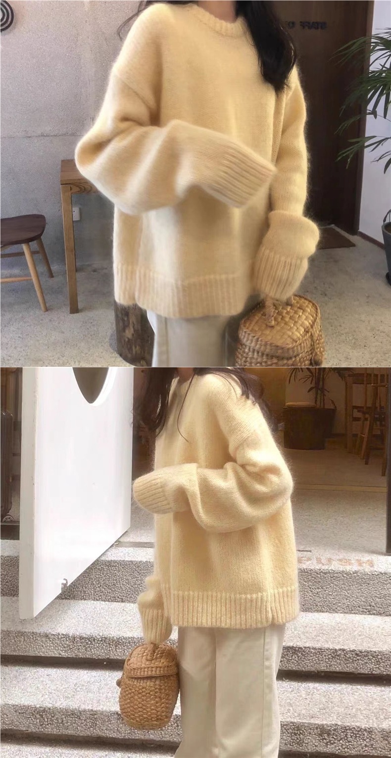 Супер сказочный молочный желтый пуловер свитер женский свободный ленивый ветер круглый воротник дикий сладкий осенний и зимний новый внешний вид толстый