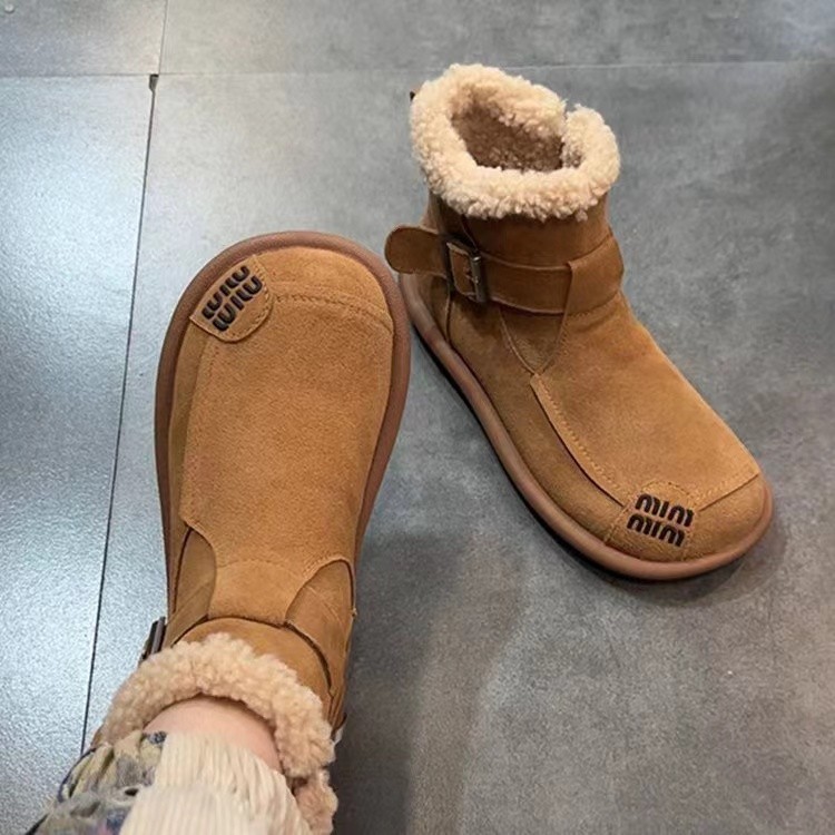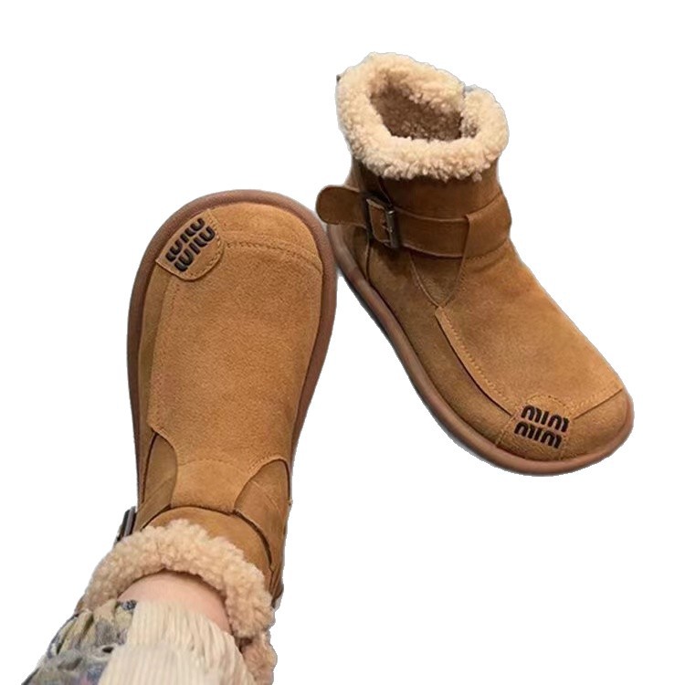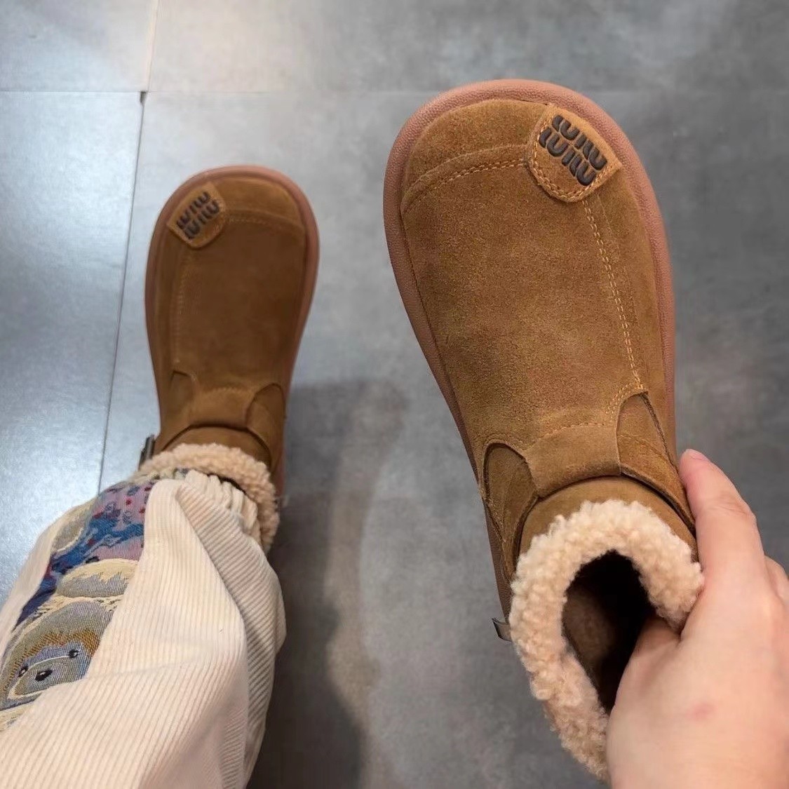 Корейская версия бархатных теплых снежных сапог низкого каблука водонепроницаемая хлопчатобумажная обувь женские сапоги 2024 осень-зима новый дикий тренд сапоги