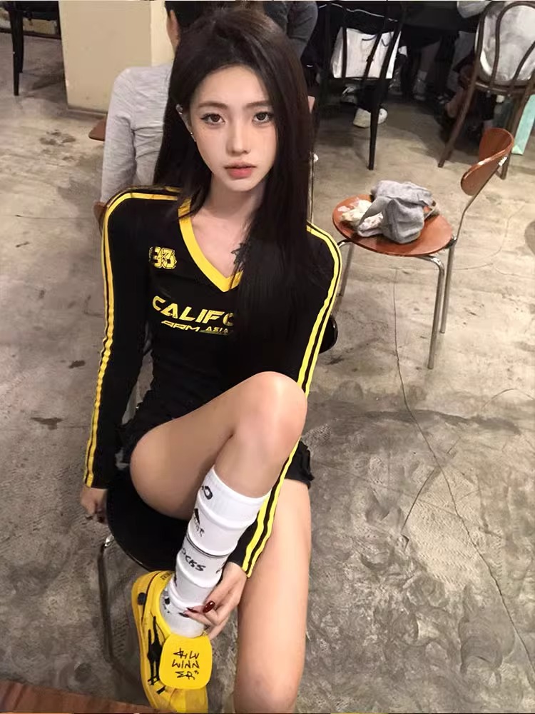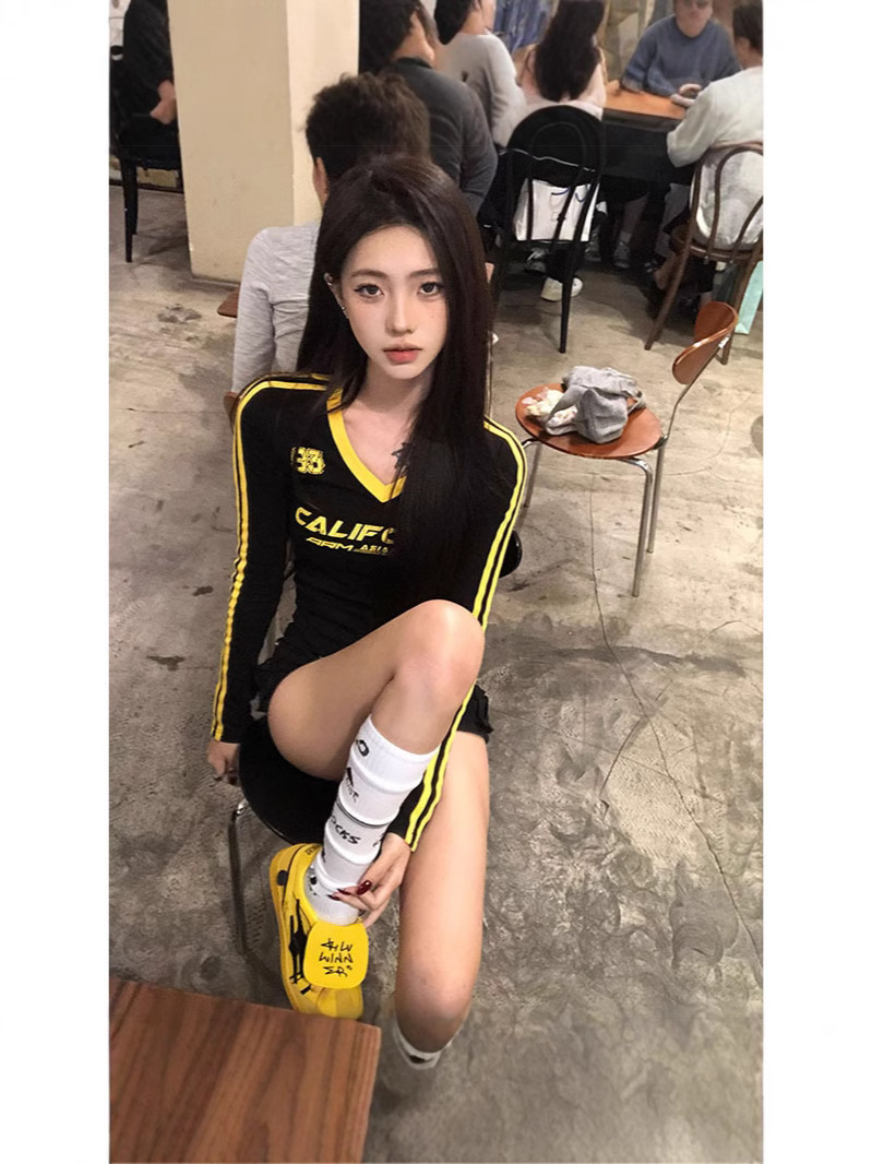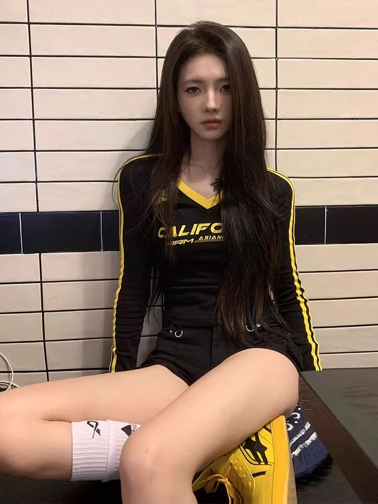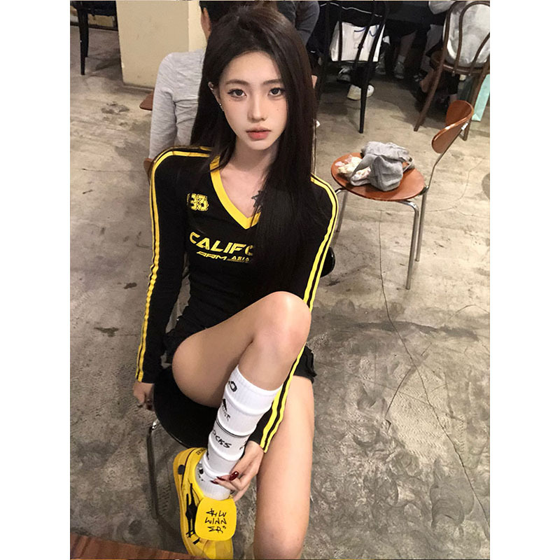 Американская высокая улица с V-образным вырезом с длинным рукавом футболка женская осень-зима