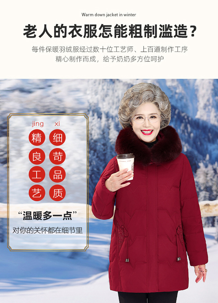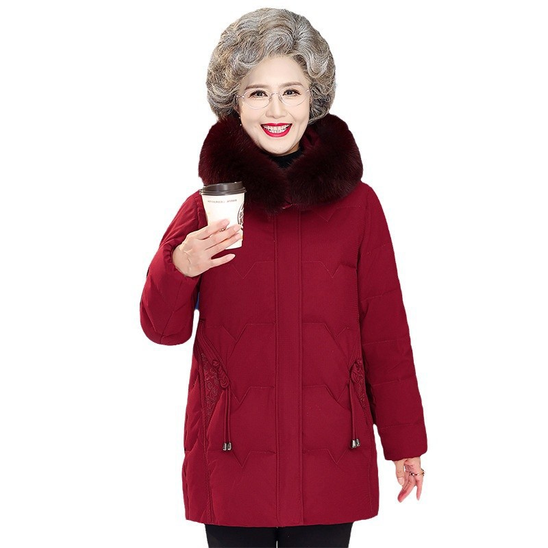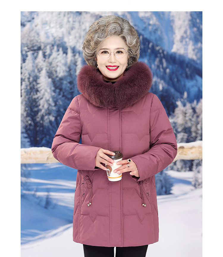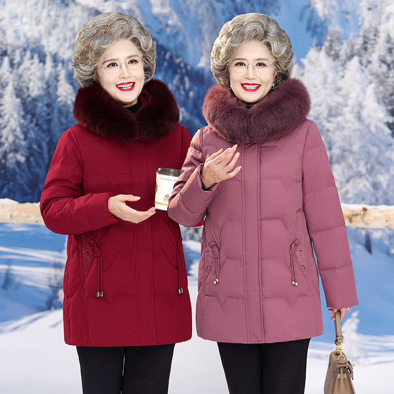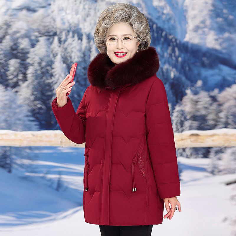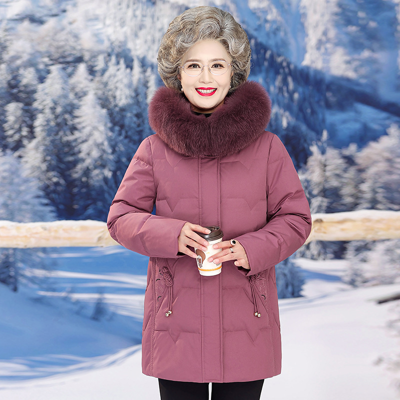 Белый утиный пуховик женский средний и длинный модный средний и пожилой мамочки с лисой шерстяной воротник утолщенные теплые женские пальто зимой