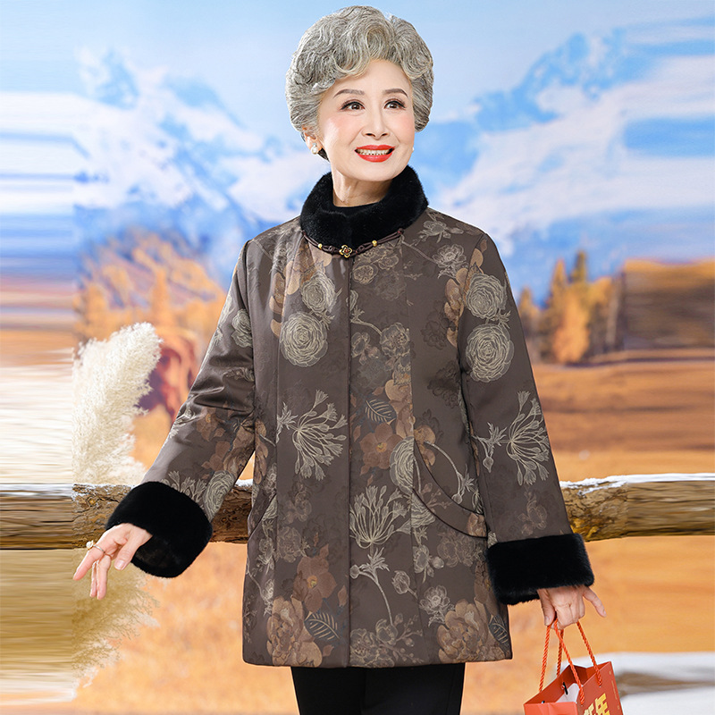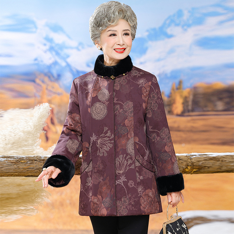 Зимняя одежда для пожилых бабушки национальный стиль пуховик куртка темперамент для пожилых людей пальто мама зимняя толстая хлопковая куртка