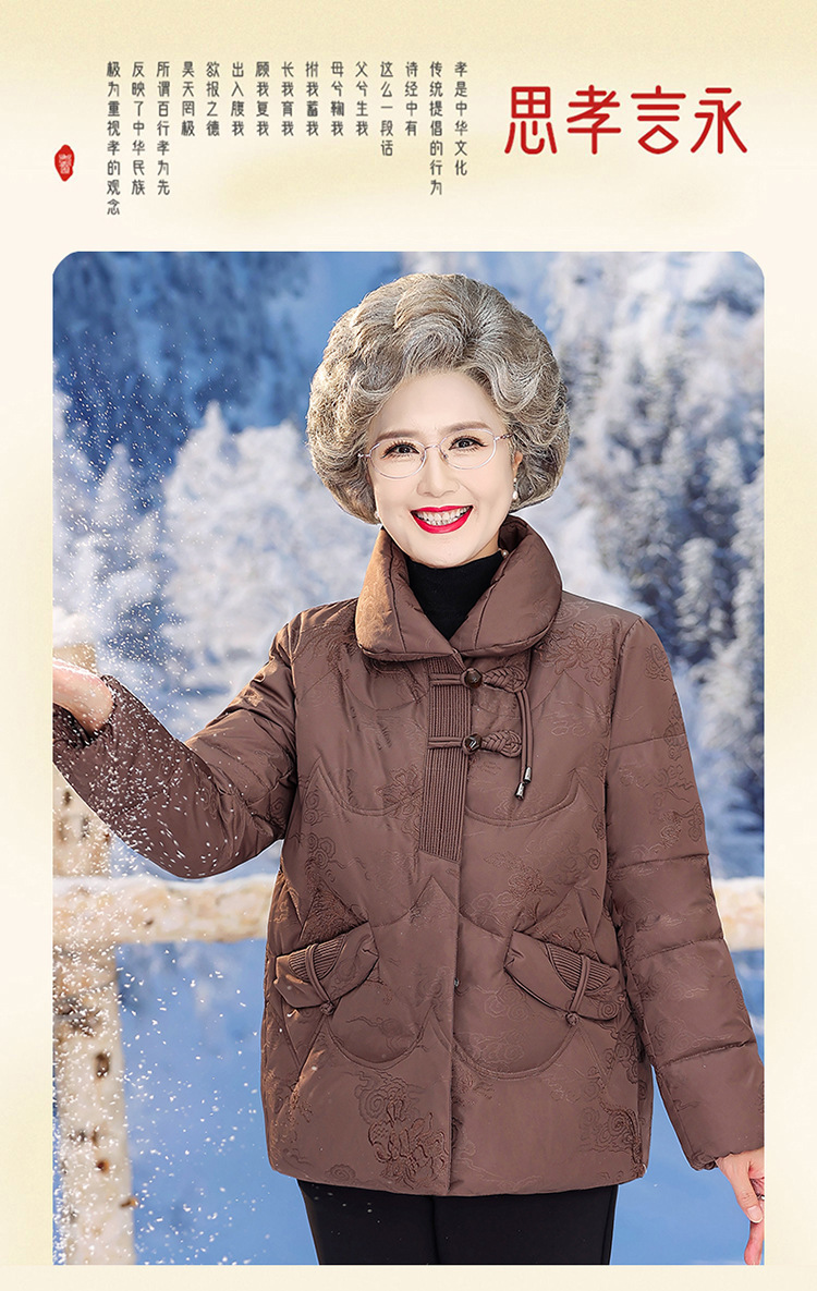 Бабушка зимний пуховик куртка Старушка Тан вышитая хлопчатобумажная одежда 70 лет пожилая мама толстая одежда женщина