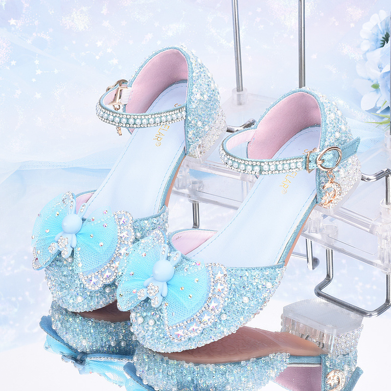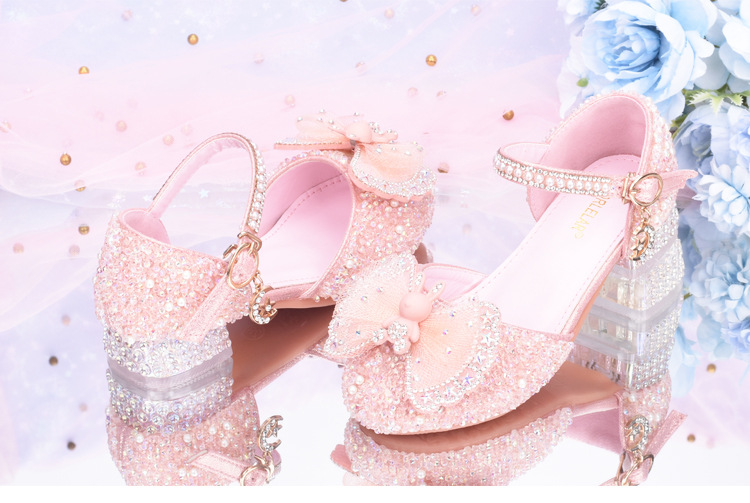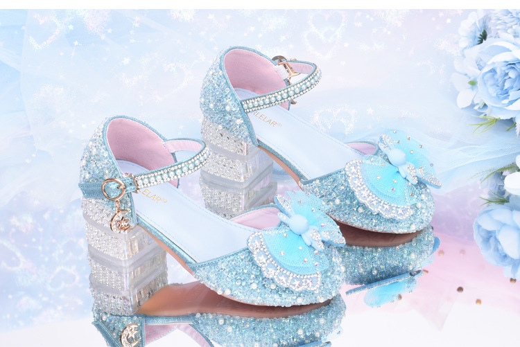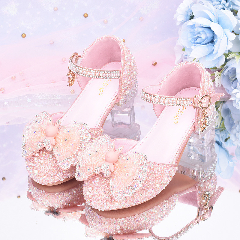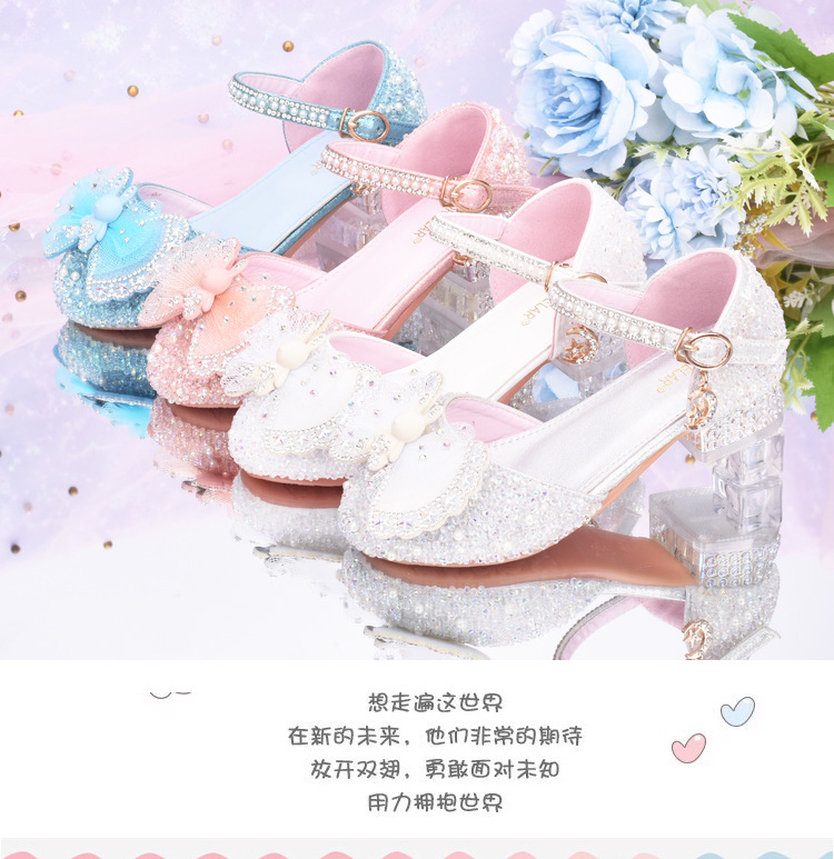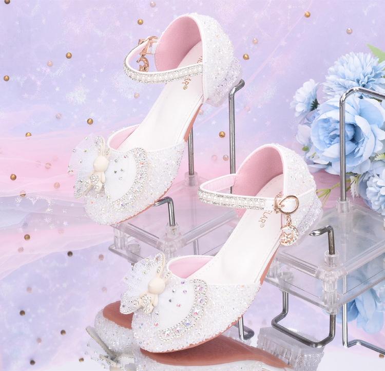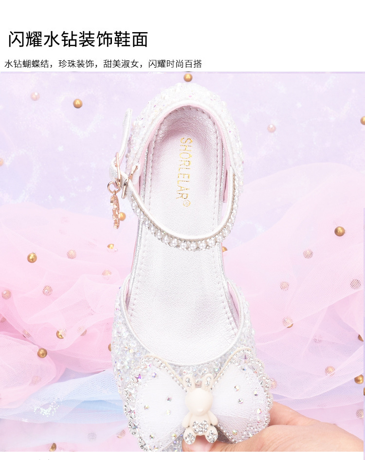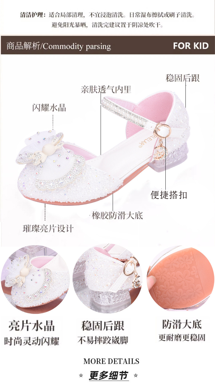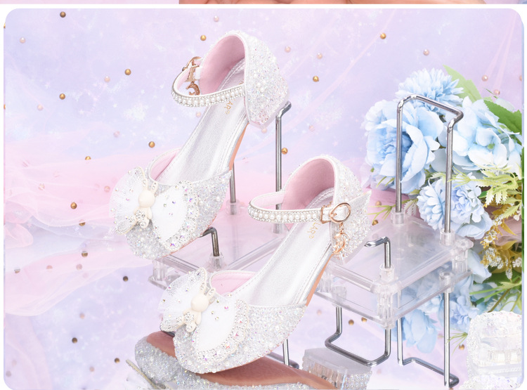 Серебряные детские туфли на высоком каблуке белые кожаные туфли для девочек кроссовки принцессы весной и летом на низком каблуке хрустальные туфли для девочек