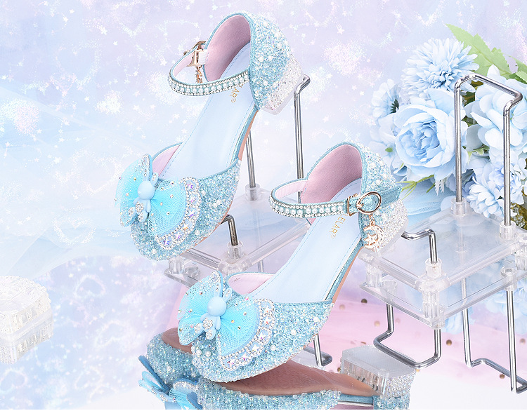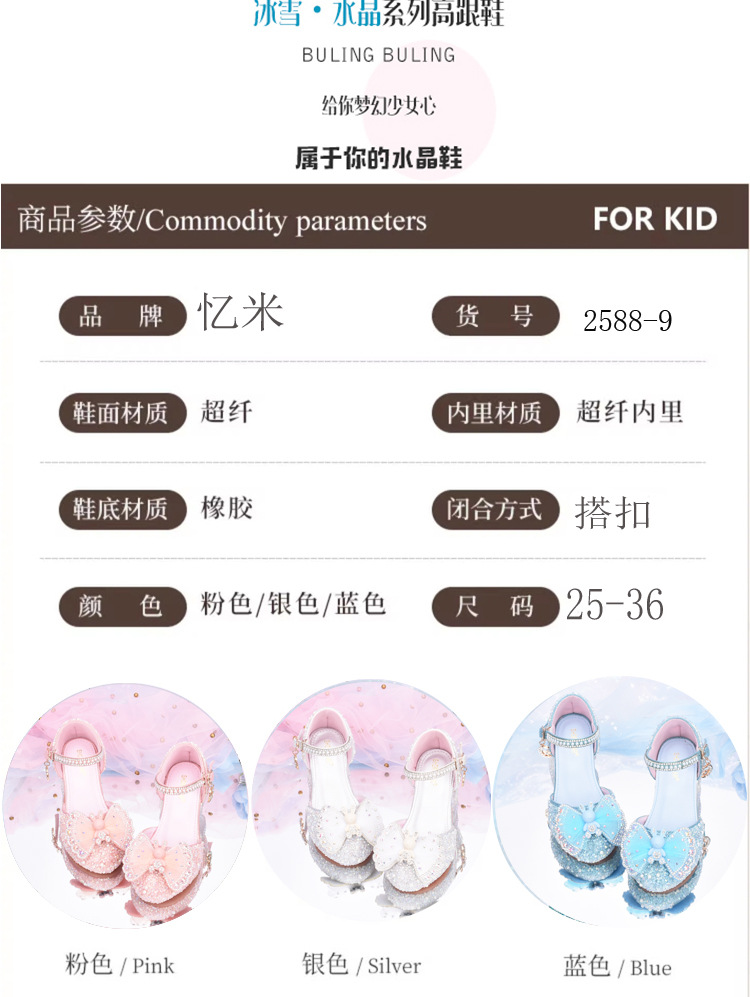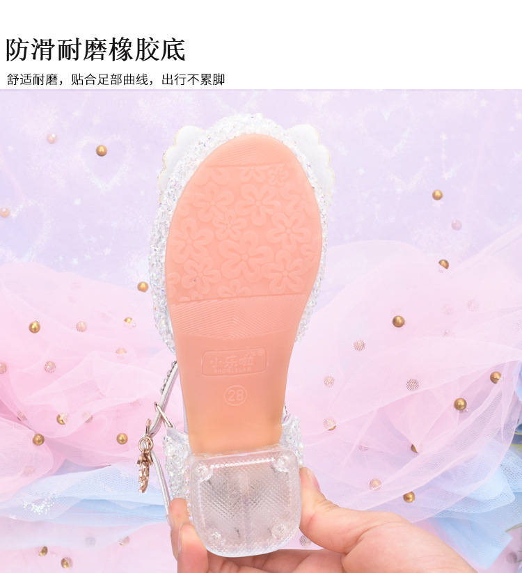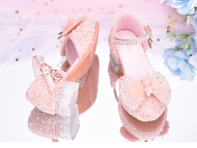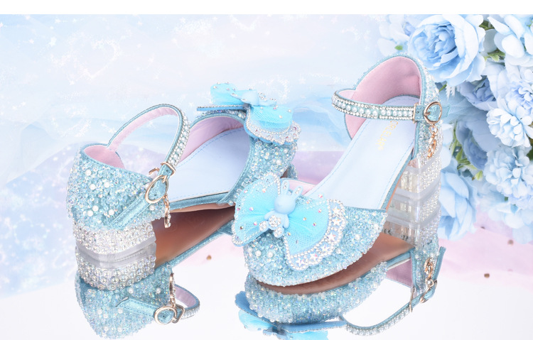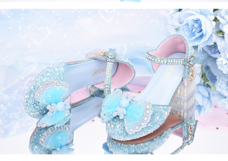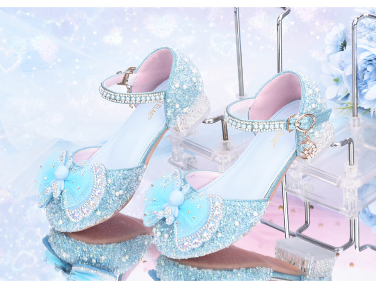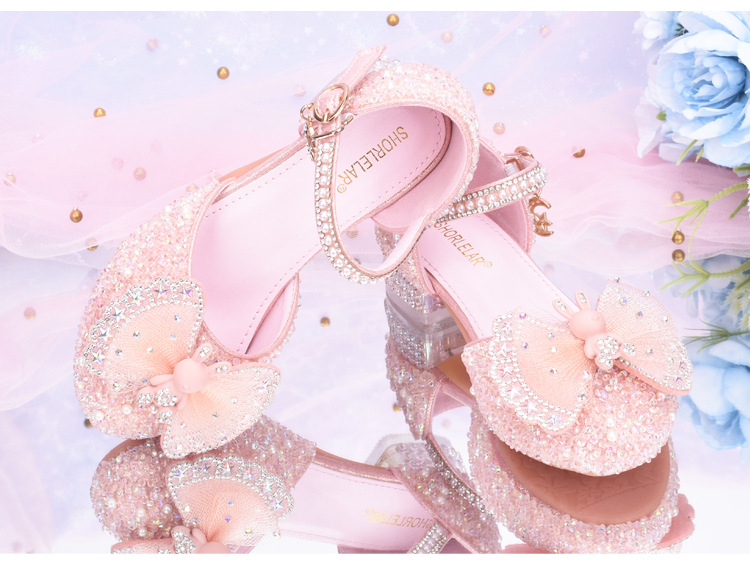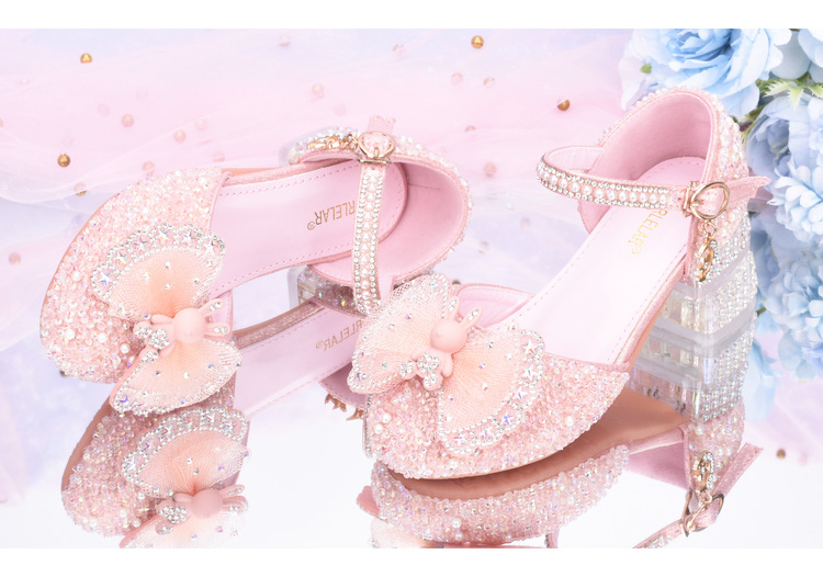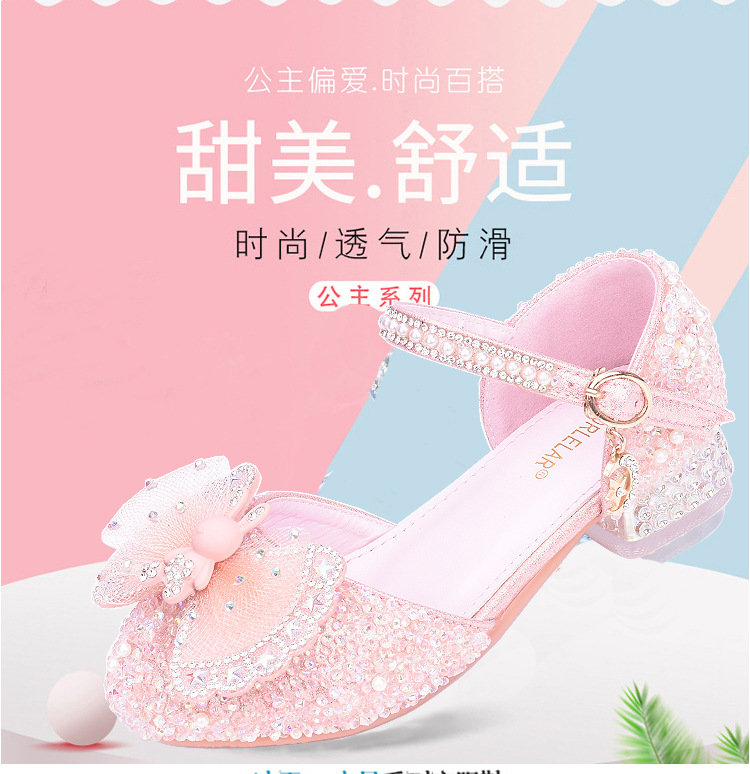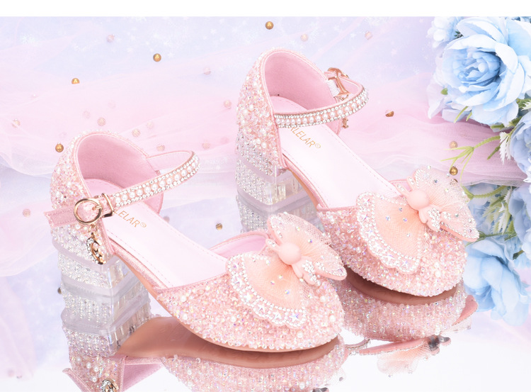 Серебряные детские туфли на высоком каблуке белые кожаные туфли для девочек кроссовки принцессы весной и летом на низком каблуке хрустальные туфли для девочек