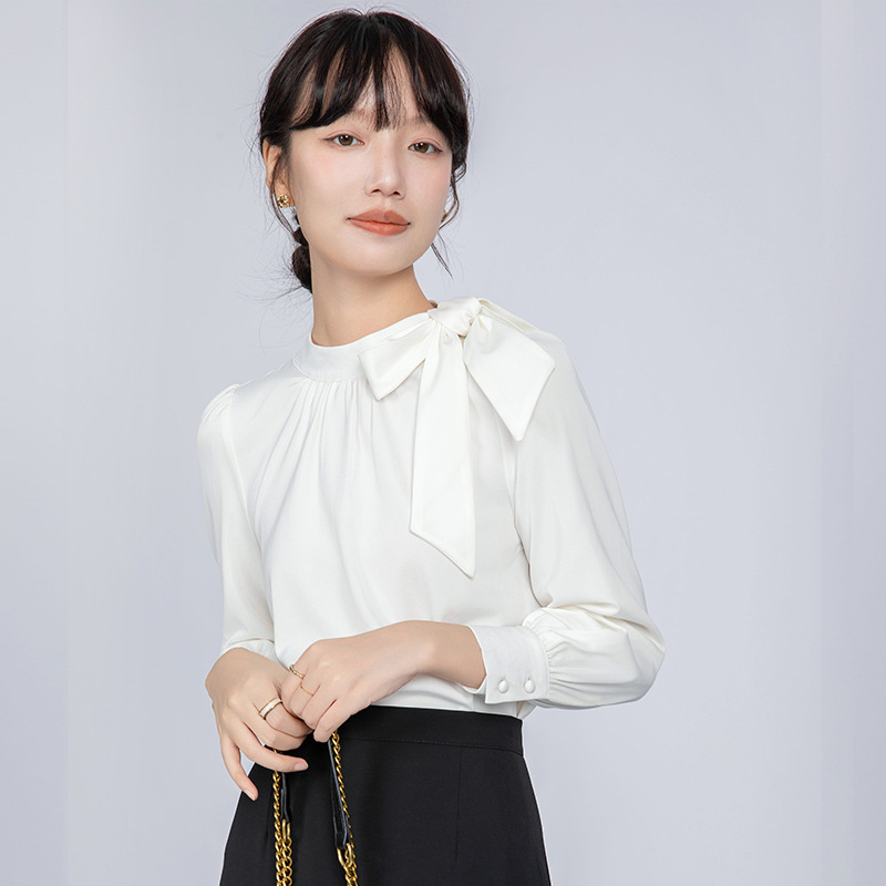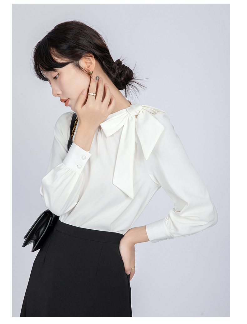 Реальный выстрел с бантом, белая рубашка, женская осенняя новая поездка на профессиональное интервью