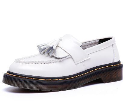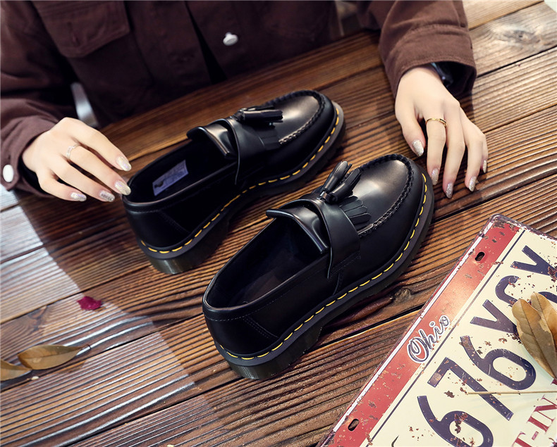 Обувь Lefu из кисточки Женская кожаная туфля с низким баном Женская мода в британском стиле Студенческая круглая голова повседневная обувь большого размера