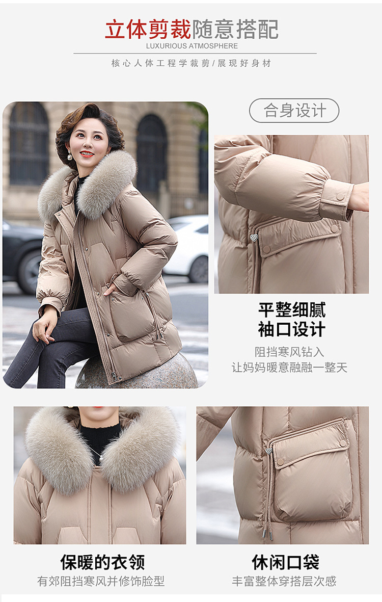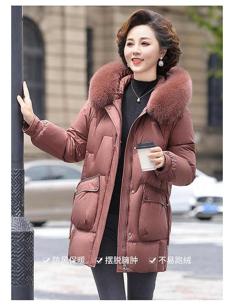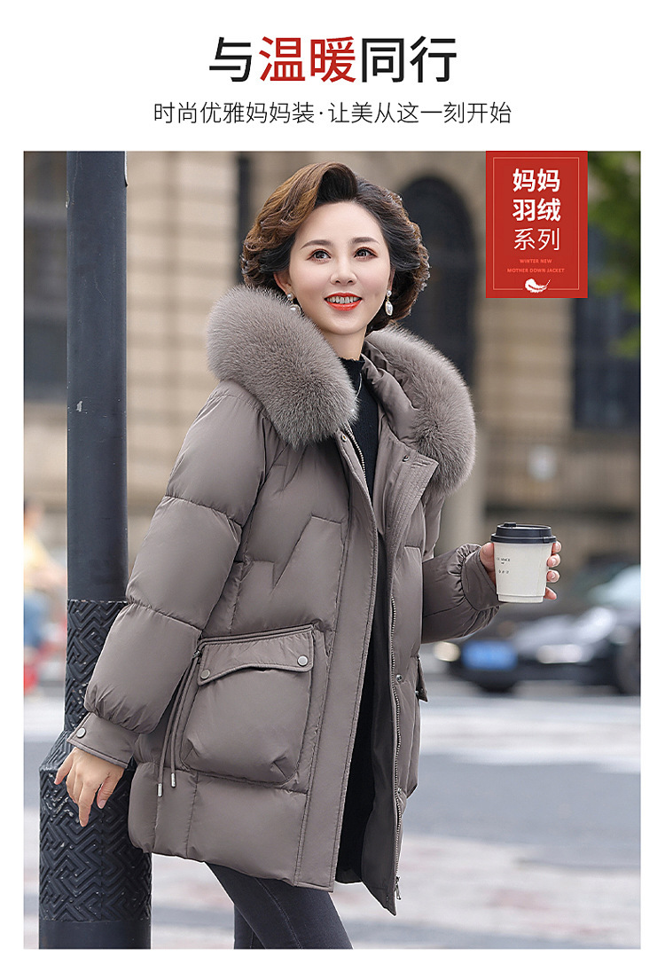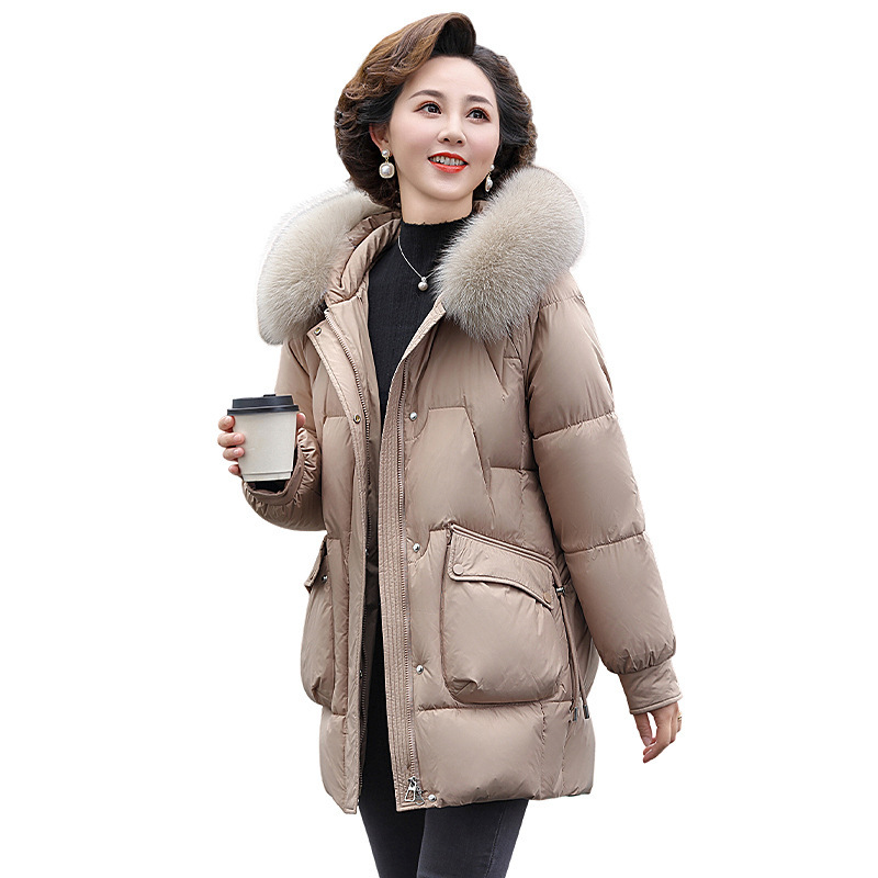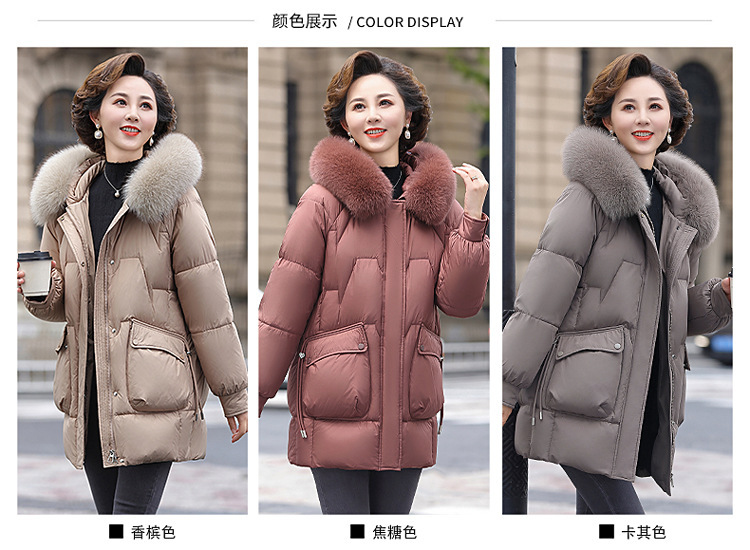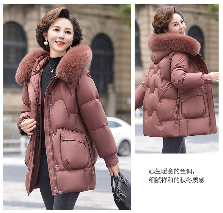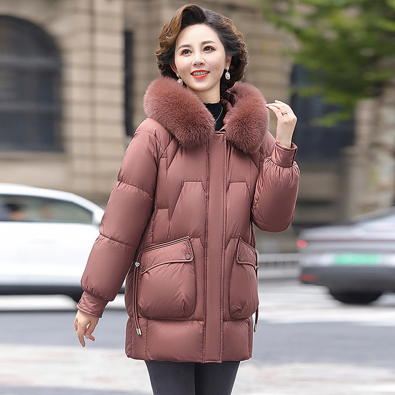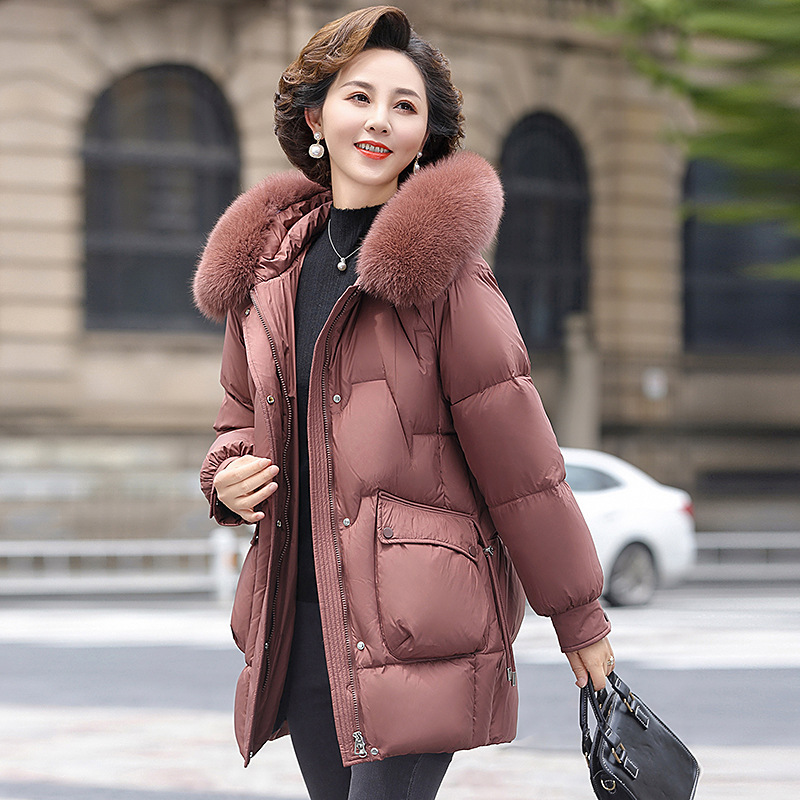 Среднедлинная зимняя пуховик женский 2024 новый стиль мама зимняя толстая куртка с капюшоном для пожилых людей