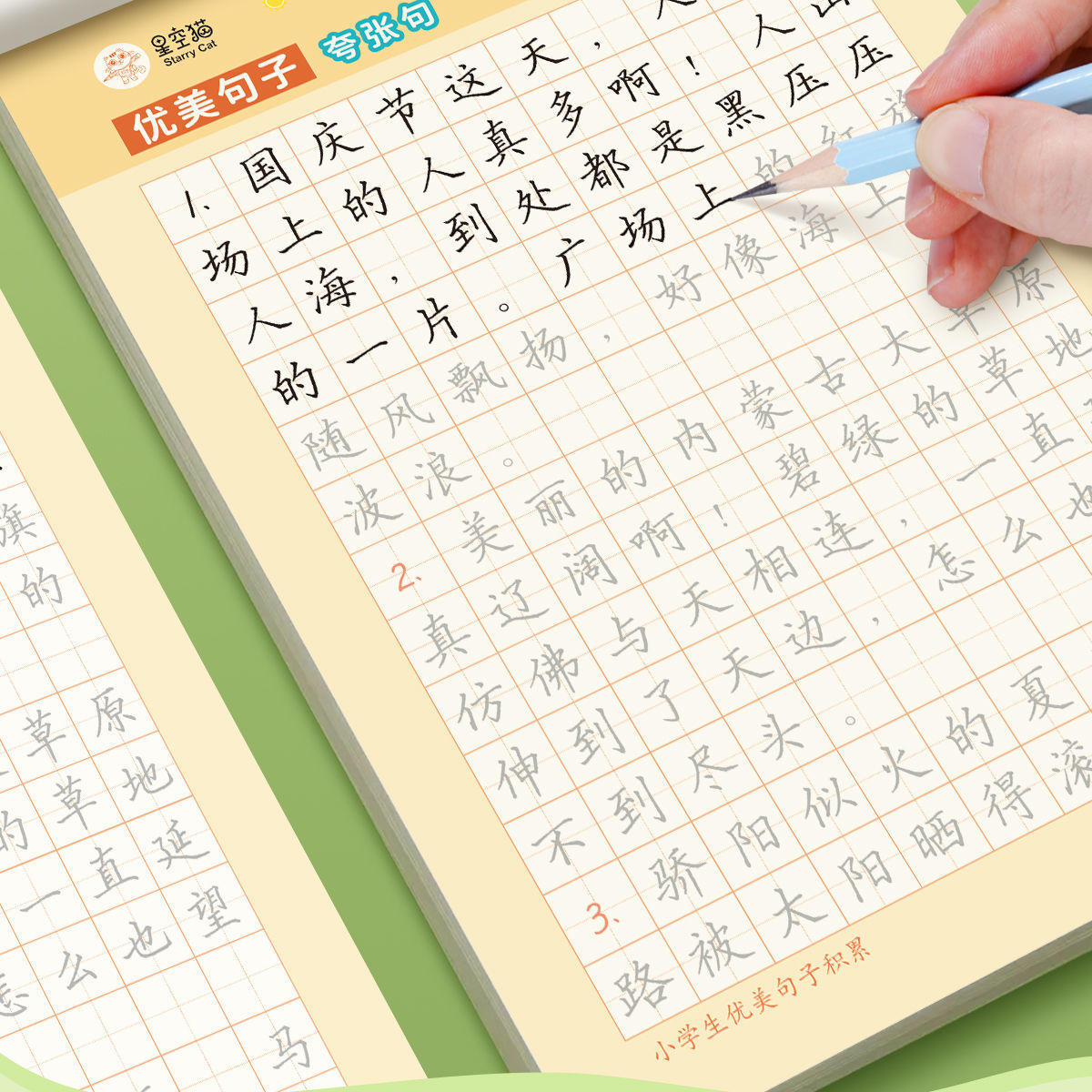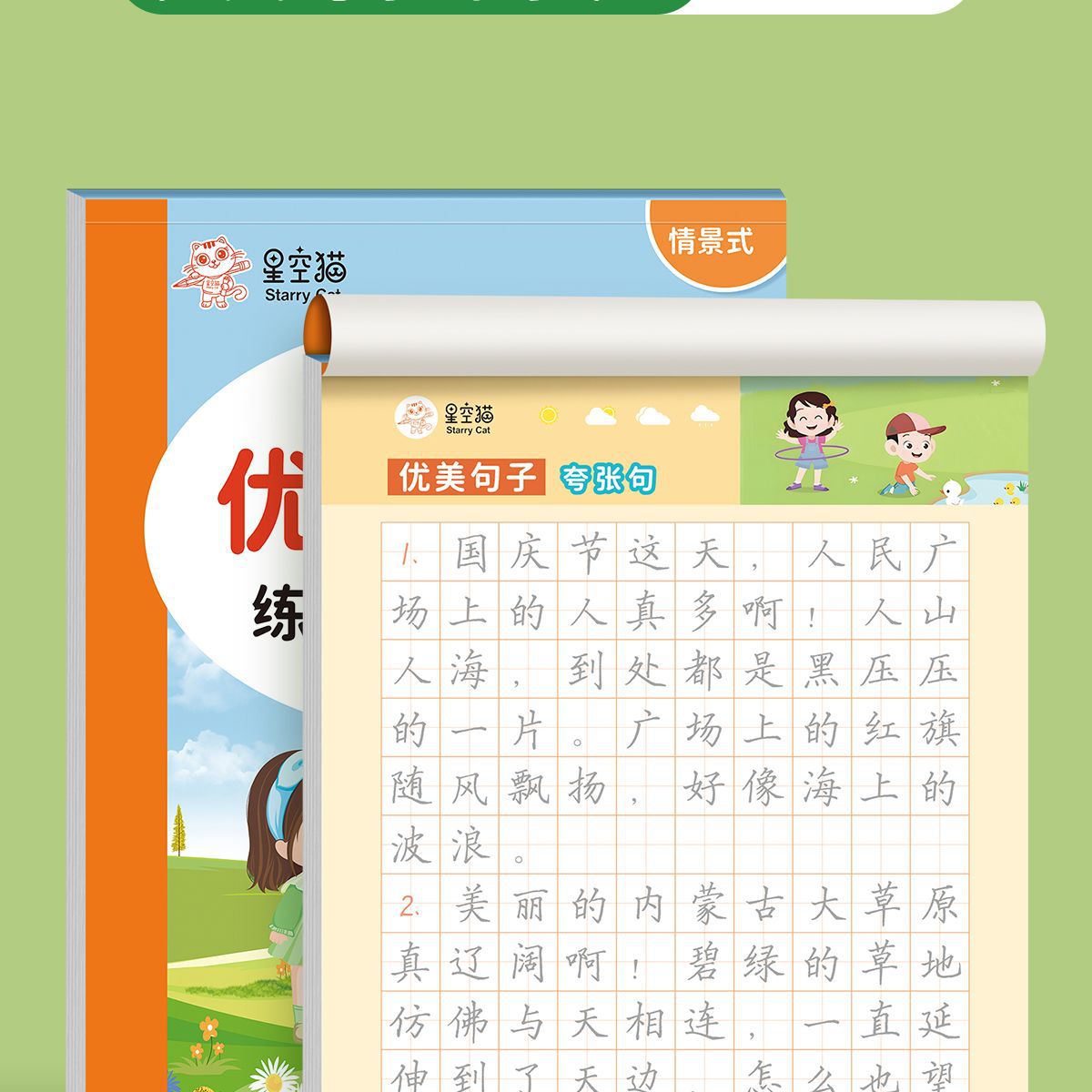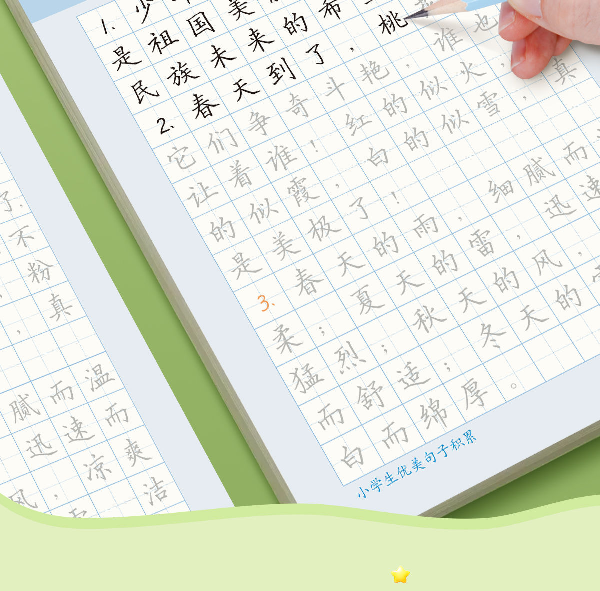 Красивые предложения для учащихся начальной школы для практики каллиграфии с полным накоплением баллов, синхронизированные с материалами по китайской композиции для 2, 3, 4, 5 и 6 классов.