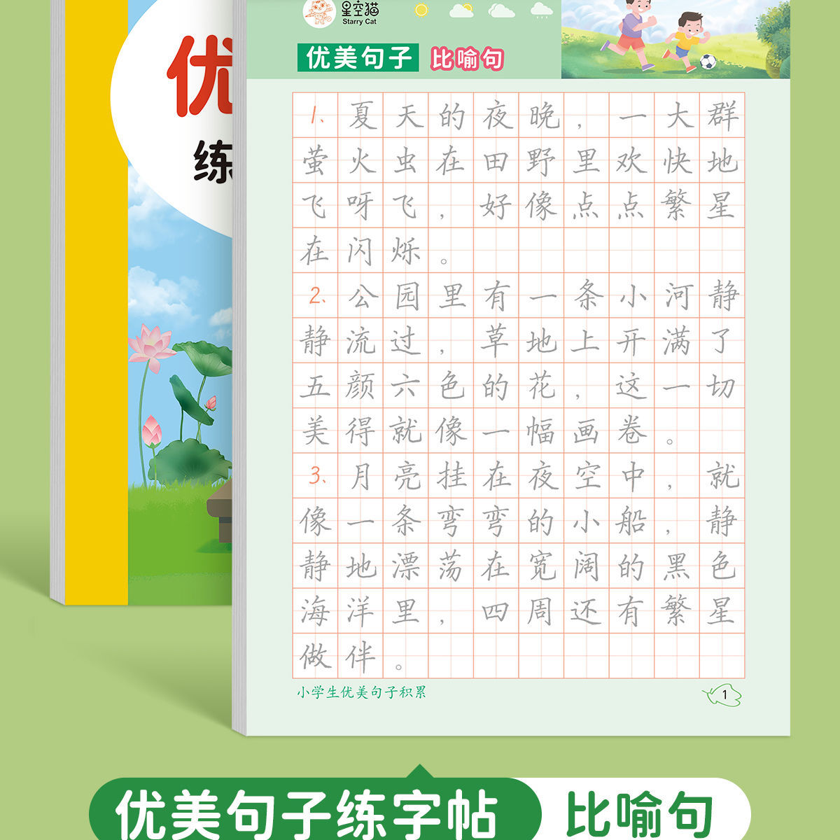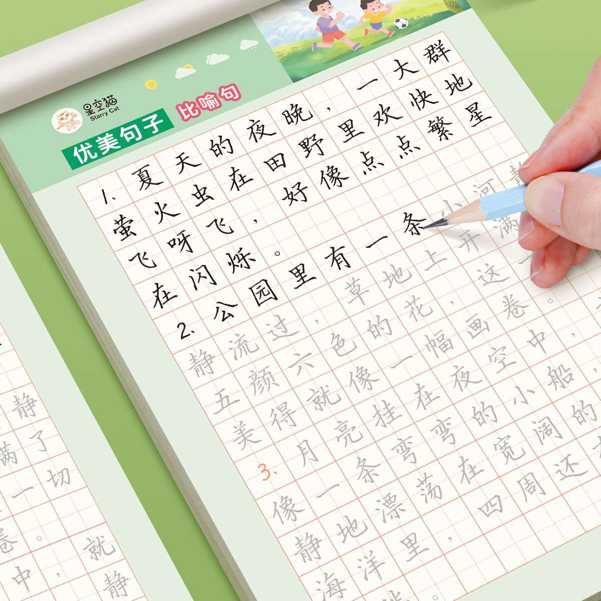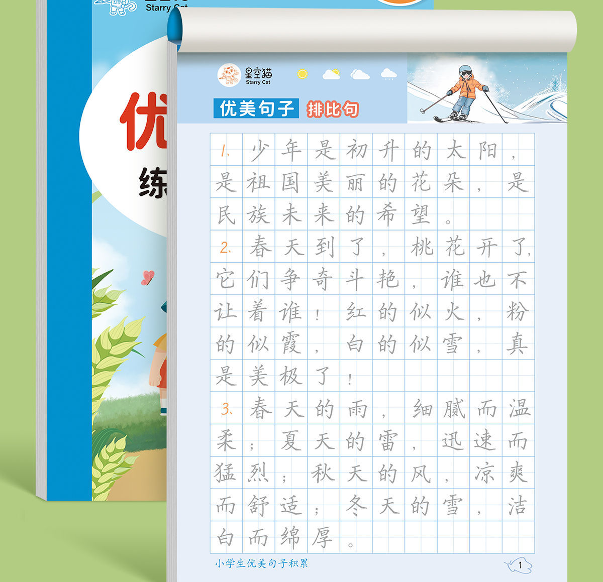 Красивые предложения для учащихся начальной школы для практики каллиграфии с полным накоплением баллов, синхронизированные с материалами по китайской композиции для 2, 3, 4, 5 и 6 классов.