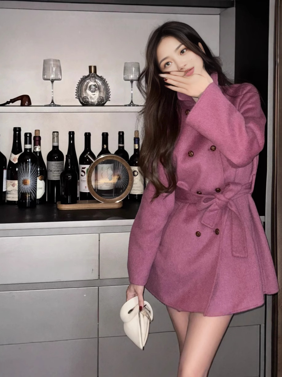 Двубортное шерстяное пальто в стиле ретро с воротником-стойкой и двусторонним кроем, модель «Парижская любовь», новинка осенне-зимнего сезона для женщин