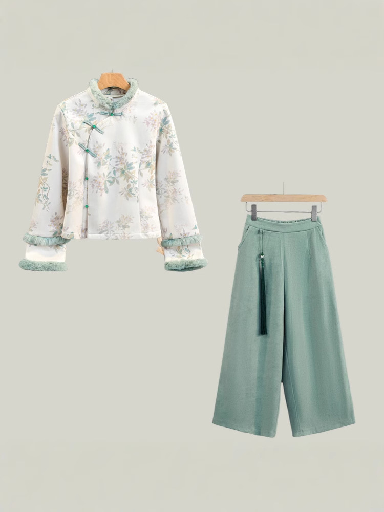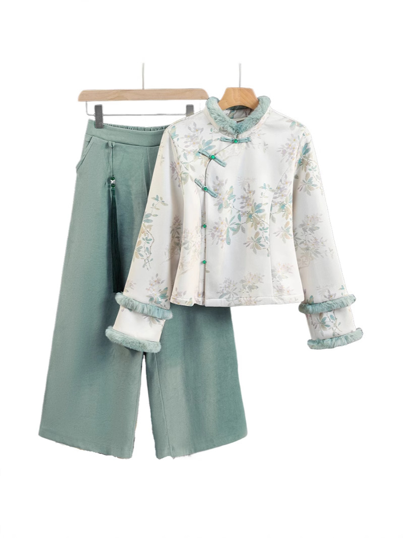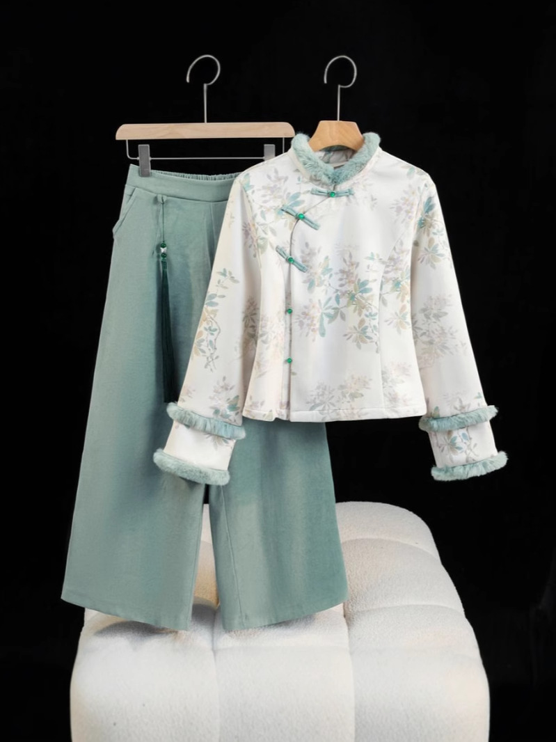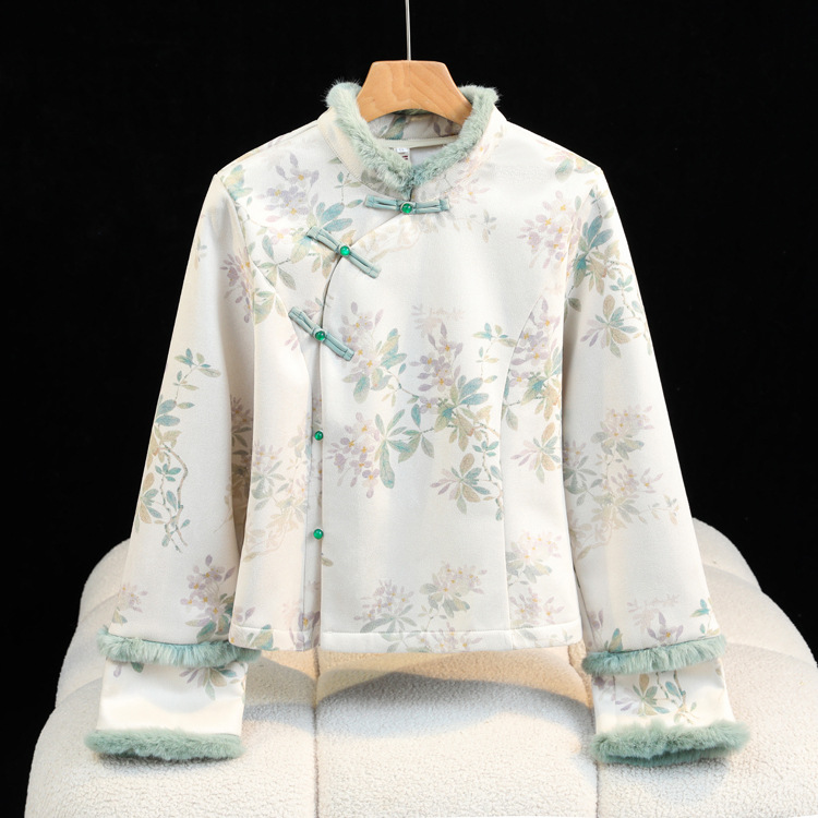 Зимний китайский ретро темперамент с плюшевым шерстяным воротником