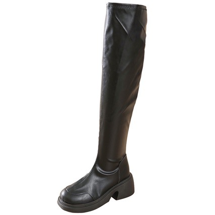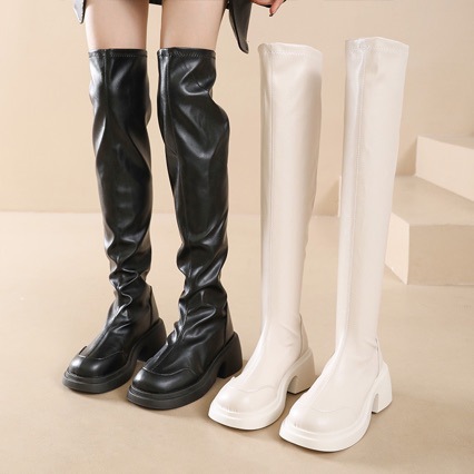 Маленькие худые и красивые белые женские сапоги с толстой подошной подошвы гигантские толстые каблуки водонепроницаемые сапоги эластичные сапоги