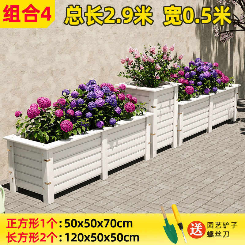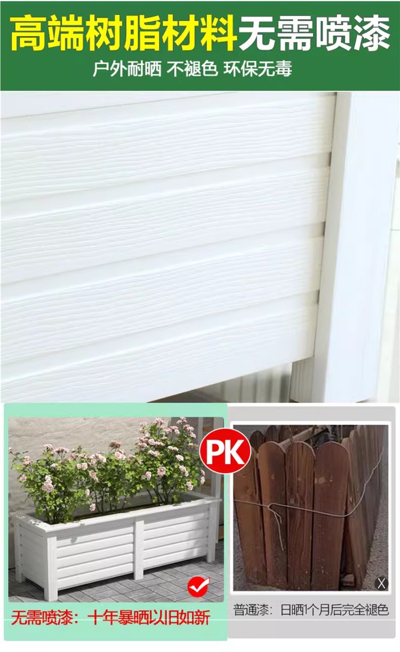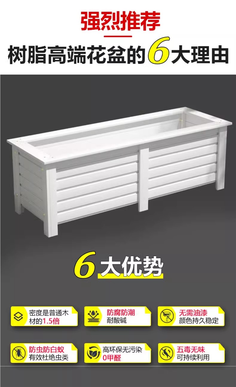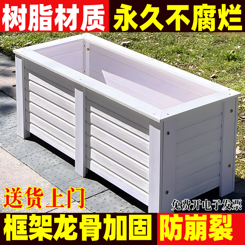 Смола цветочный горшок утолщенный наружный двор белый пластиковый деревянный посадочный ящик антикоррозийный деревянный цветочный ящик коммерческий забор
