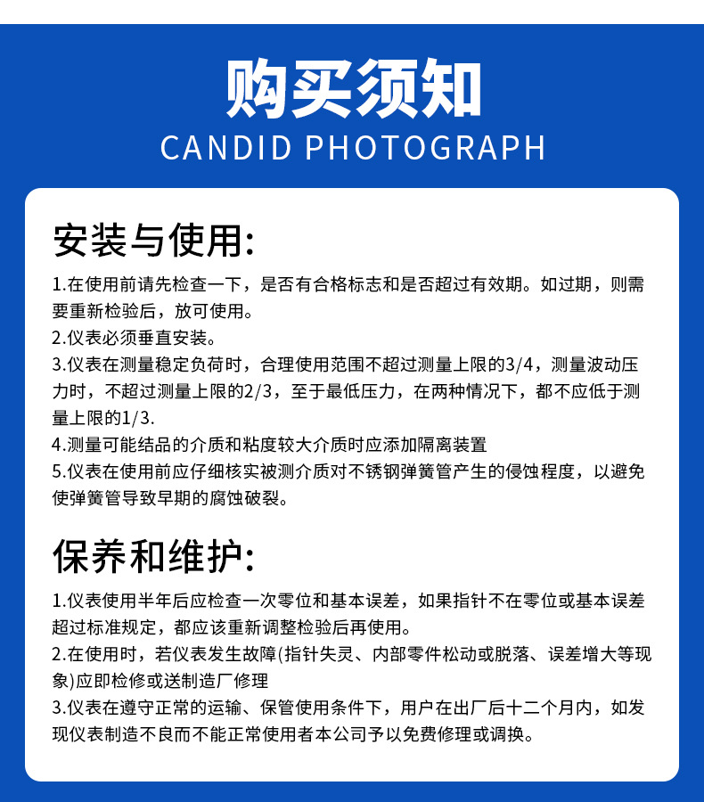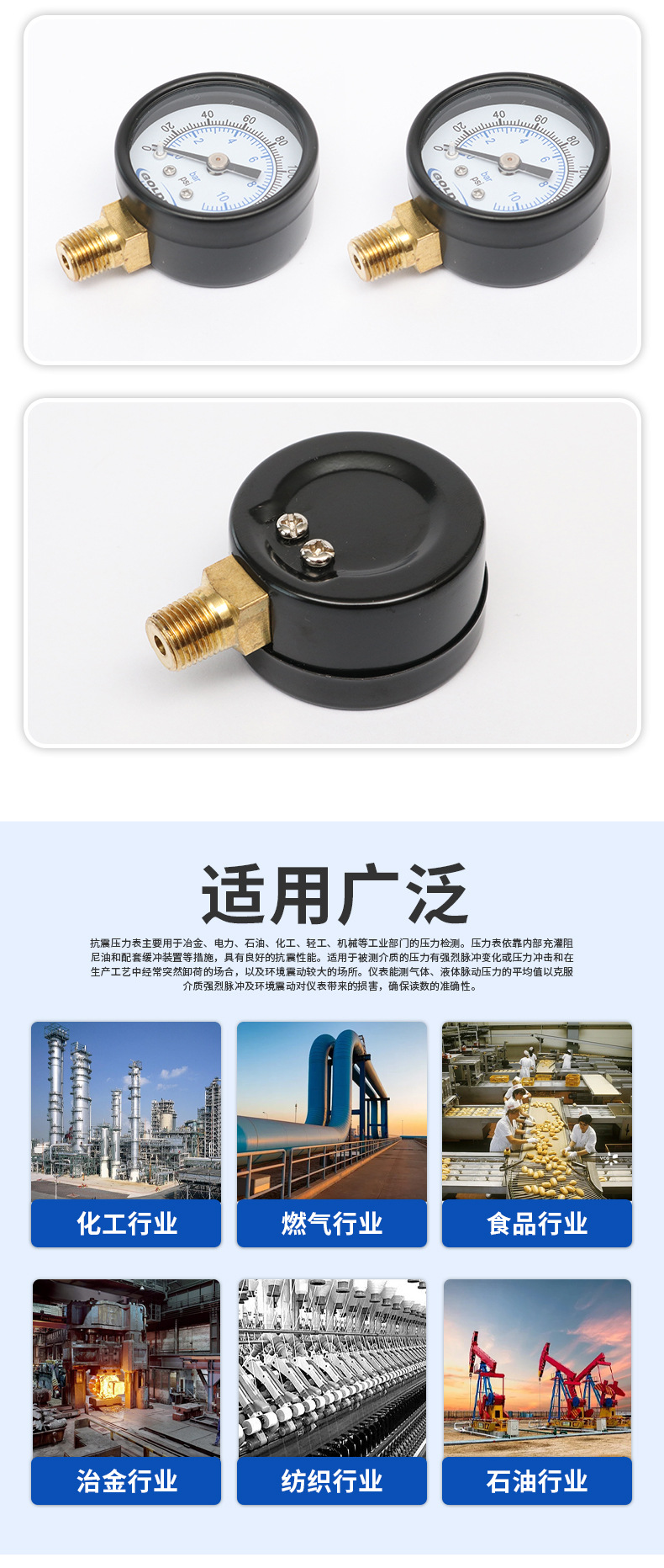 压力表为机械式测压仪表,使用非常简单,只需要将测压管口对准被测介