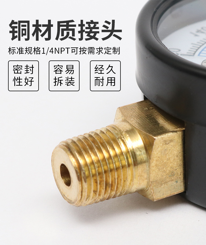 304不锈钢压力表阀门轴向连接真空表高精度空调机压表1/4NPT
