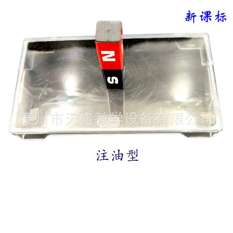 本仪器由铁粉盒和铁粉。铁粉盒用有机玻璃制造成,其内腔呈长方形片状,内装有适量铁粉。使铁粉可在盒内自由移动。 磁场和磁感线本身不是可见的,可利用铁粉在磁场中被磁化的性质来显示磁感线的形状,当将磁铁的磁极置于铁粉盒平面中央部分的下面时,由盒内铁粉在磁场的作用下被磁化,铁粉中每一粒铁屑均成为一个“小磁针”,由于它可在油中移动,便在磁力的作用下,按磁场特性而分布。“小磁针”相互首尾相接的规律性分布形象地显示了磁感线的形状及分布情况。 三、使用方法: 将演示器水平放置在桌面上,把磁铁放置在盒的下面。通过轻轻敲击盒子,让铁粉在盒内自由排列,来显示磁场的磁场线分布情况。(可以换用不同形状的磁铁来做演示) 四、保养与维修: 1、演示器的主要组成部分铁粉盒是用有机玻璃制成的,使用过程中应拿稳放牢,以防摔落,并切记与其它粗糙或坚硬物体相互摩擦磕碰。演示时不要将磁铁放在盒面上推来推去,以防止盒表面被划伤,影响演示效果。 2、演示器在铁粉盒密封处理,请勿触碰封口处。