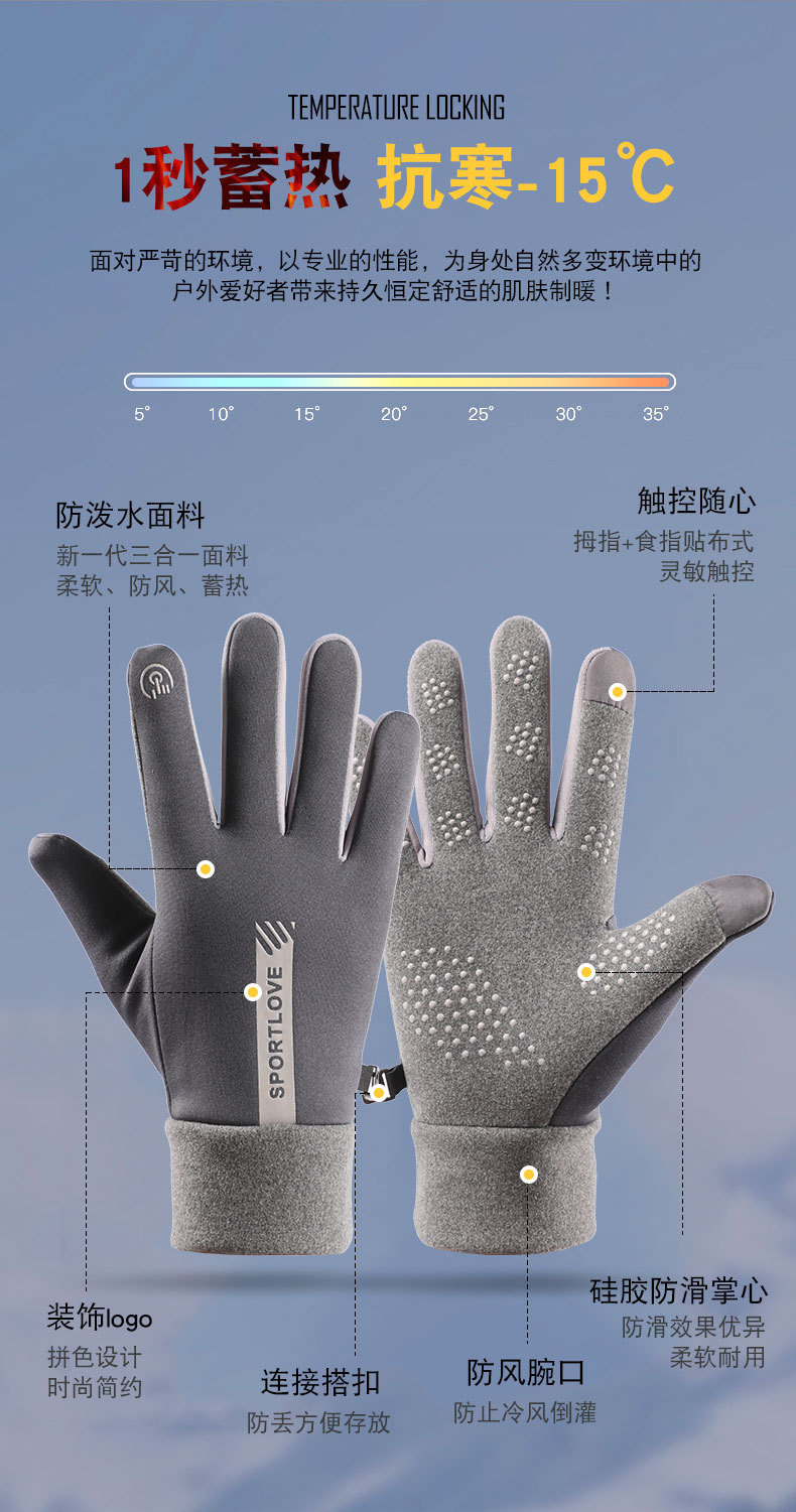 Теплые перчатки для мужчин и женщин плюс бархатные и ветрозащитные зимой