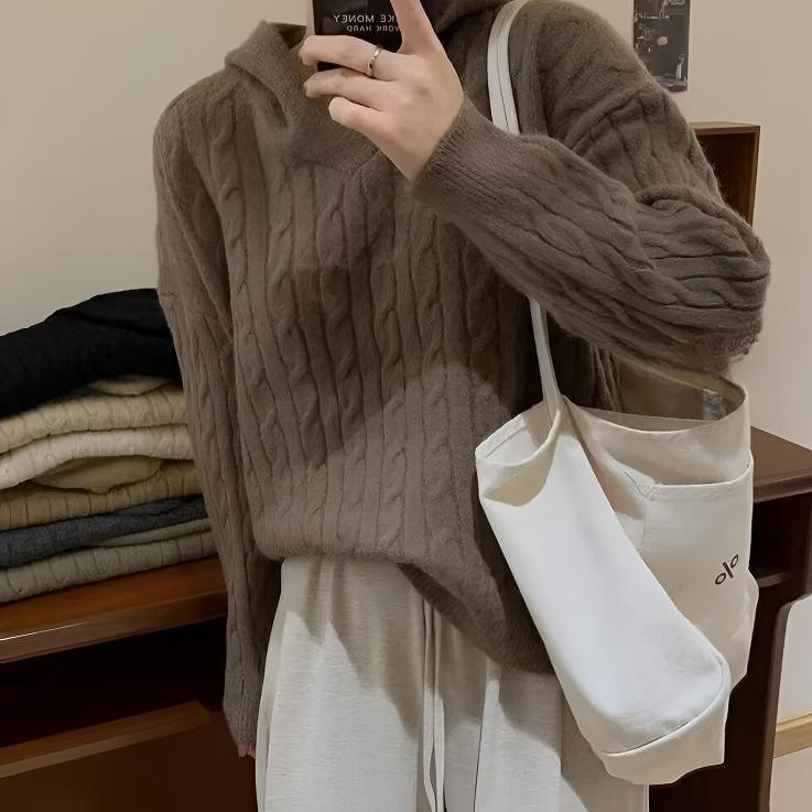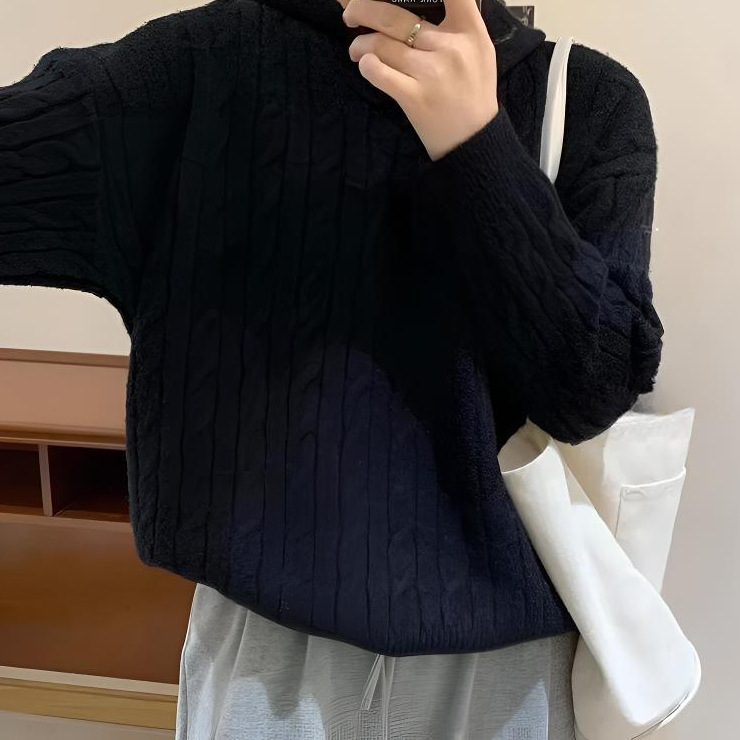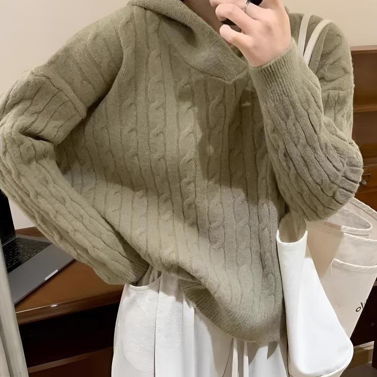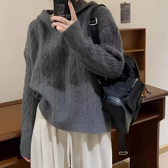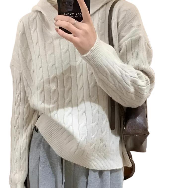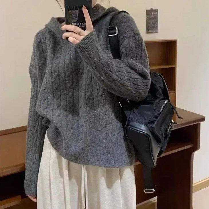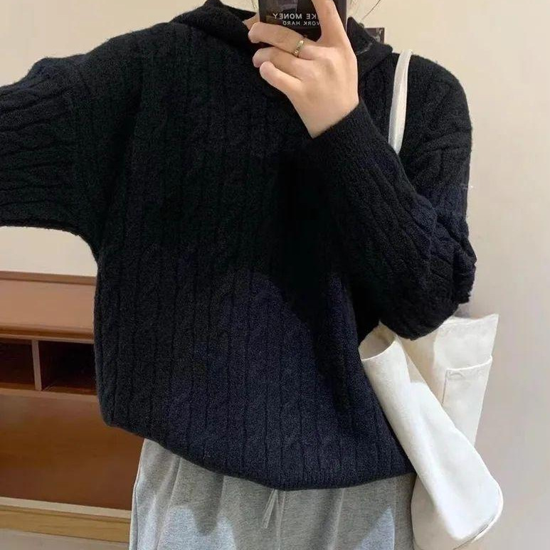 Модный корейский винтажный ретро свитер с капюшоном женский осень-зима новый свободный ленивый стиль колледжа дикий трикотажный топ