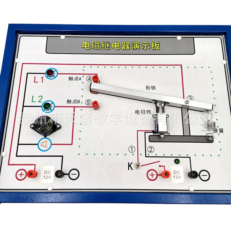 电磁继电器演示板是根据中学物理教材《电磁相互作用及应用》教学需要而设计的,使学生能够进一步的了解电磁继电器的工作原理和电磁间的相互作用。本仪器通俗易懂、操作方便、表达清晰、效果明显。