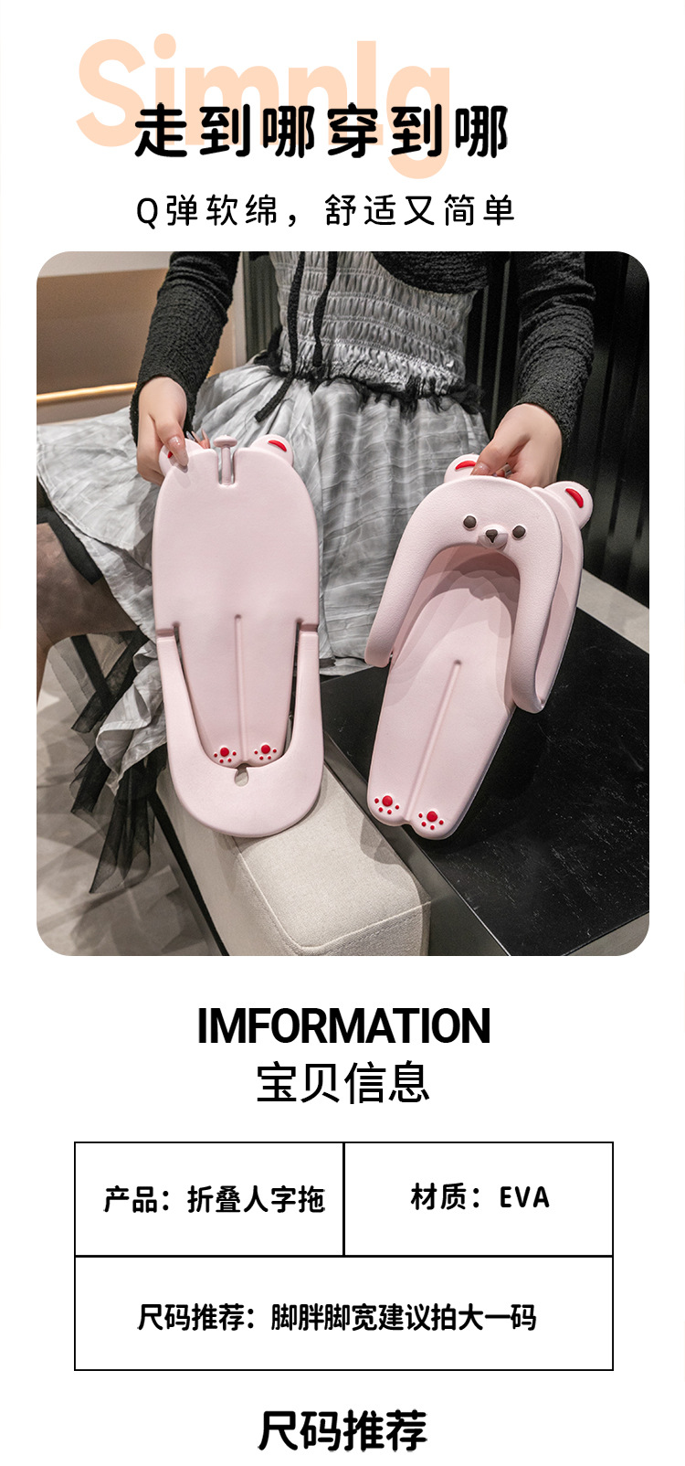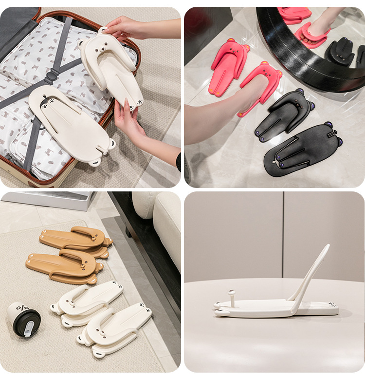Маленькие медведи складные тапочки пара путешествия удобный противоскользящий уличный клип пляжная обувь носить шлепанцы вне бизнеса